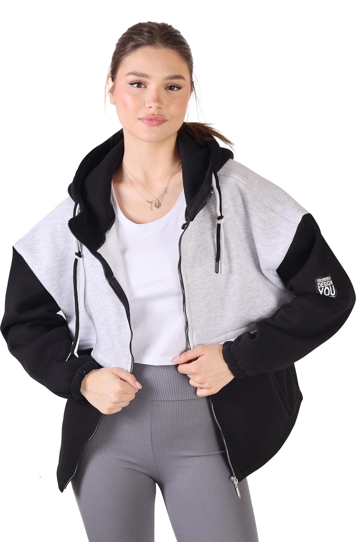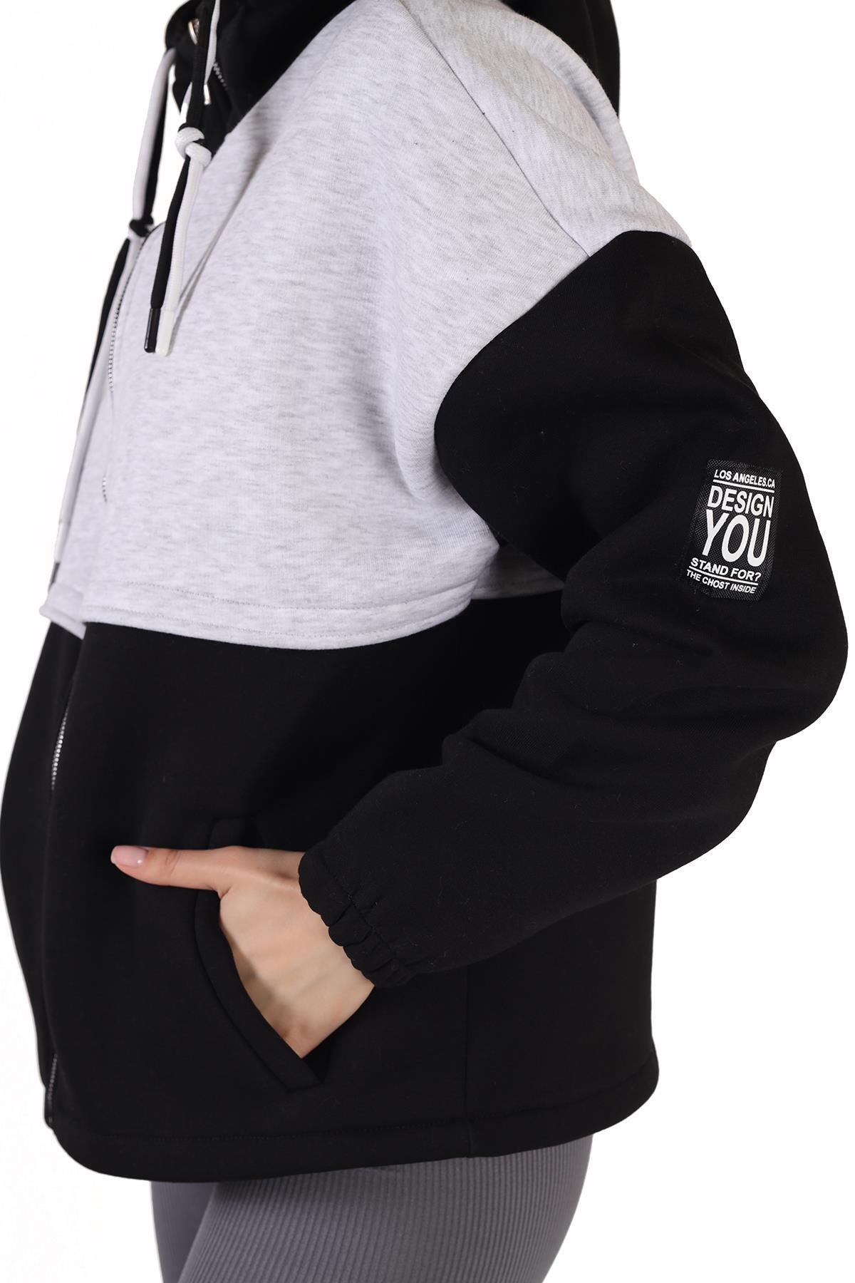 9144M Fermuar Detay Çift Renk Sweat Siyah-Gri