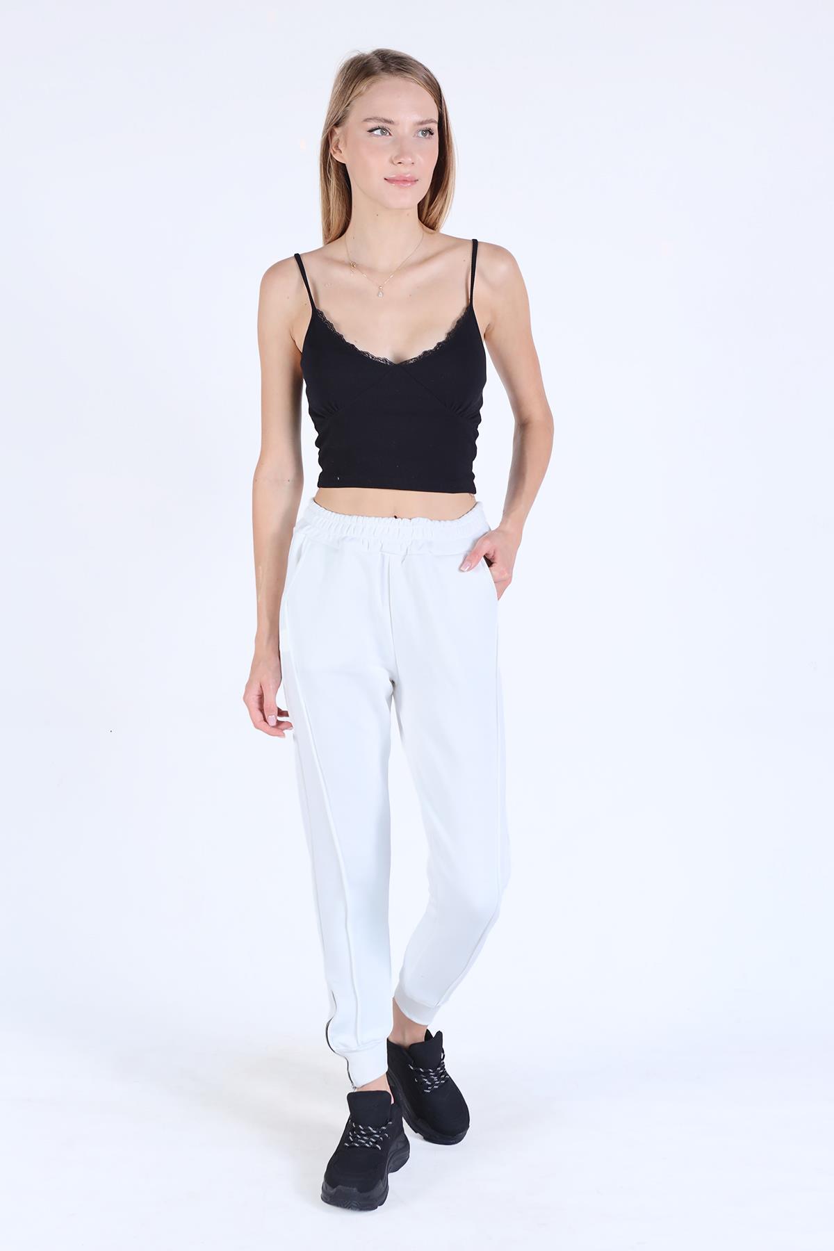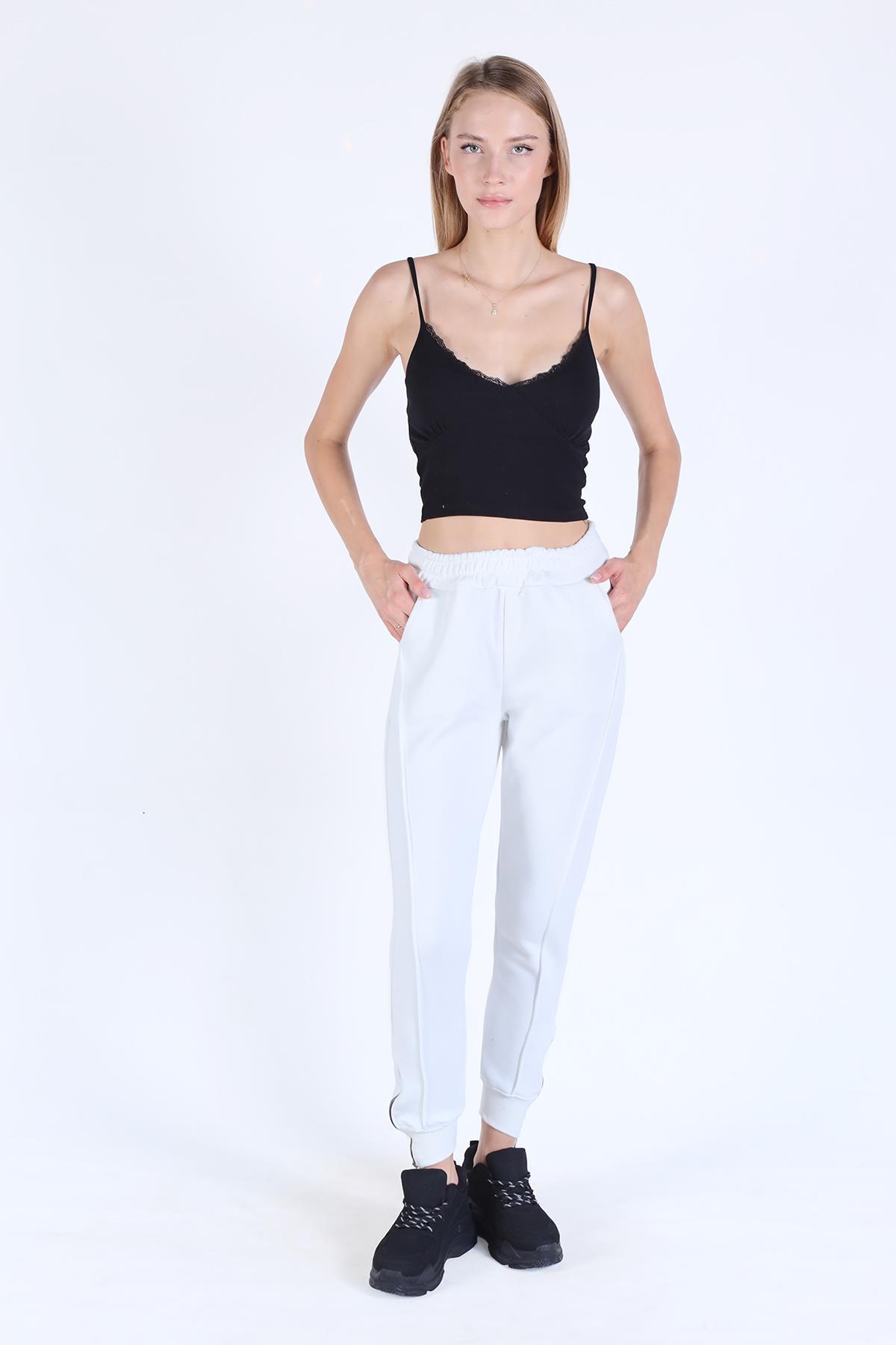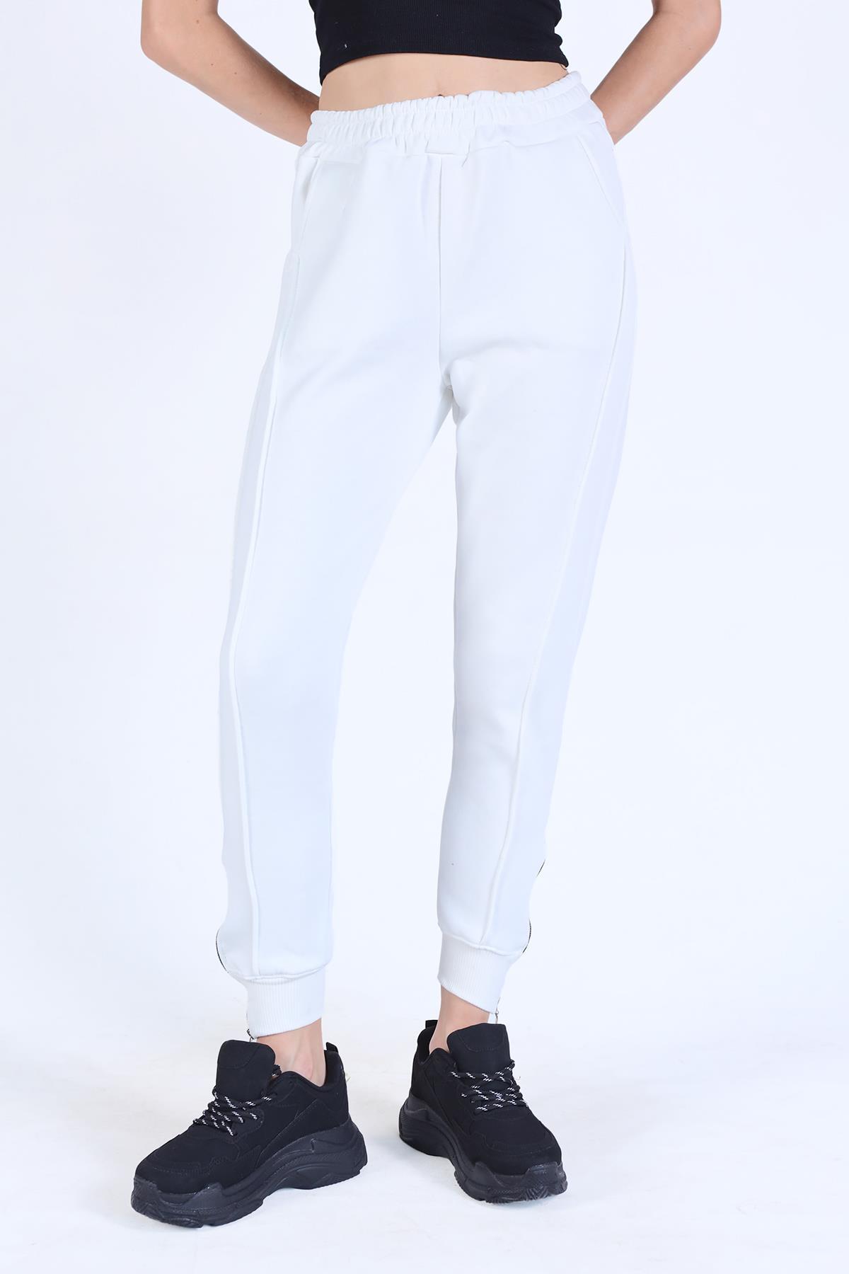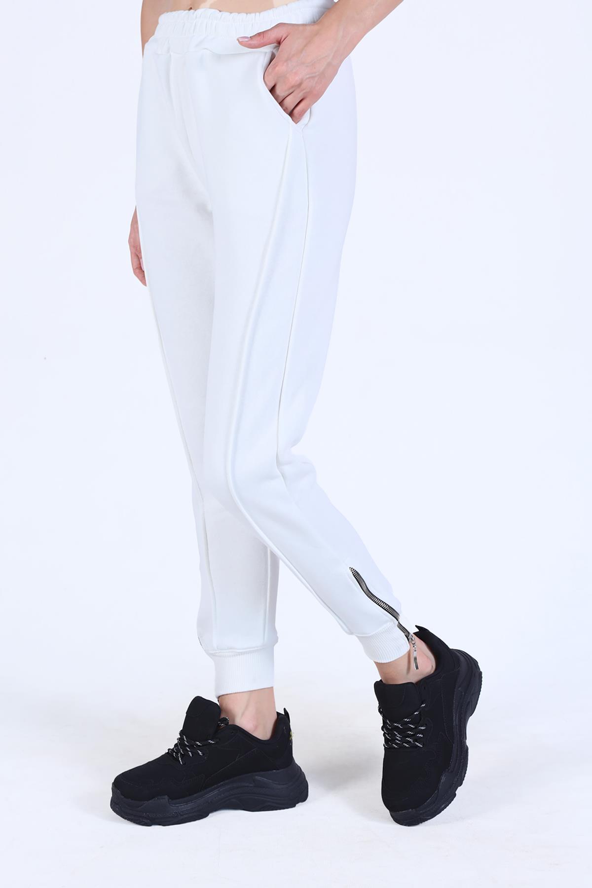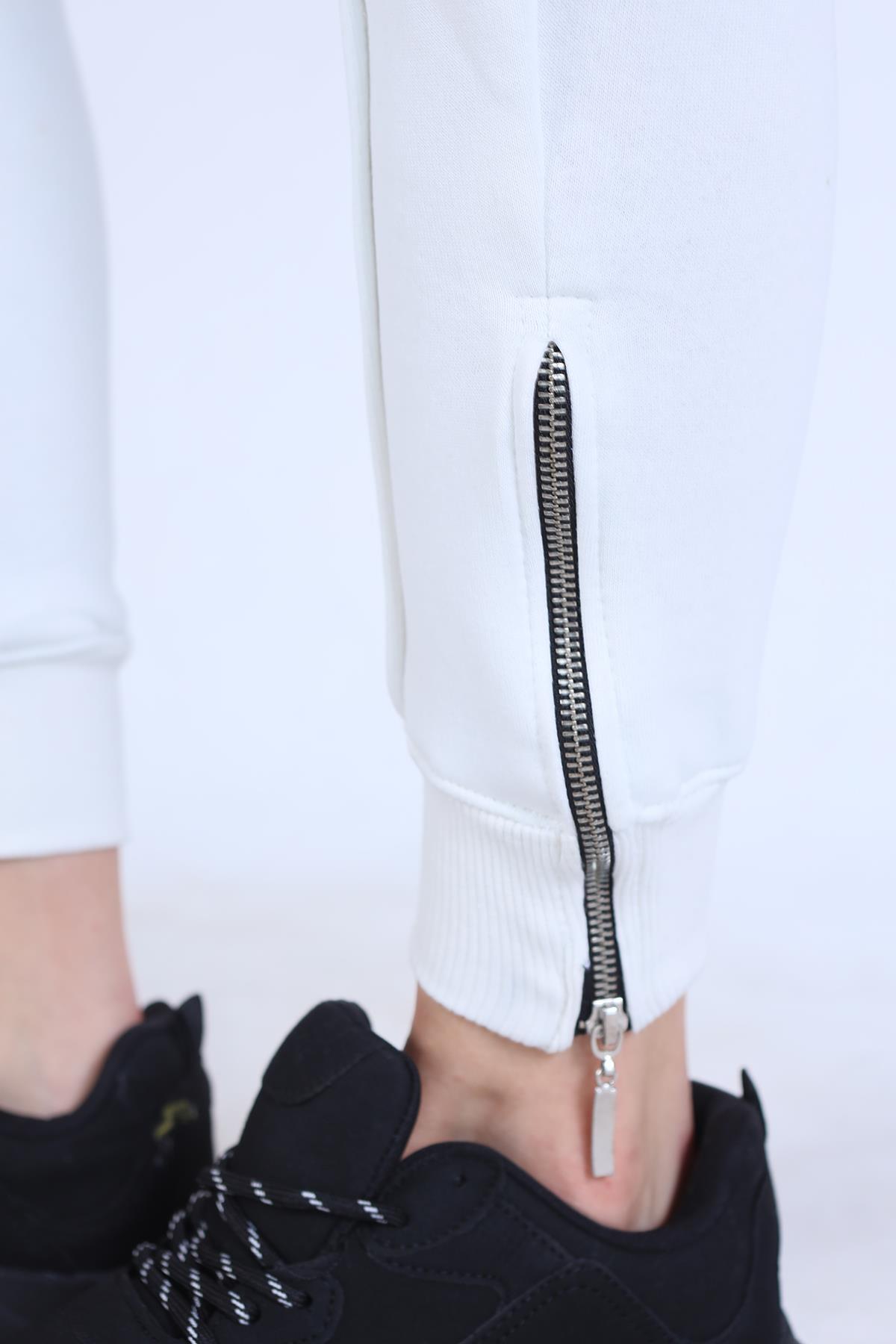 Ekru Ön Çima Detay Paça Fermuarlı Eşofman 9147M