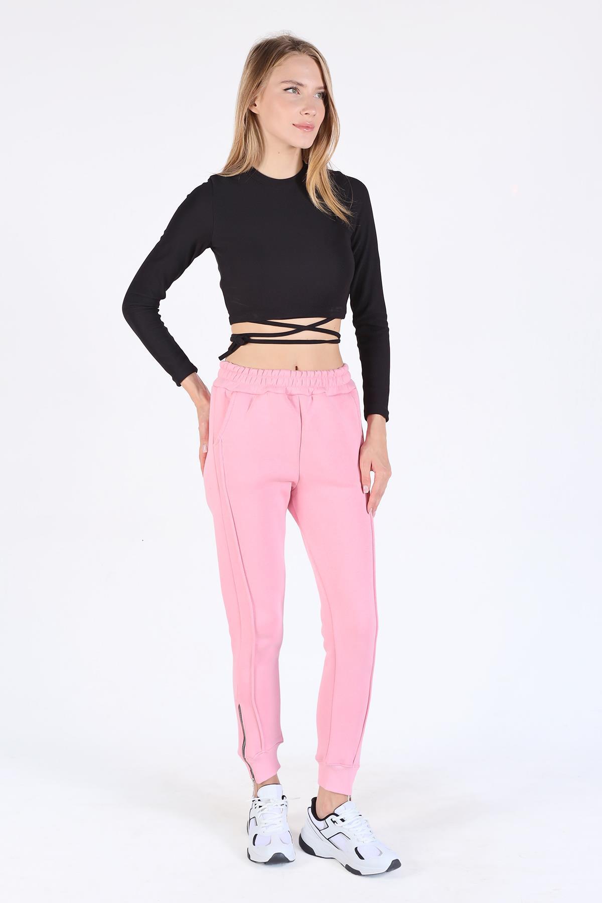 Pembe Ön Çima Detay Paça Fermuarlı Eşofman 9147M