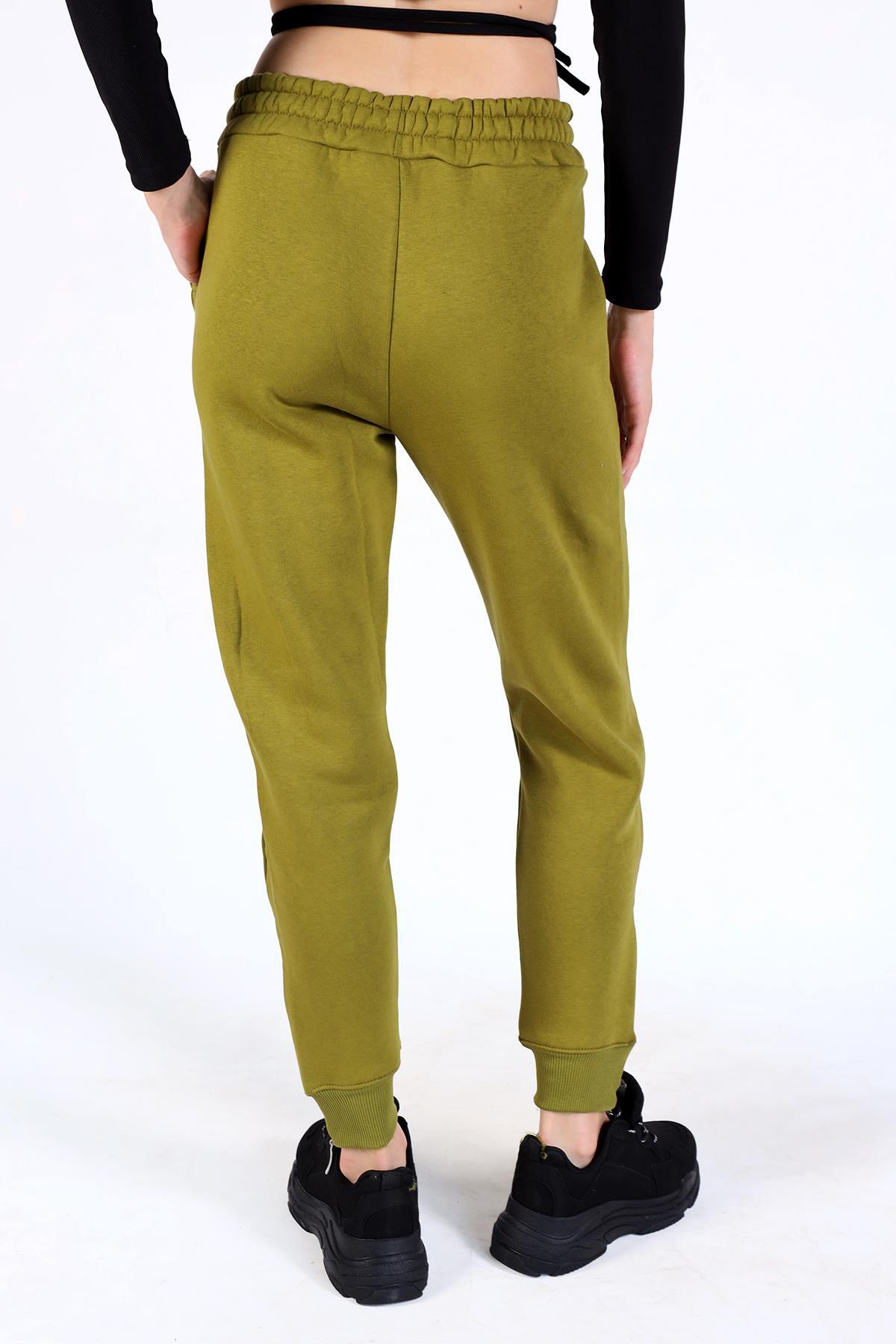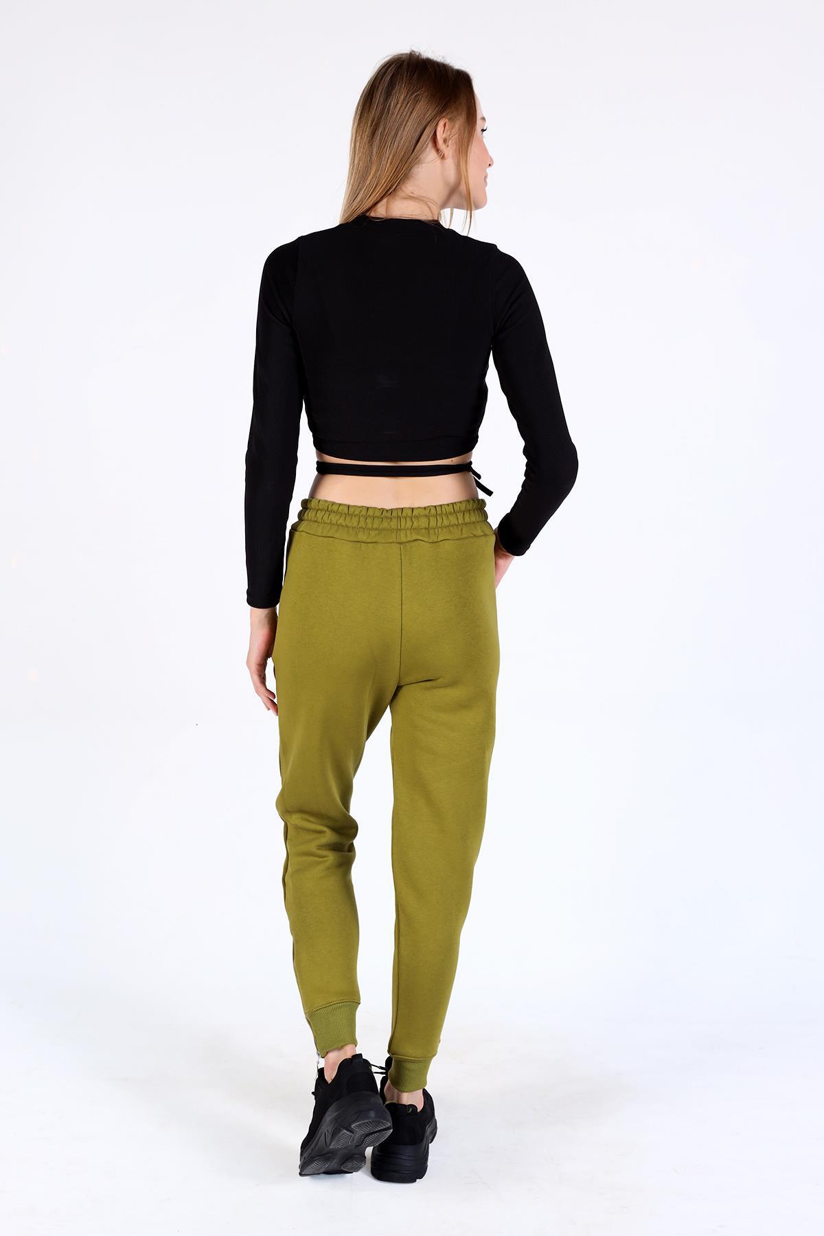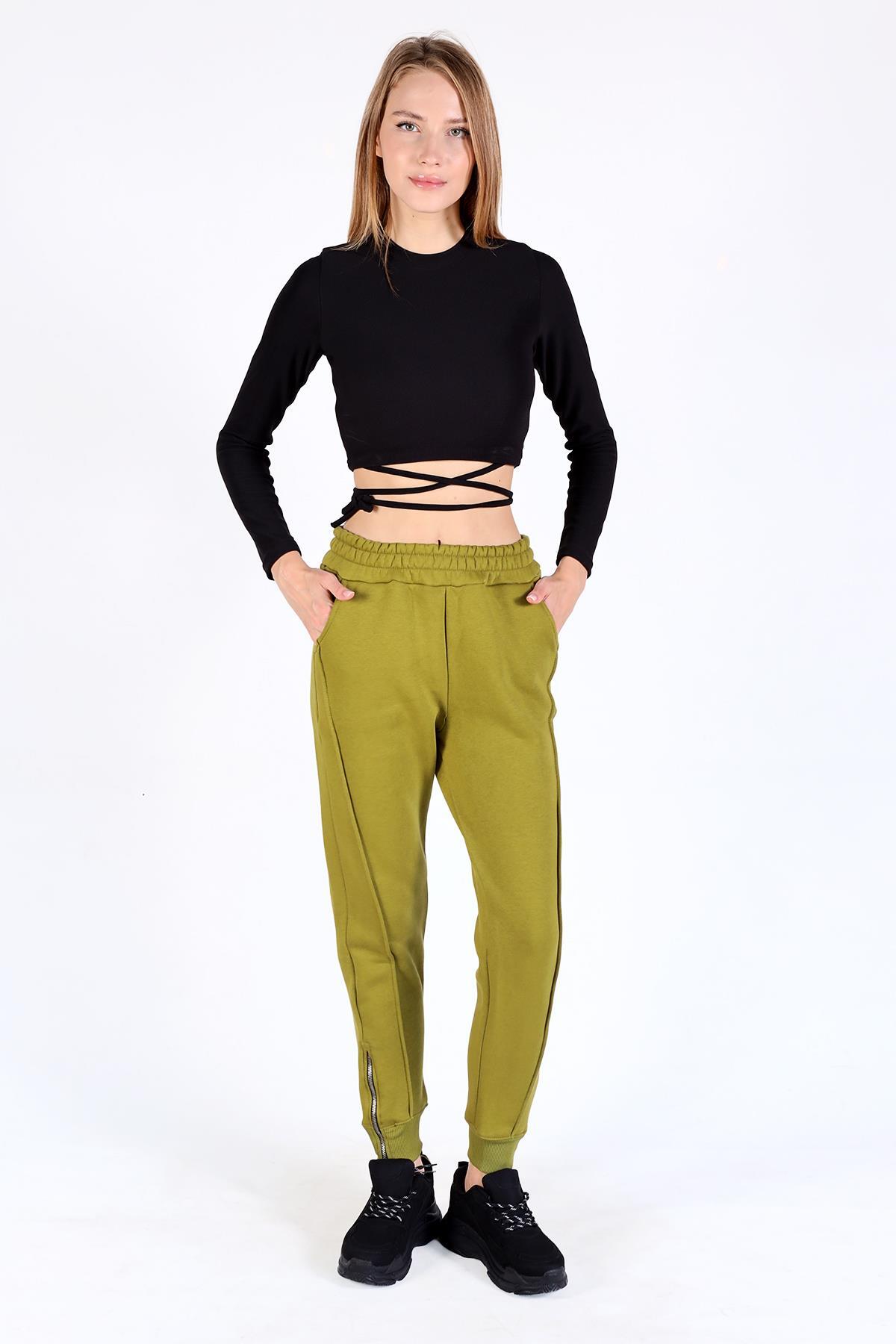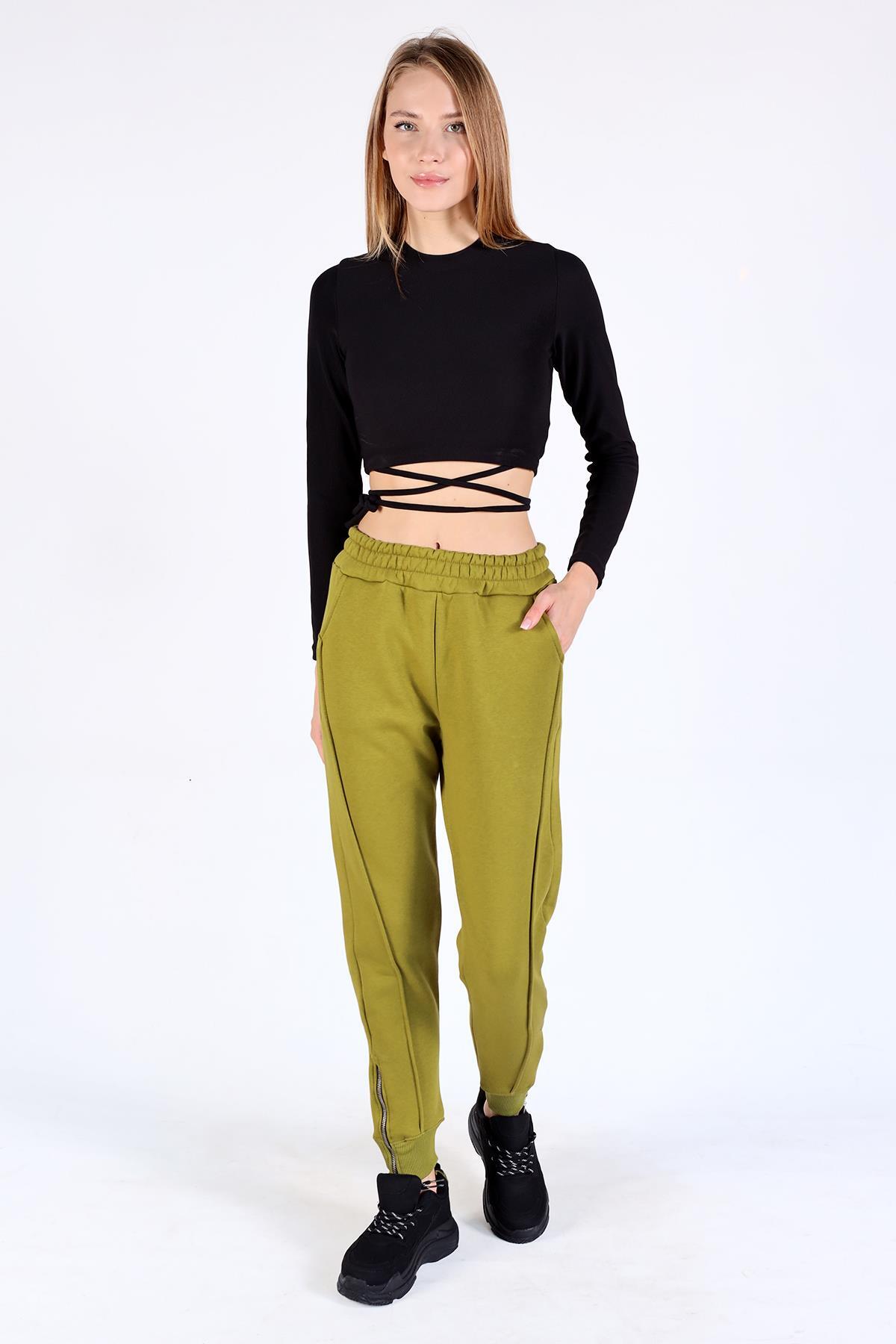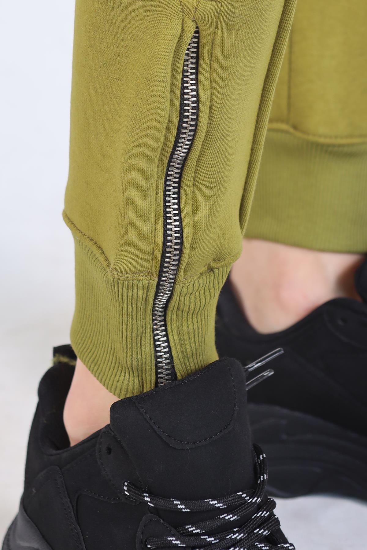 Yağ Yeşili Ön Çima Detay Paça Fermuarlı Eşofman 9147M