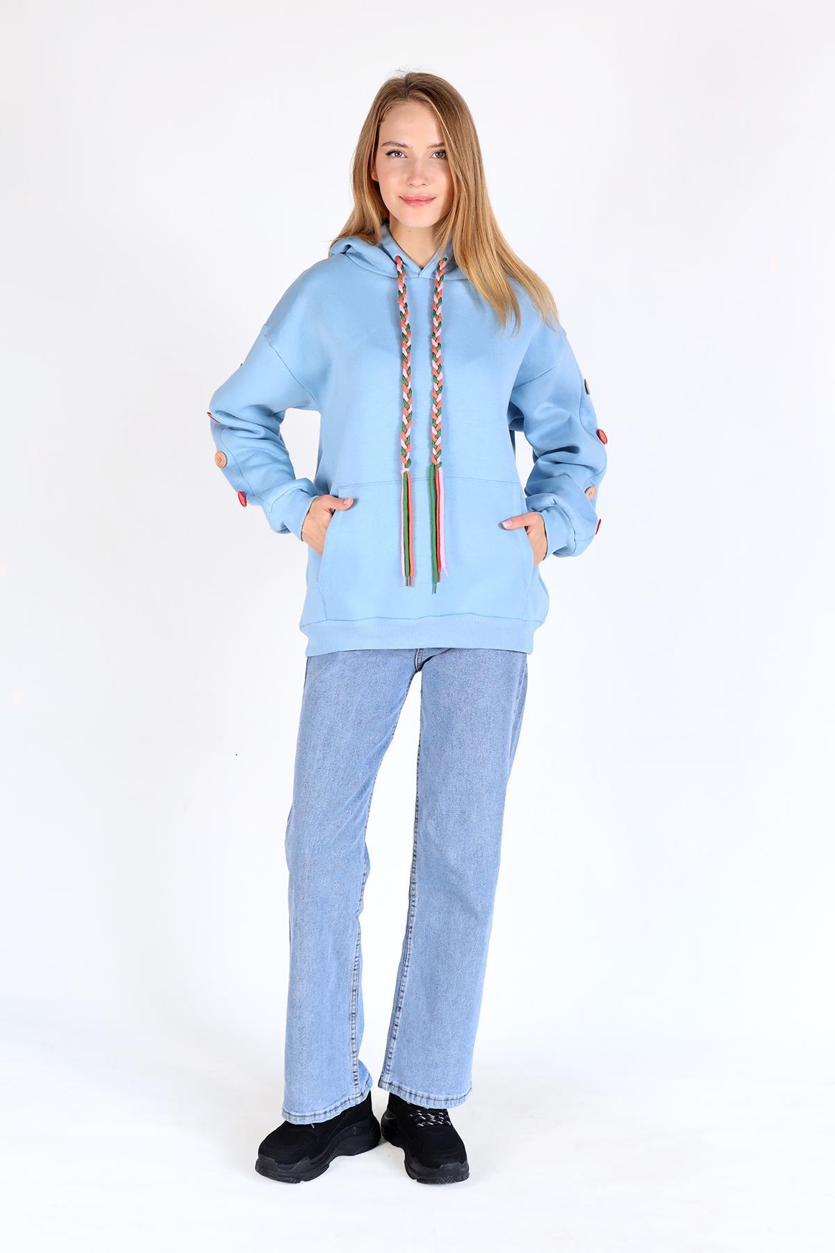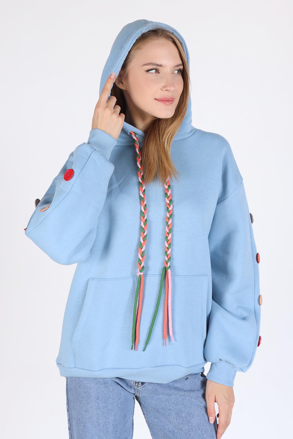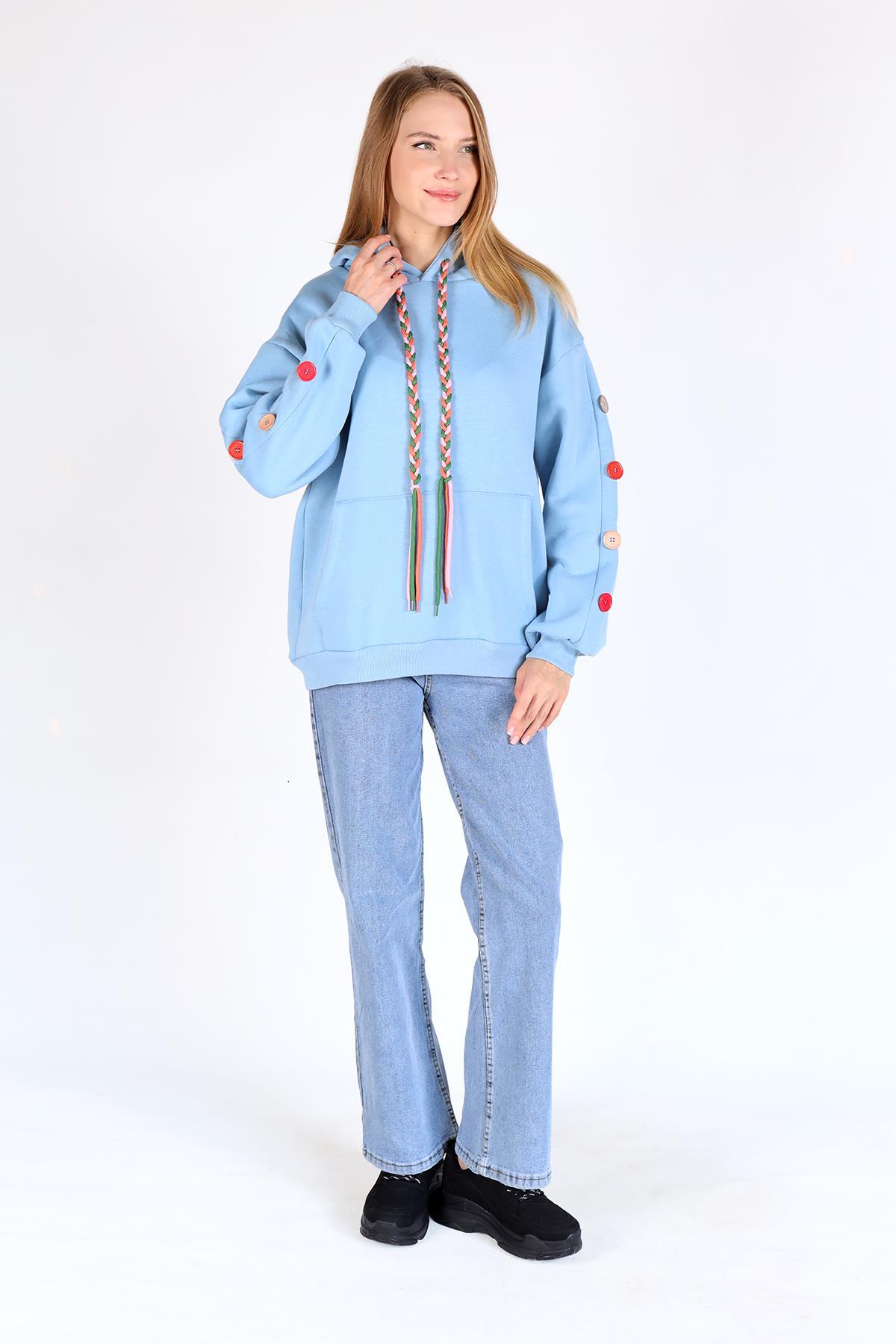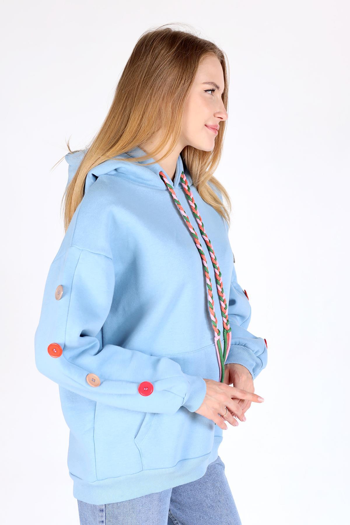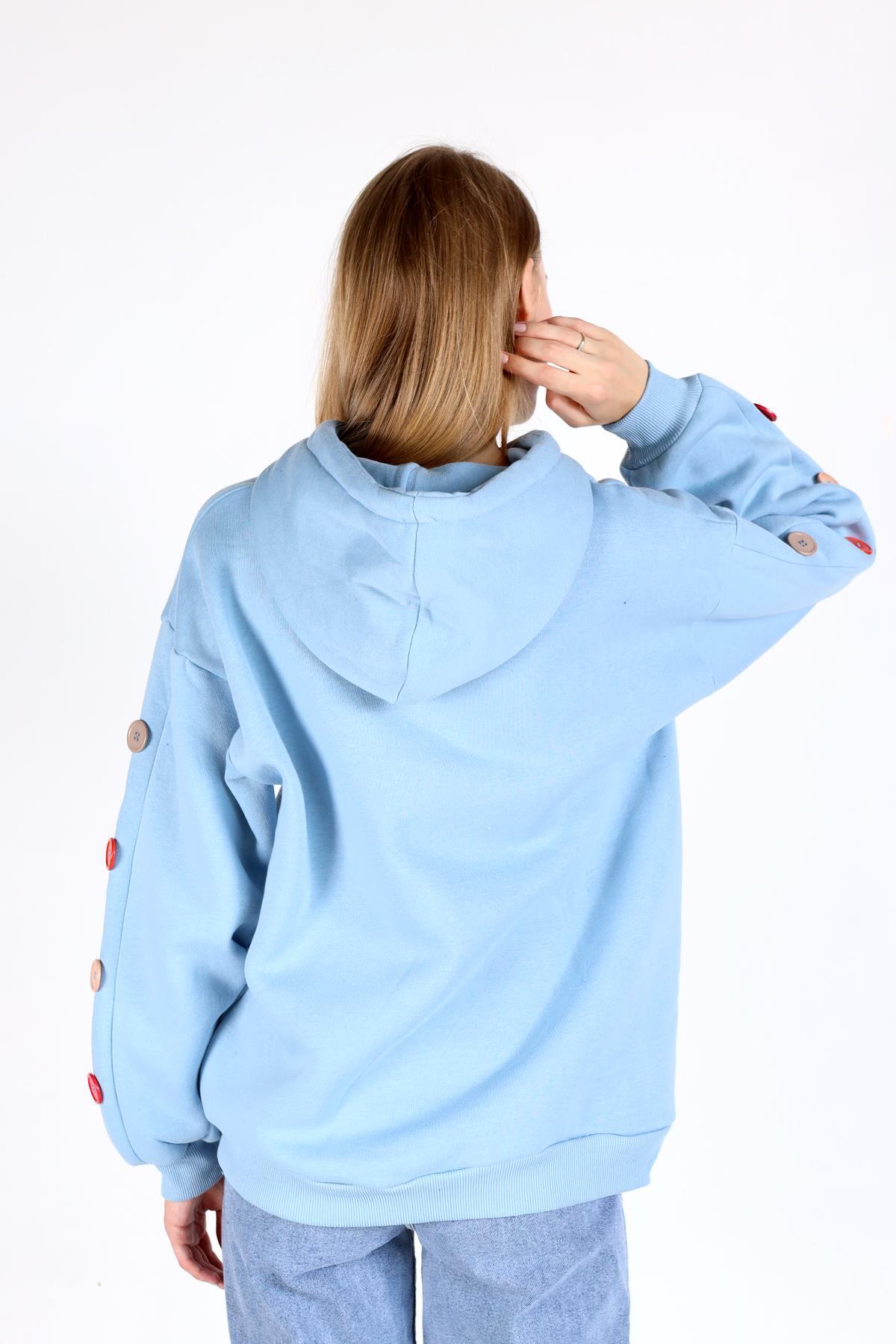 Bebe Mavi Kol Düğme Detay Kapşonlü Sweat 9148M