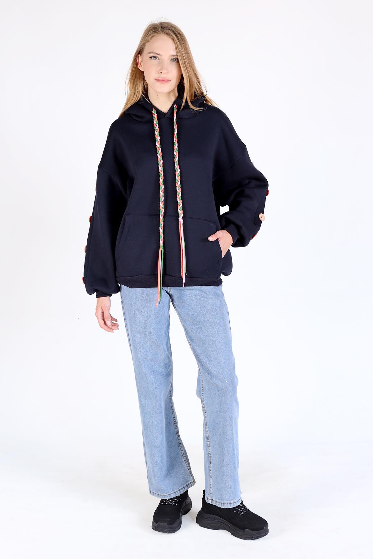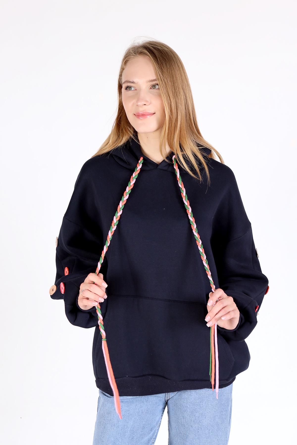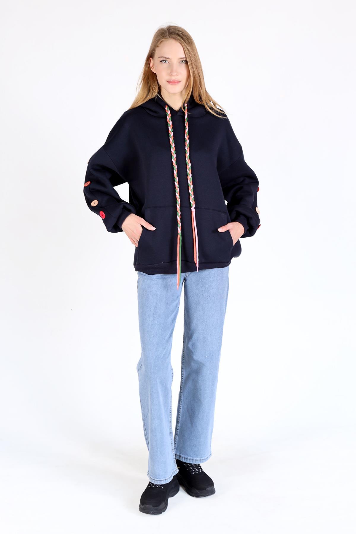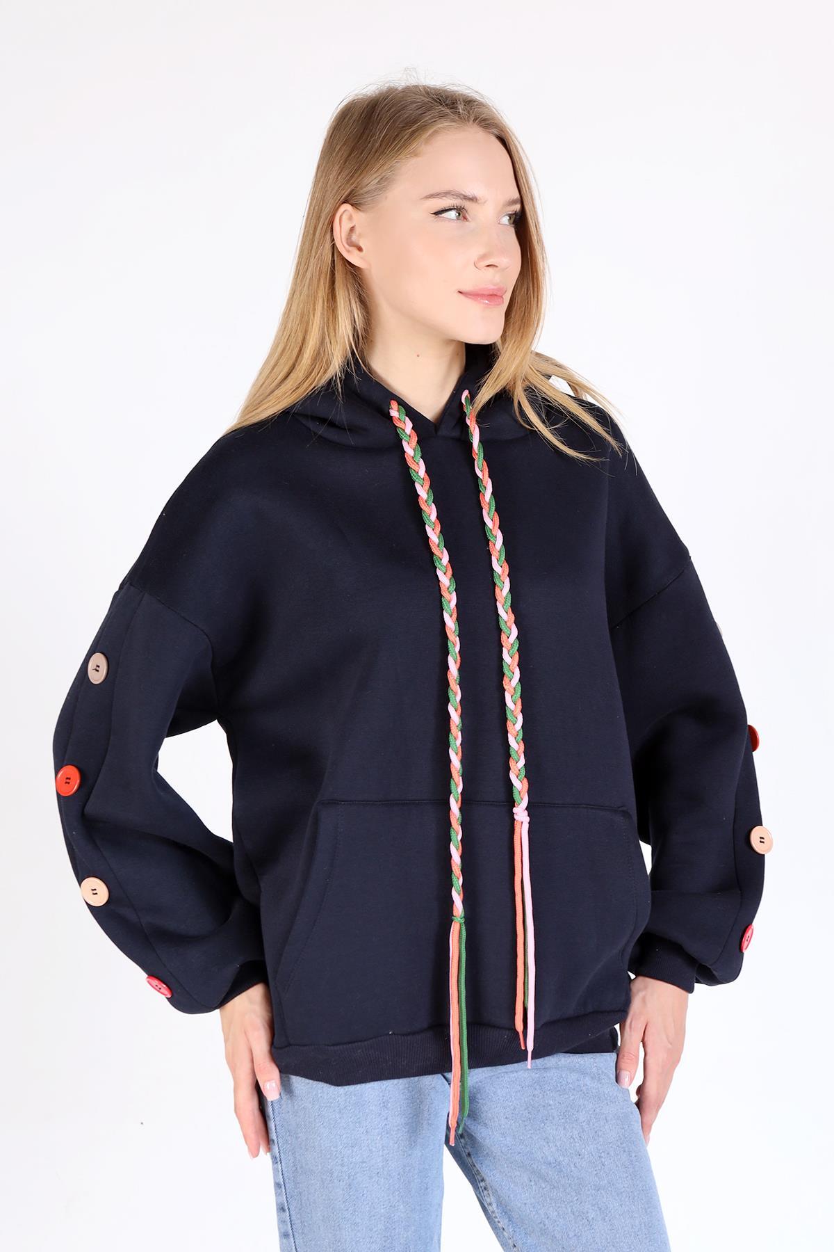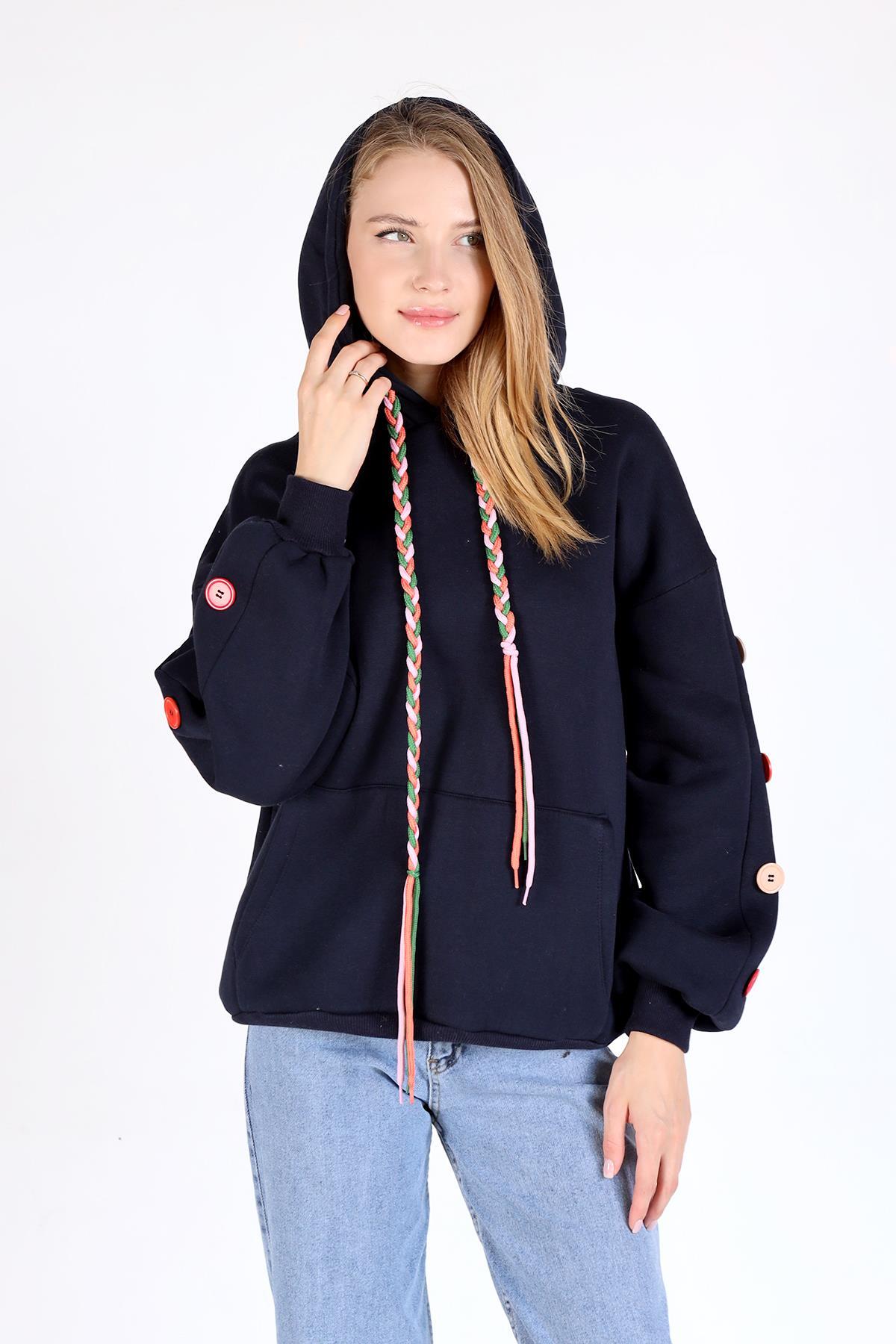 Laci Kol Düğme Detay Kapşonlü Sweat 9148M