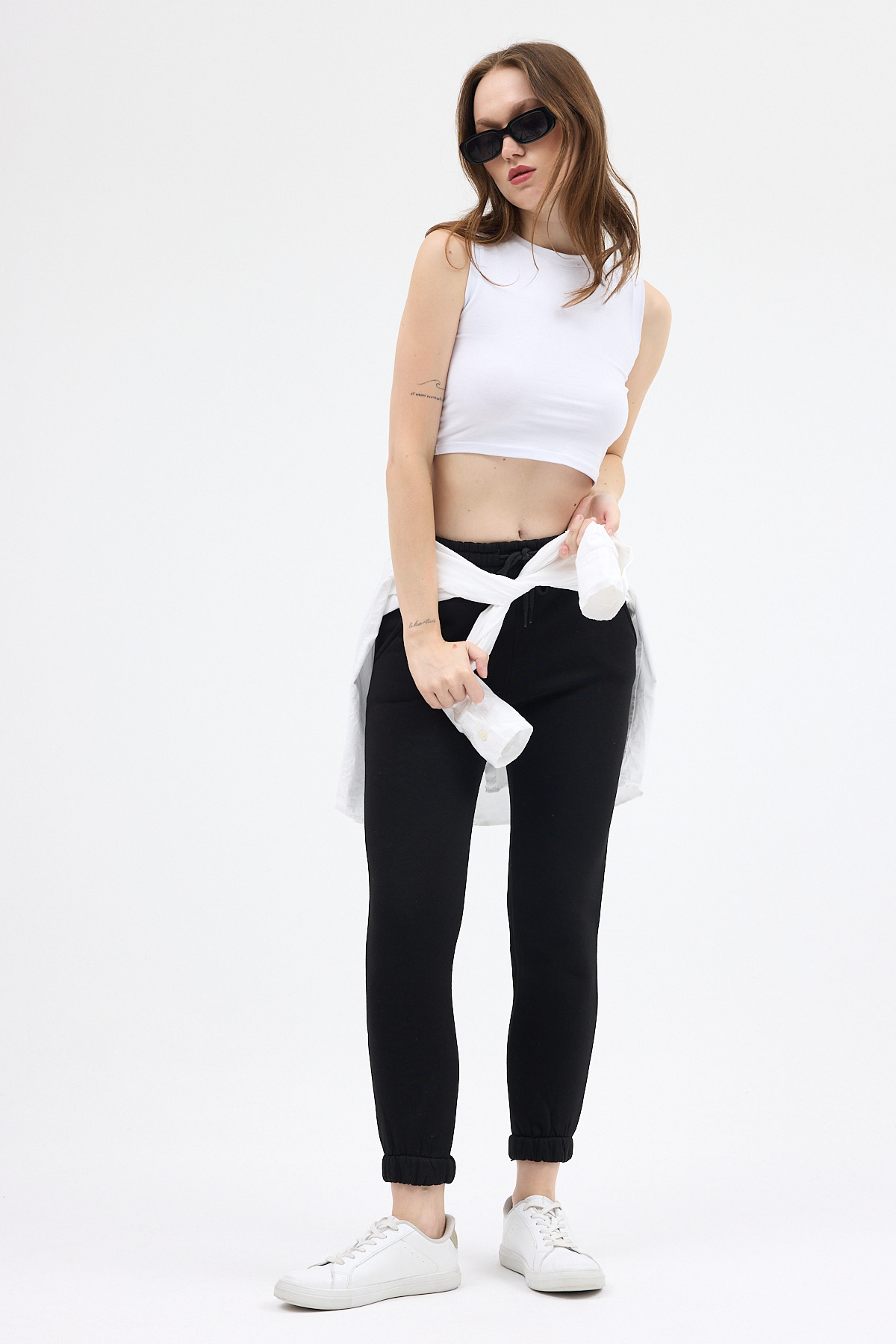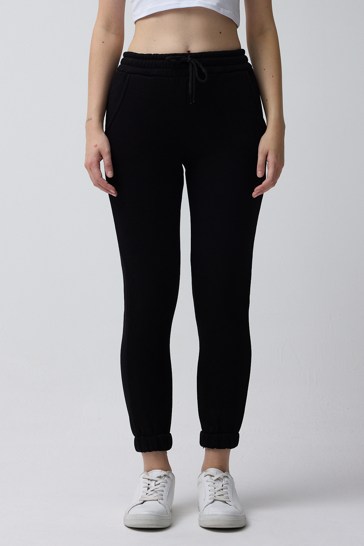 Siyah Paçası Lastikli Kadın Jogger Eşofman Altı TCR-9151M