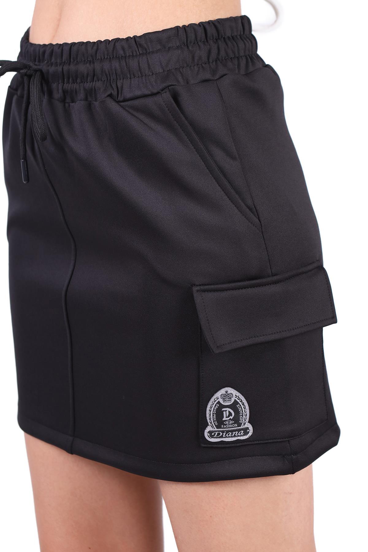 9157M Bağlama Detay Cepli Kısa Etek Siyah