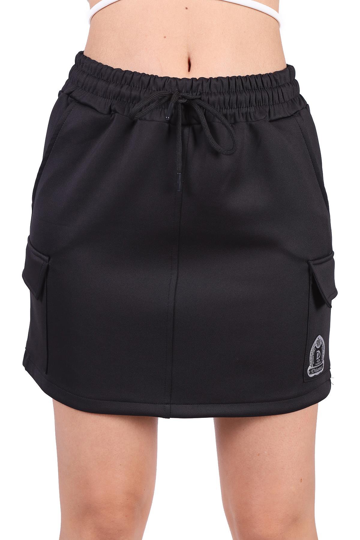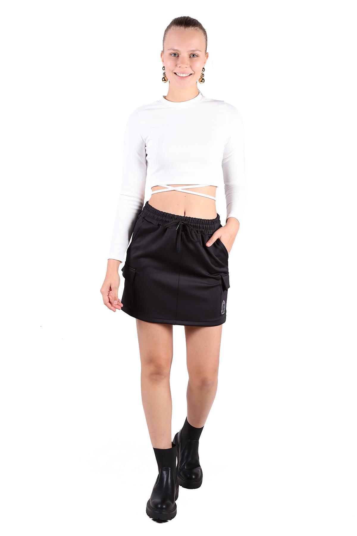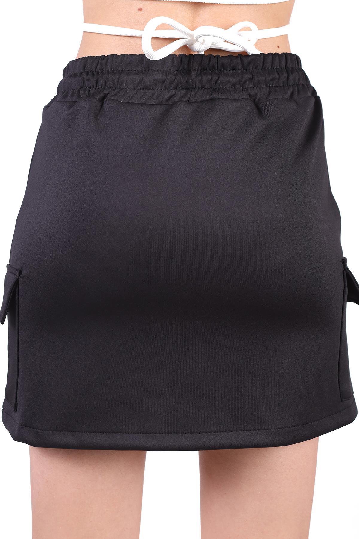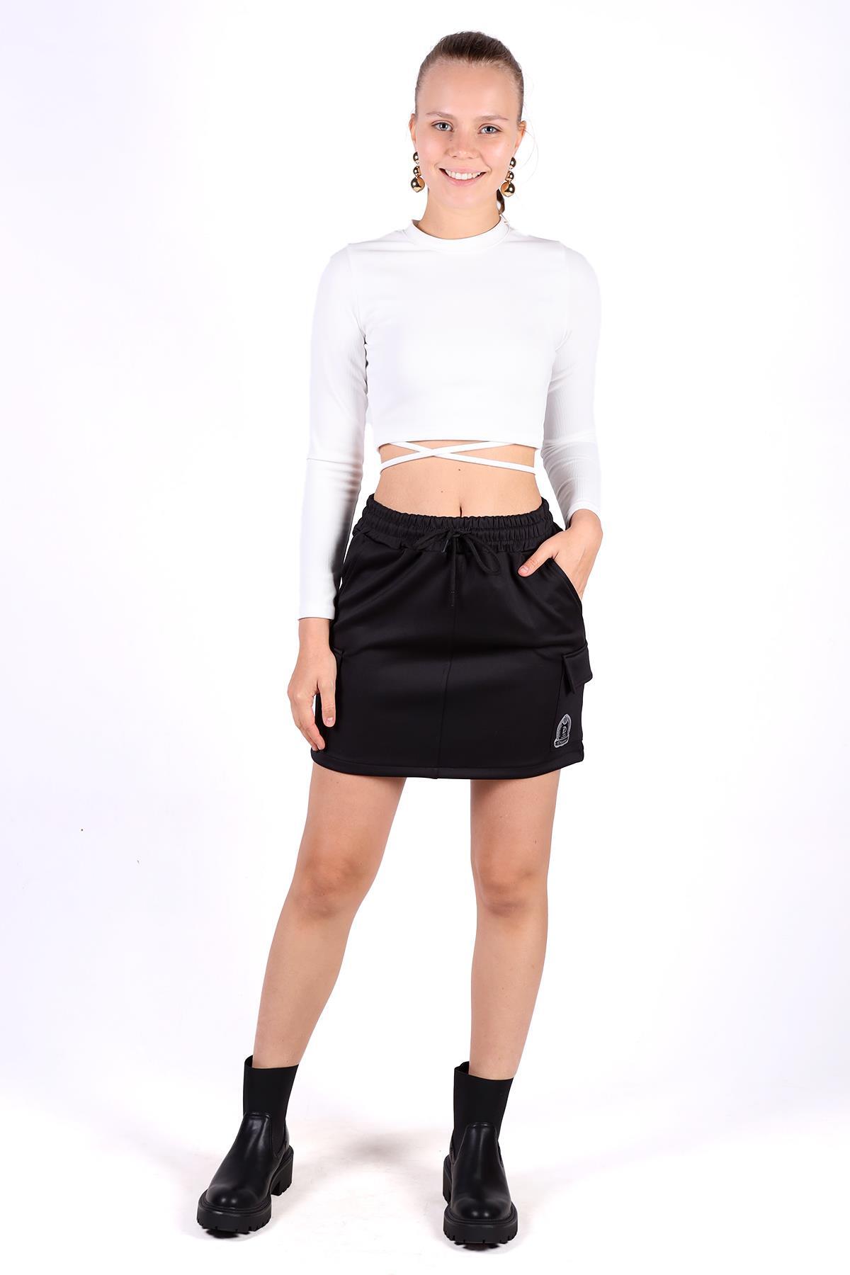 Siyah Bağlama Detay Cepli Kısa Etek 9157M