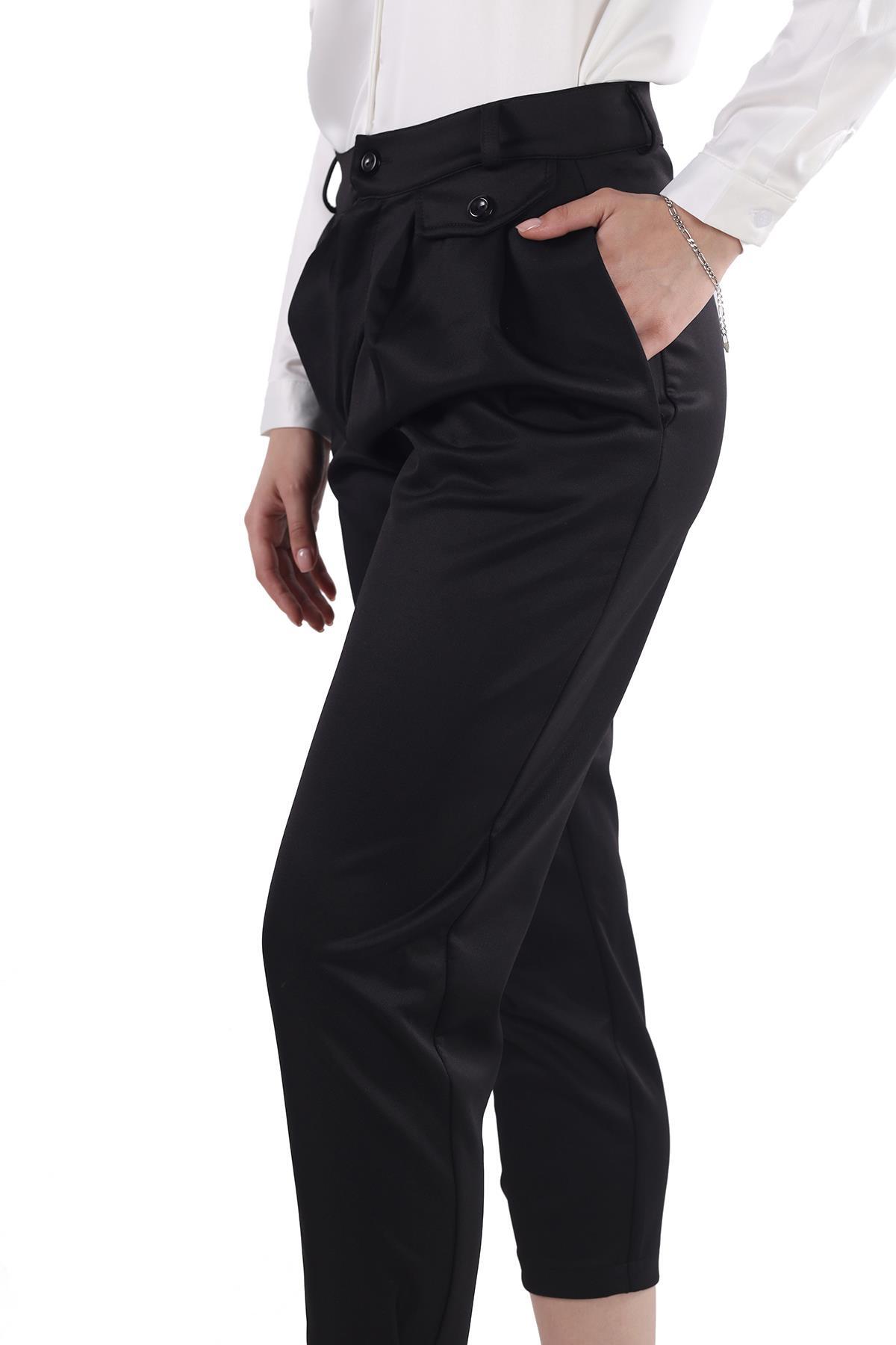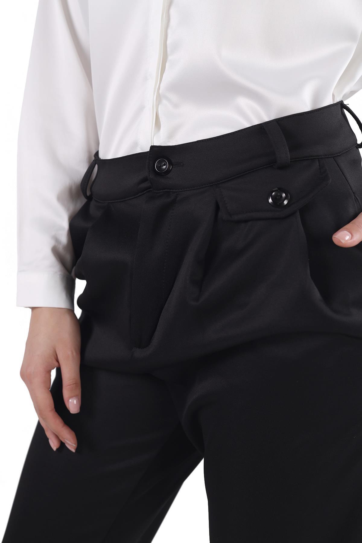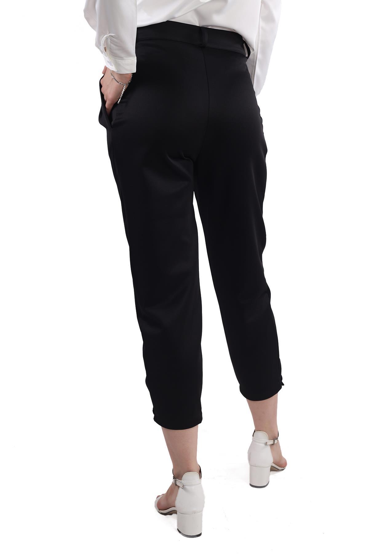 Siyah Fular Detay Pantolon 8372A