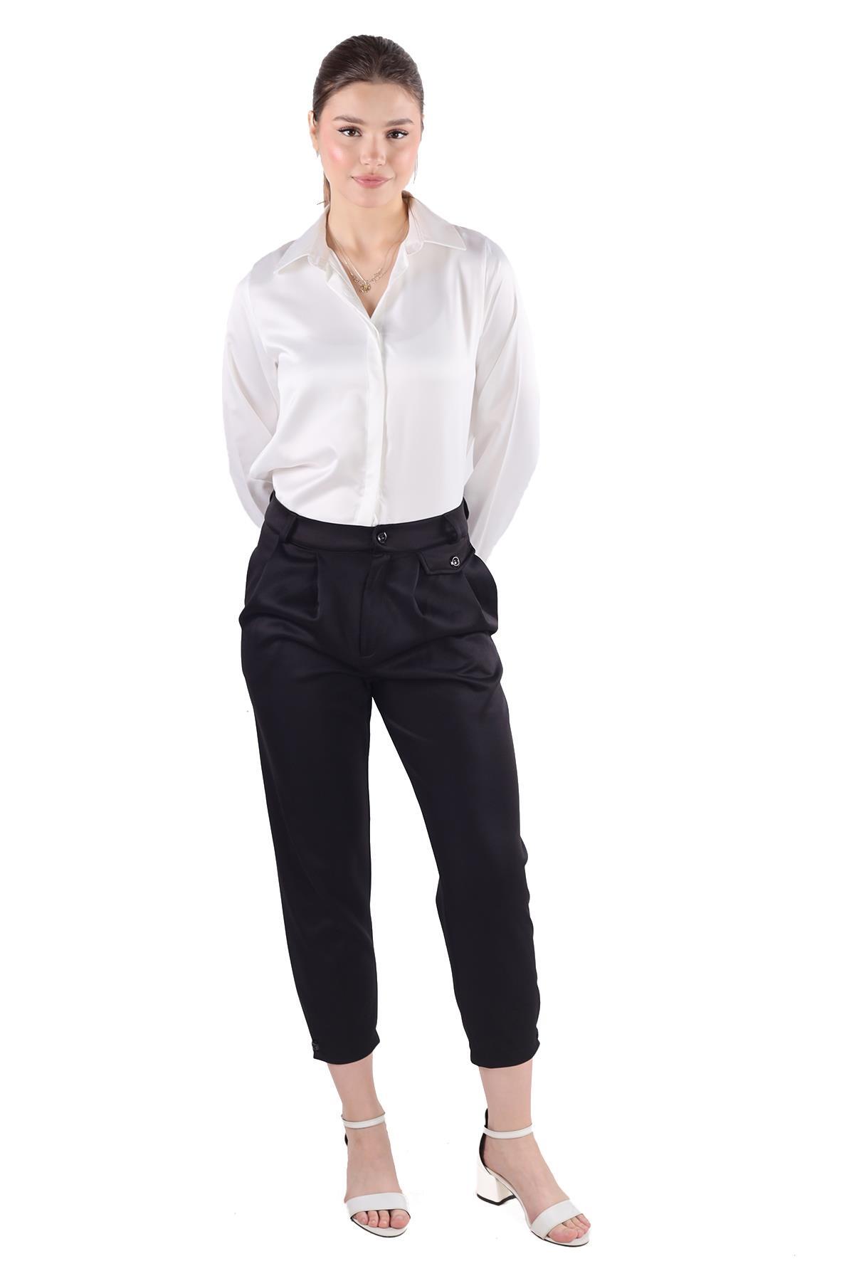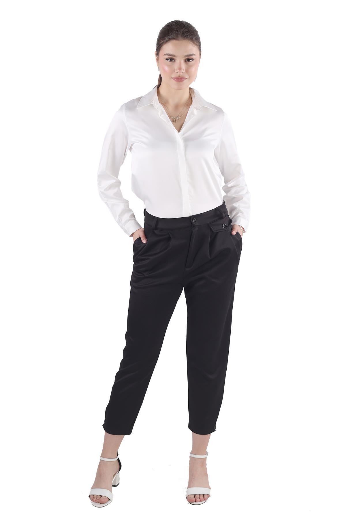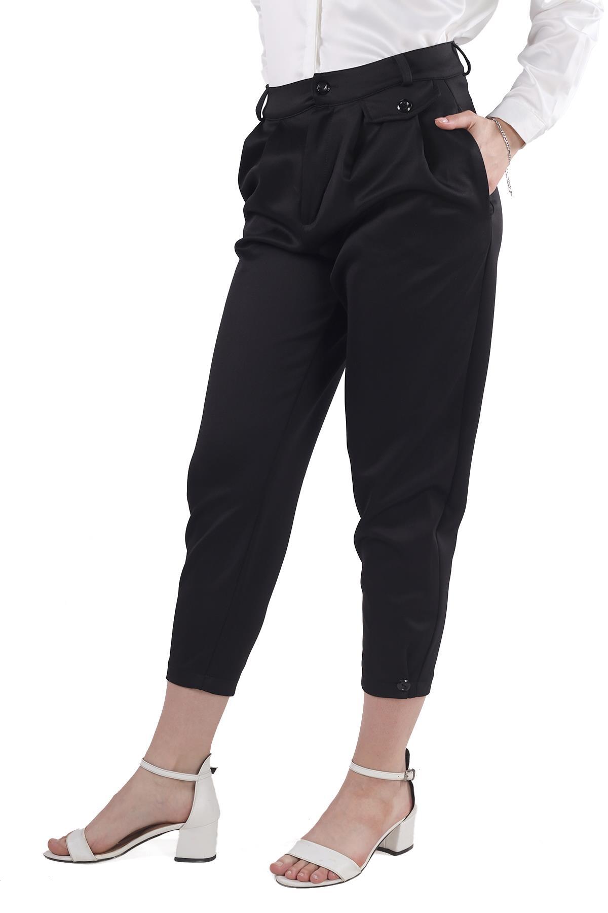 Siyah Fular Detay Pantolon 8372A