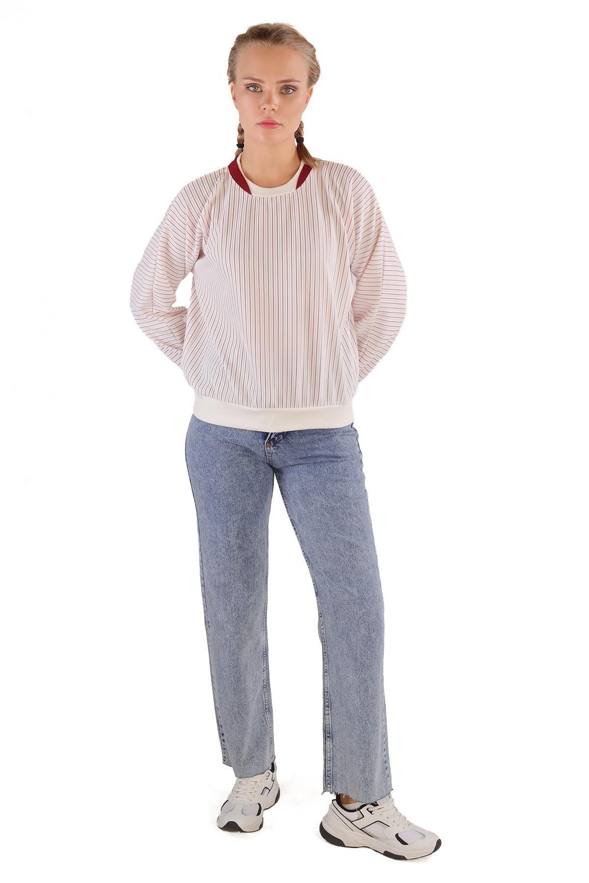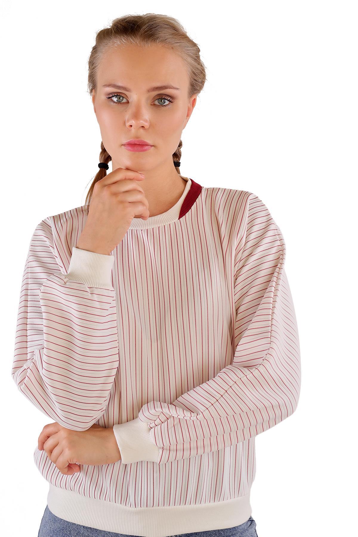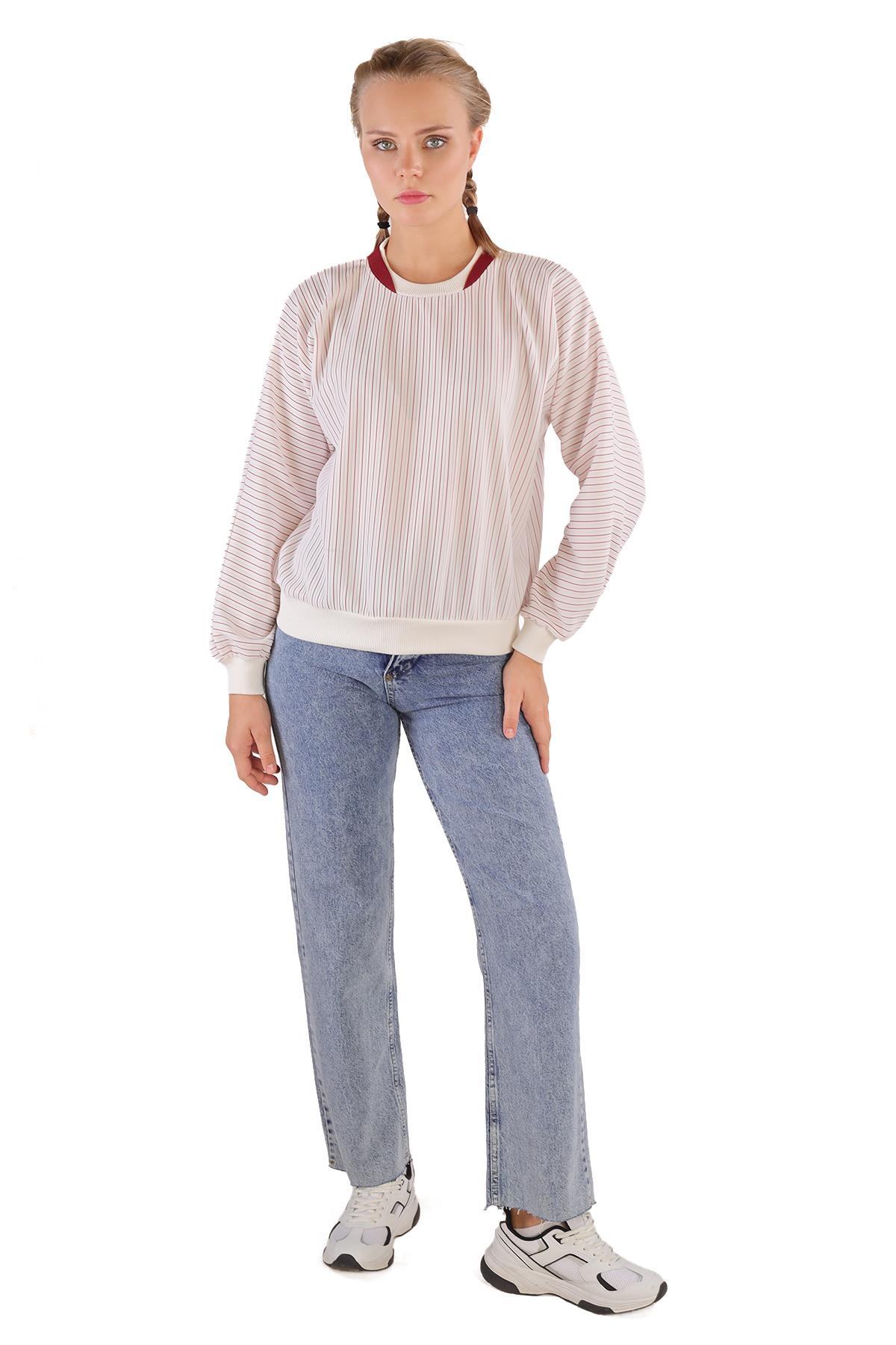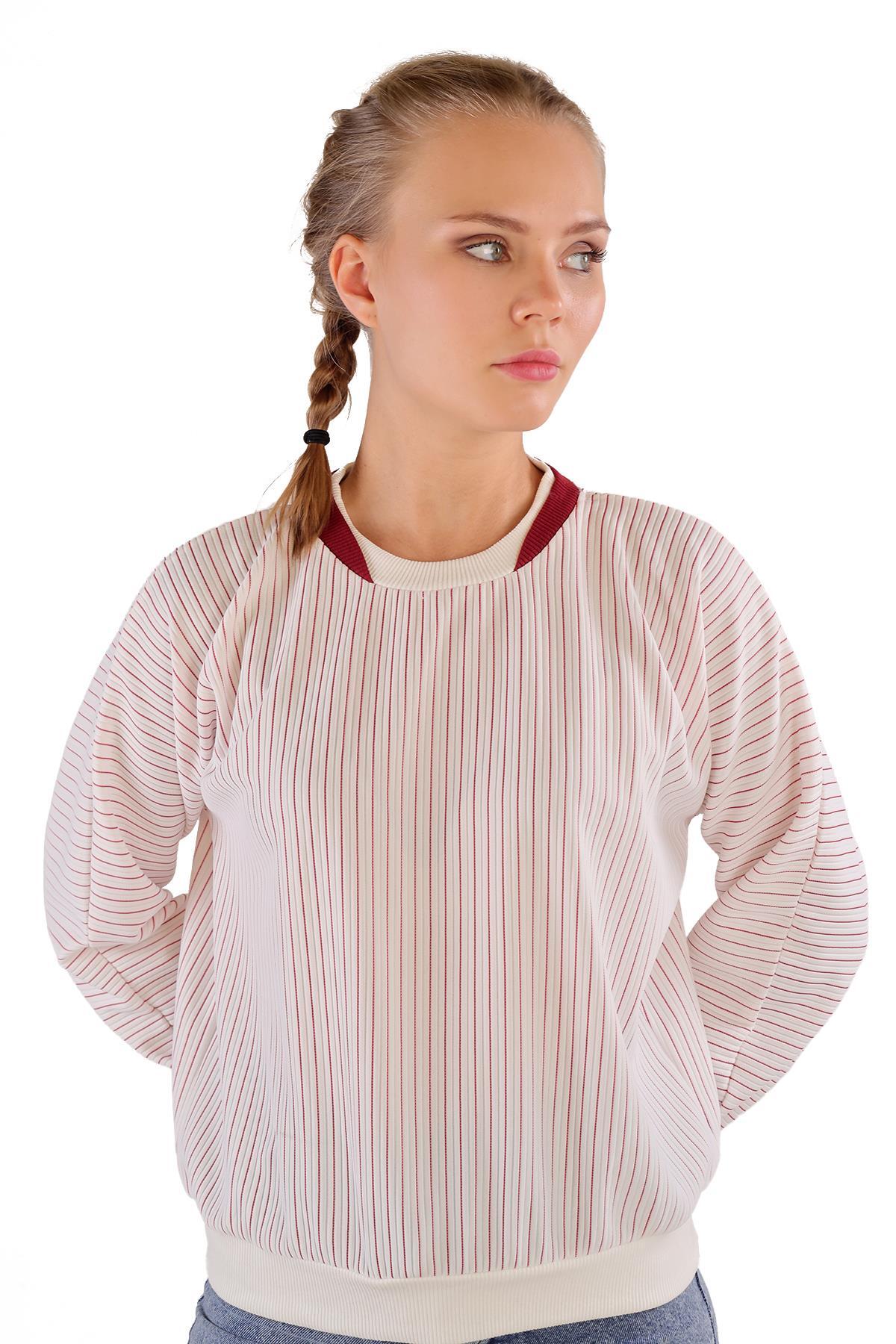 9166M Bisiklet Yaka Sweat Kırmızı