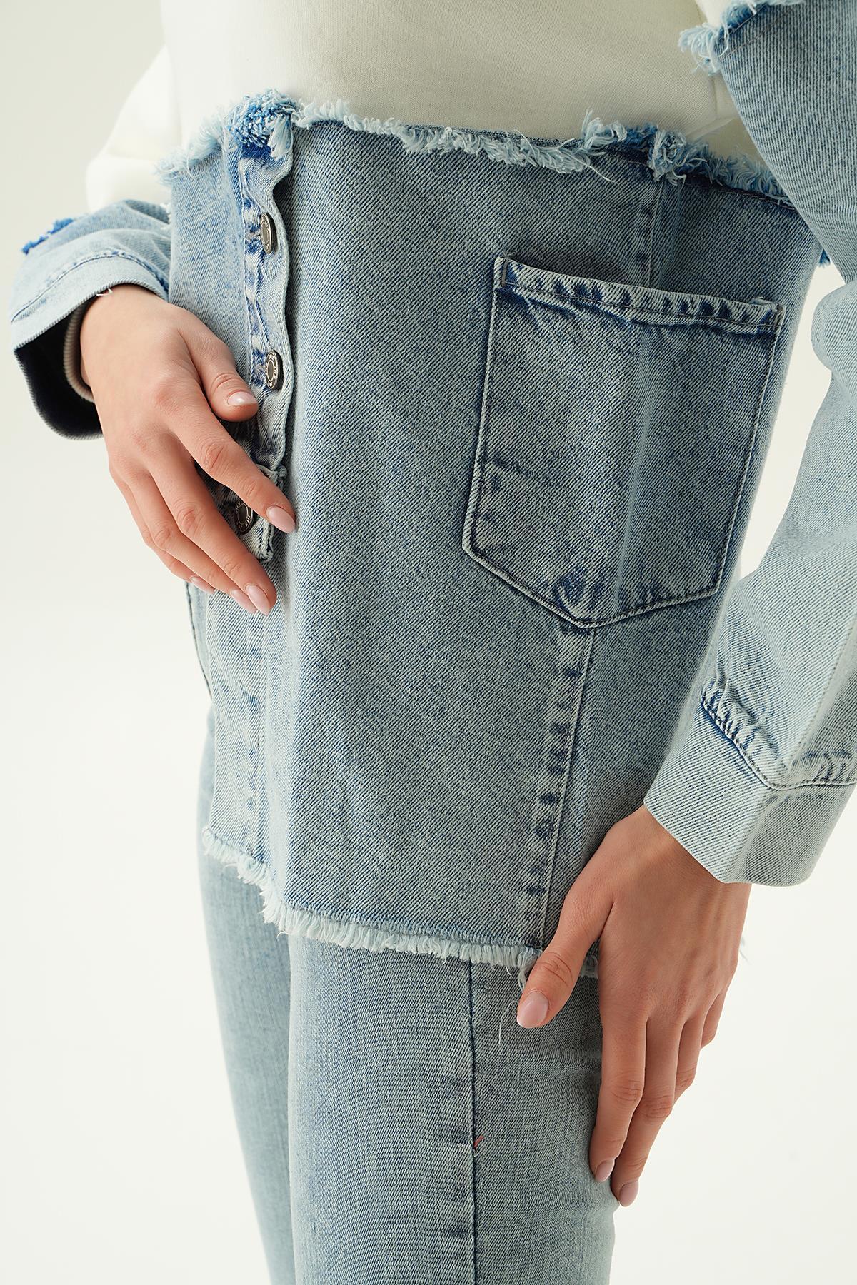 Mavi Kot Detay Asimetrik Sweat 9178