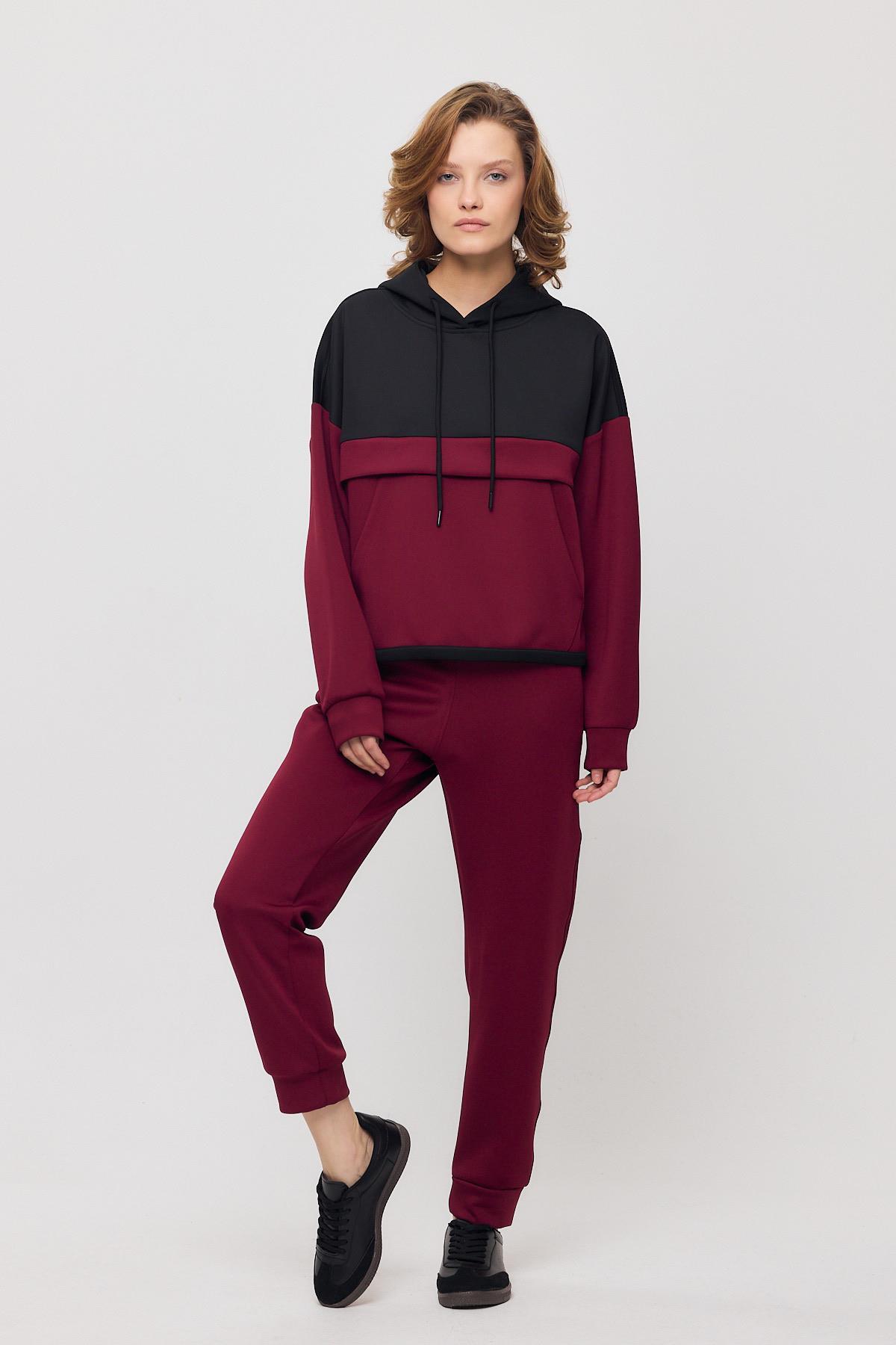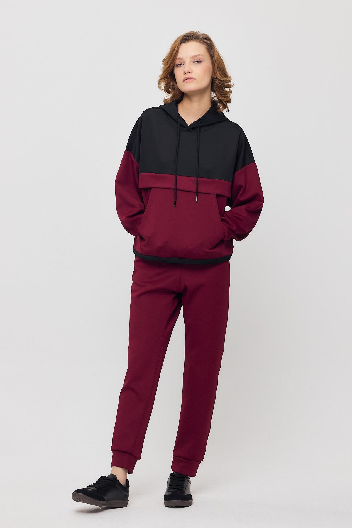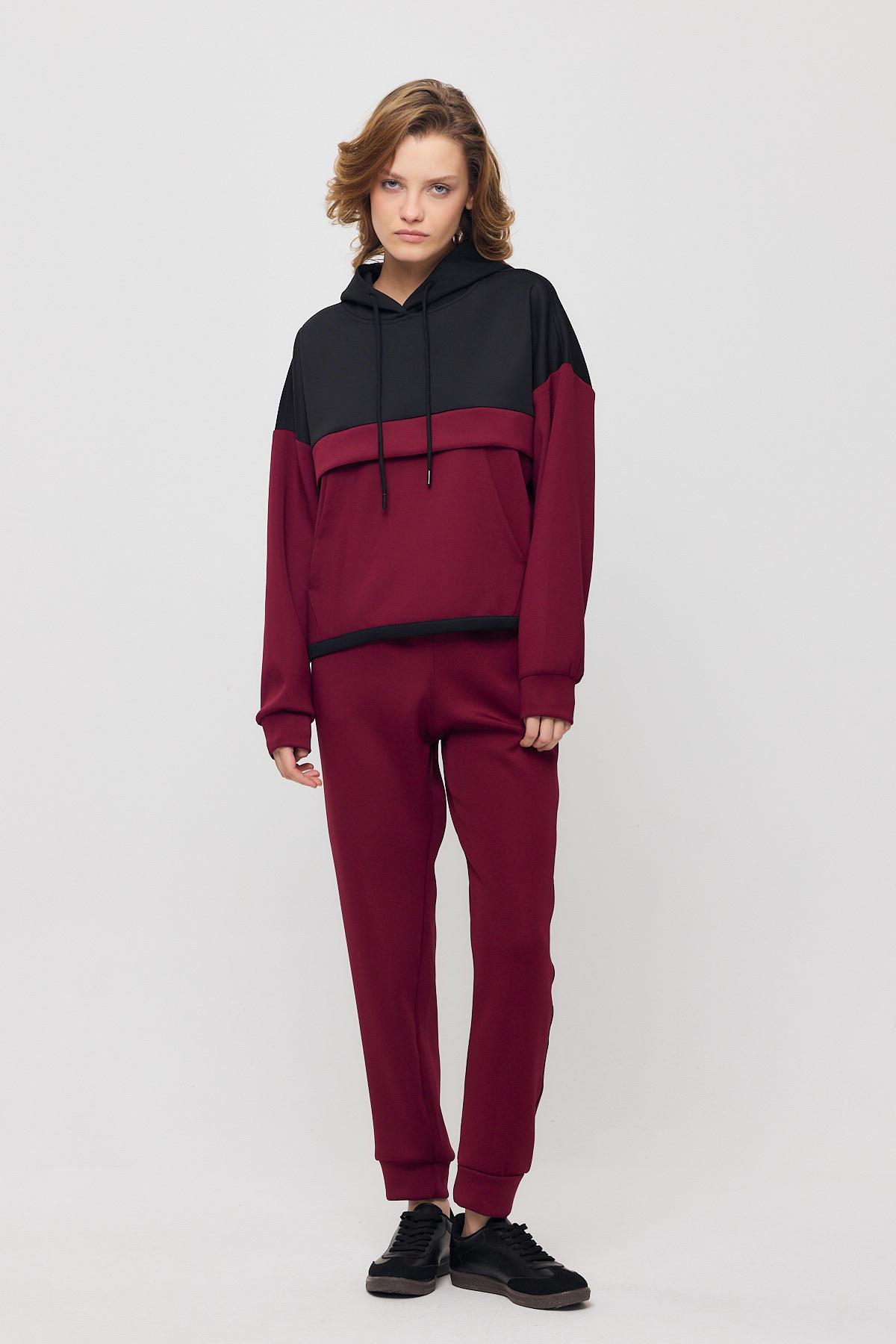 Bordo Kanguru Cep Garnili Eşofman Takımı 9183M