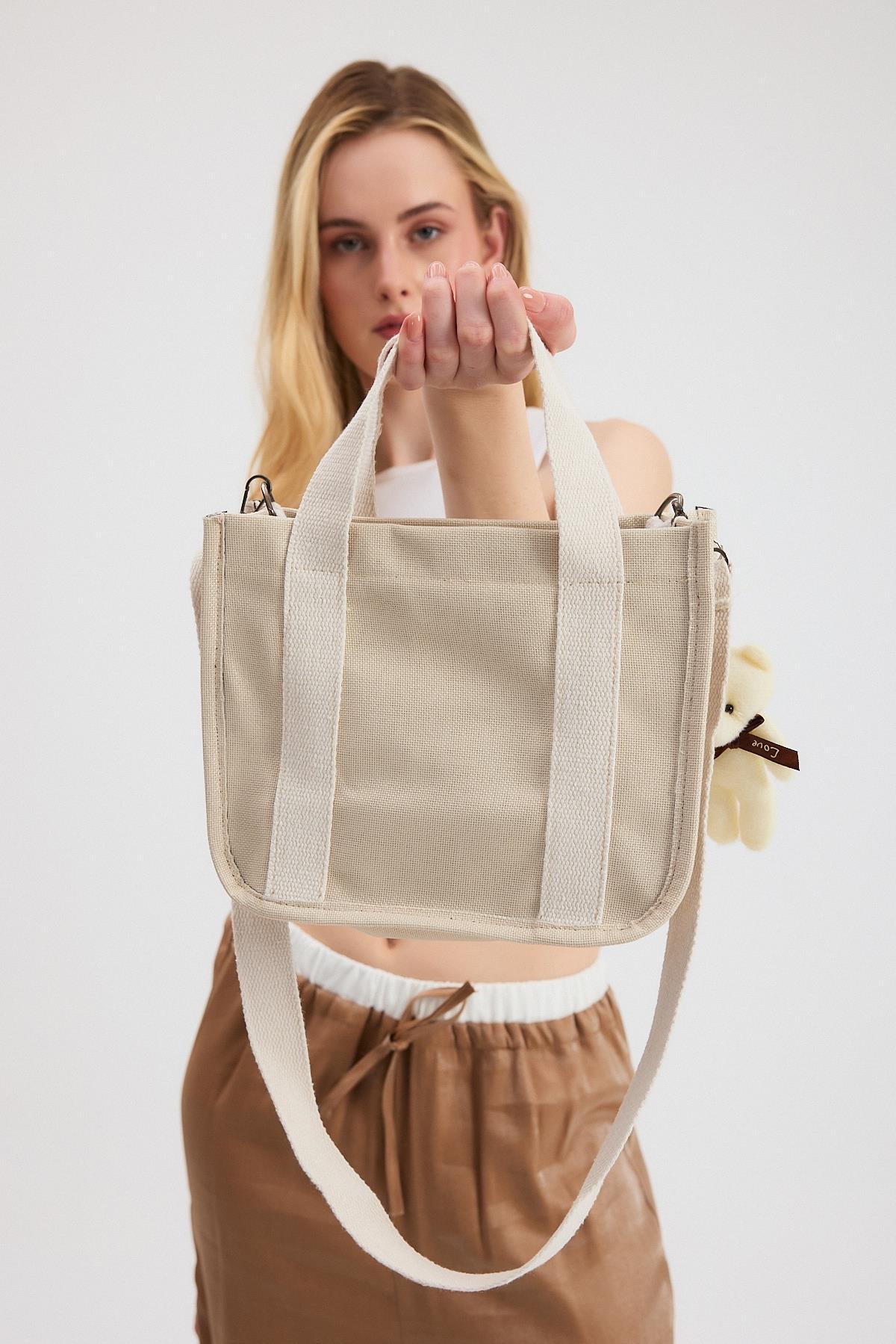 Krem Ayıcık Detay Çanta 9206
