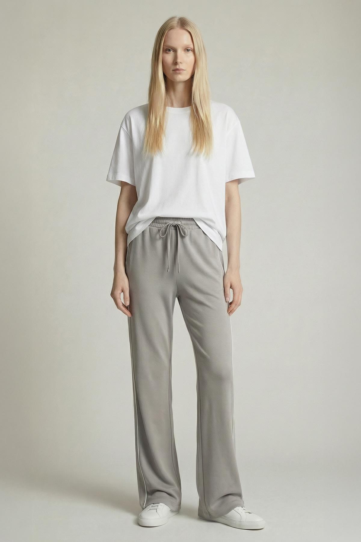 9212M Palazzo Çizgli Eşofman Gri