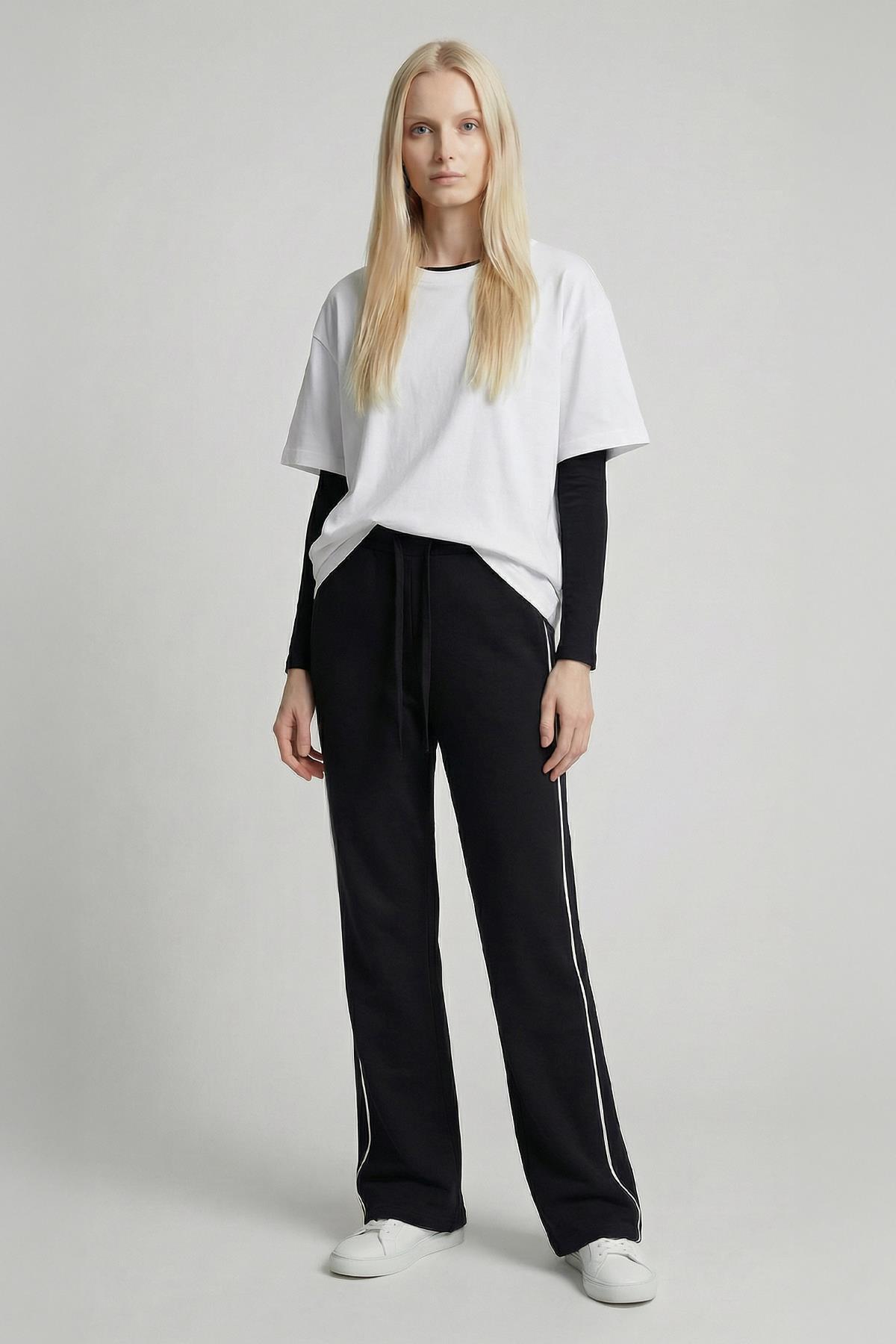 9212M Palazzo Çizgli Eşofman Siyah