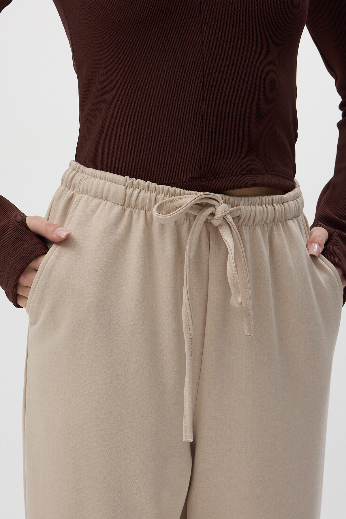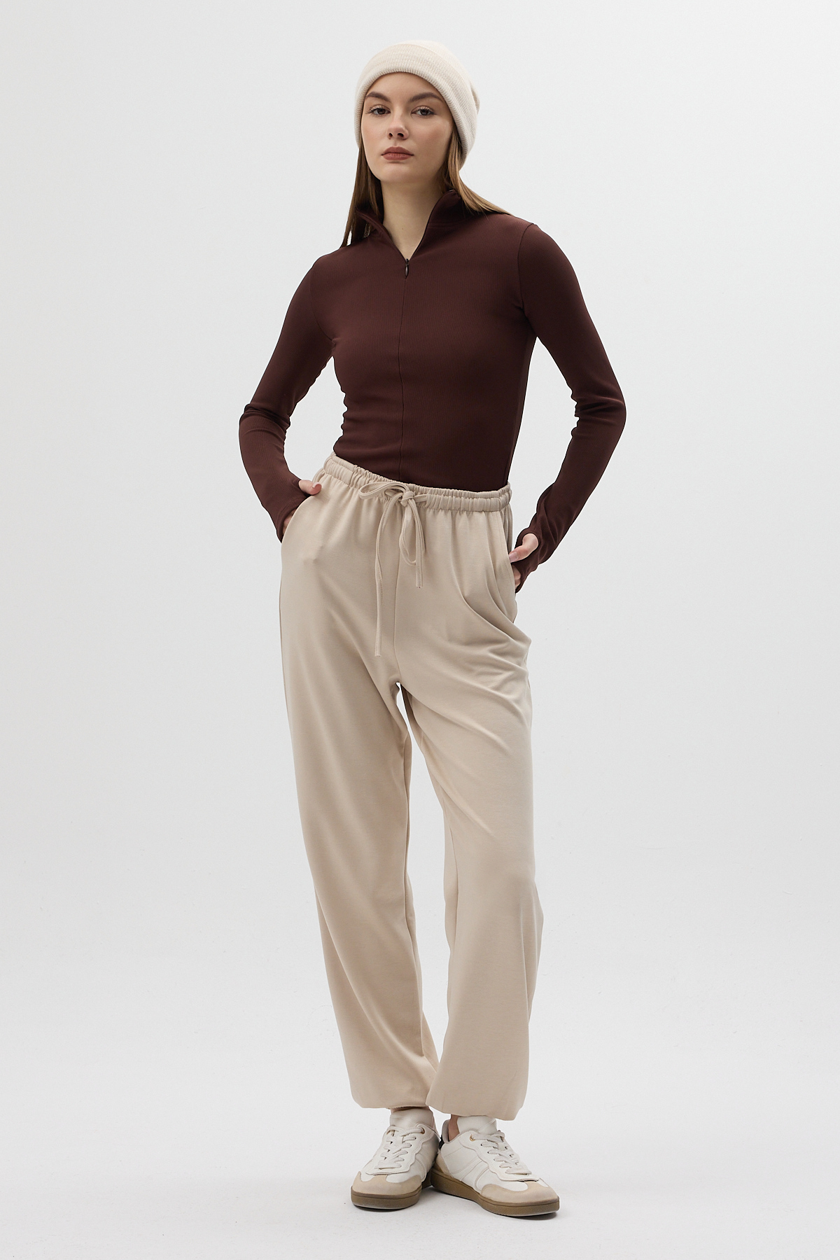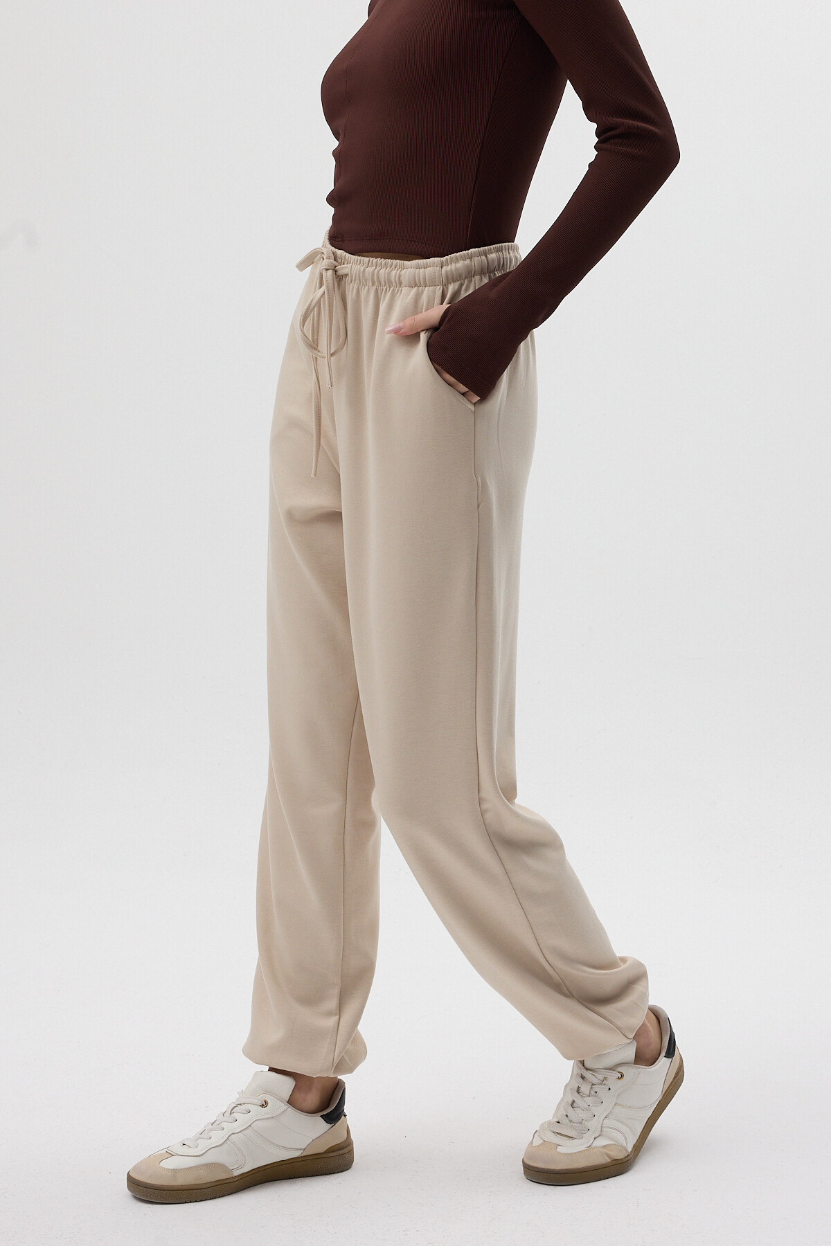 Bej Paçası Lastikli Büzgülü Kadın Eşofman Altı 9213M