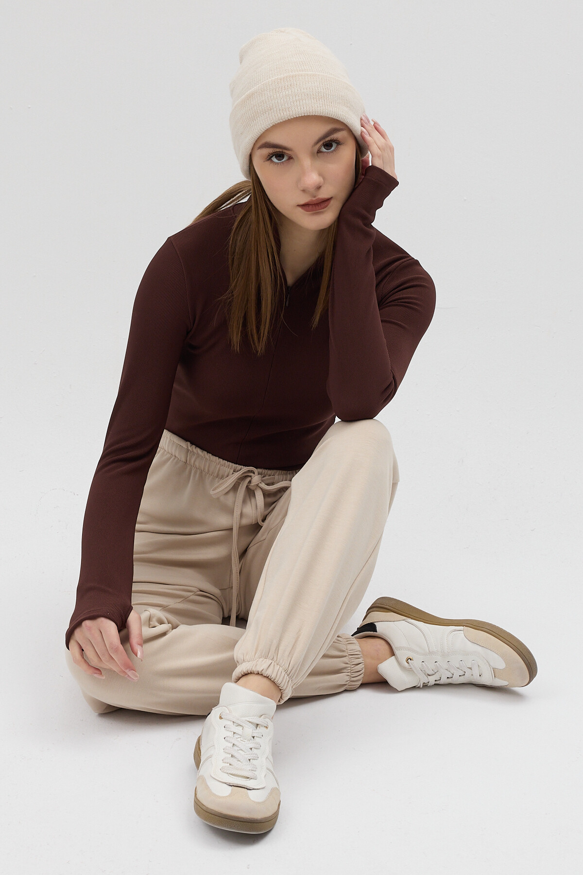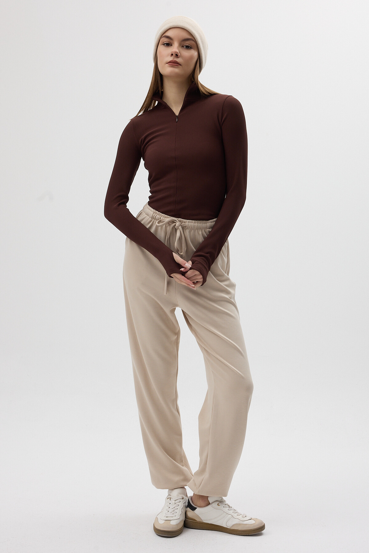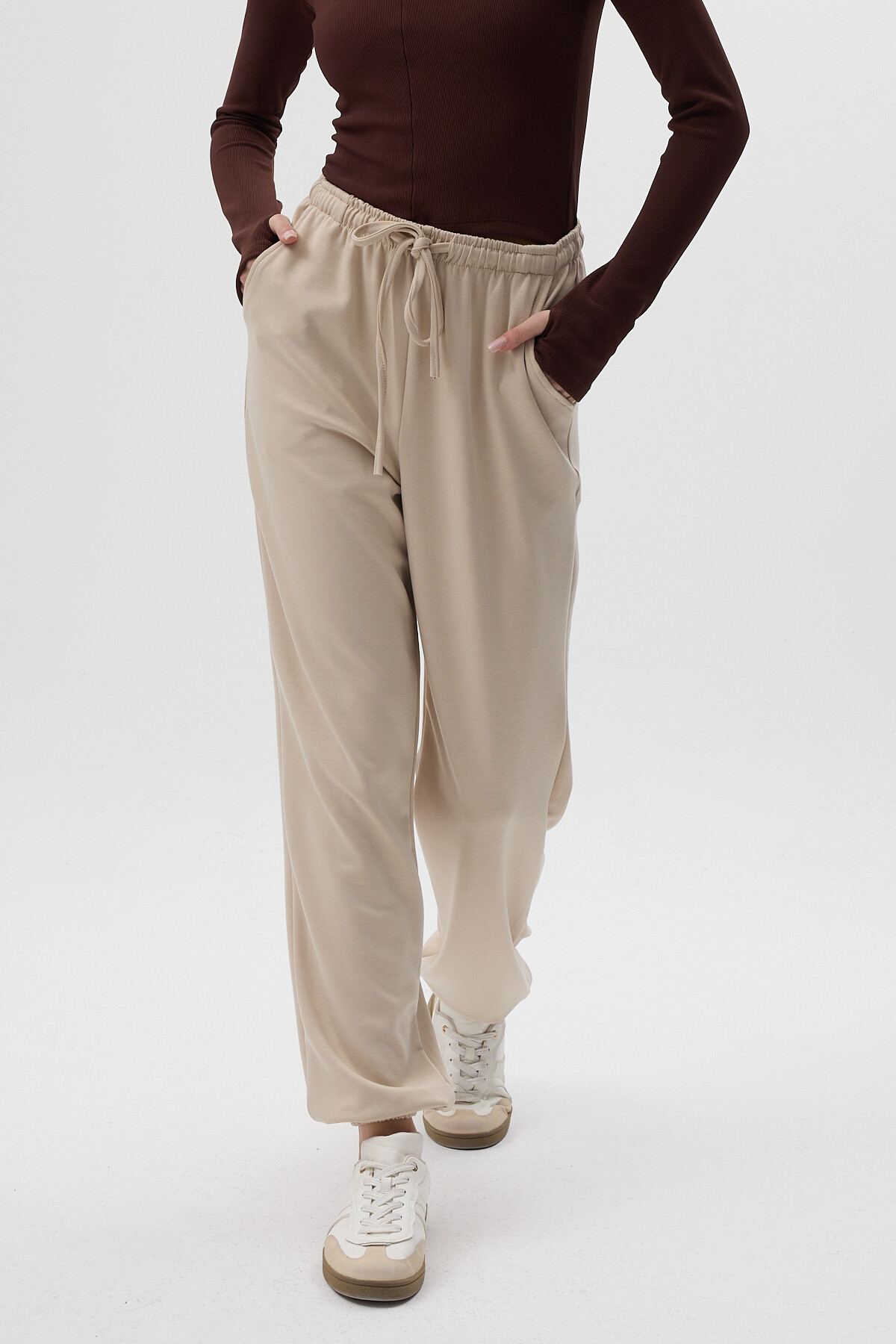 Bej Paçası Lastikli Büzgülü Kadın Eşofman Altı 9213M
