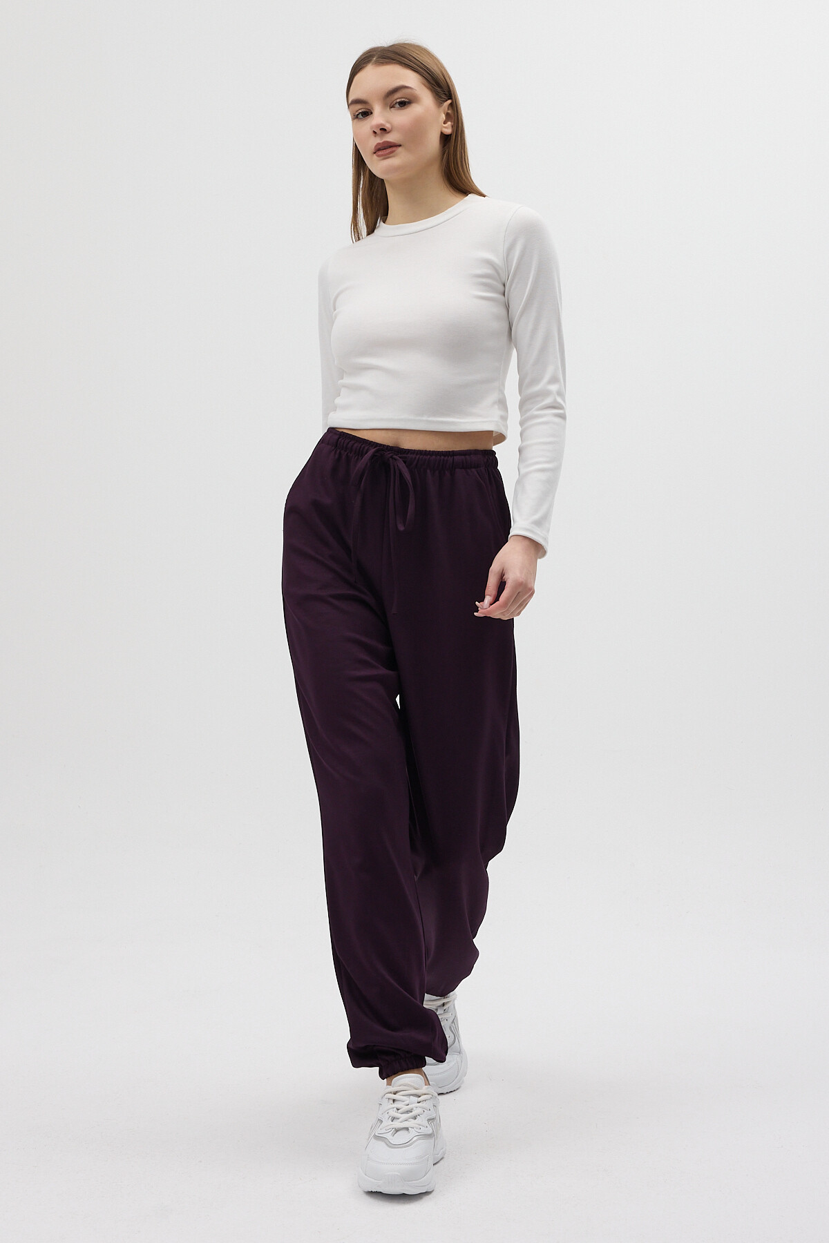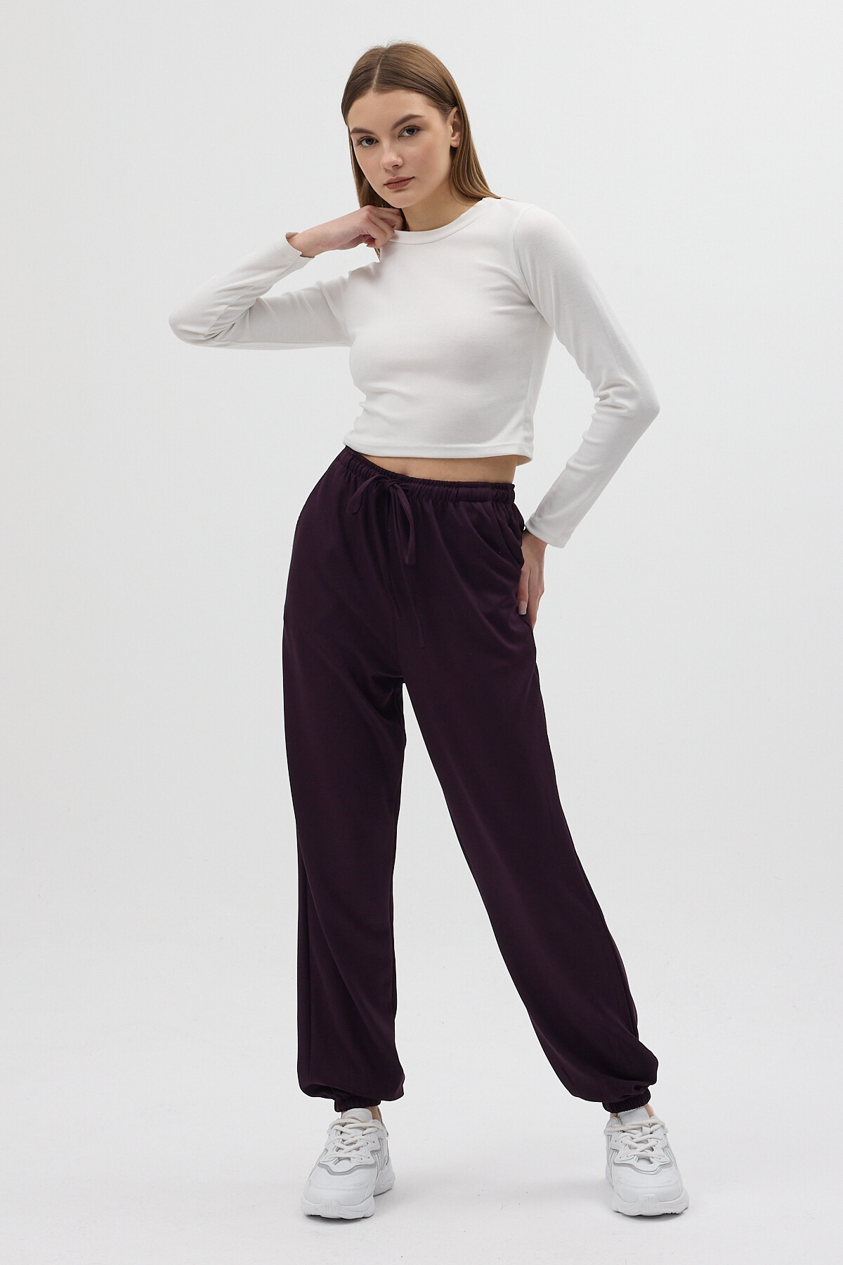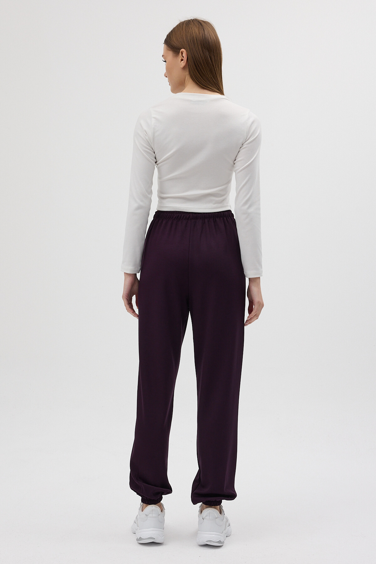 Mürdüm Paçası Lastikli Büzgülü Kadın Eşofman Altı 9213M