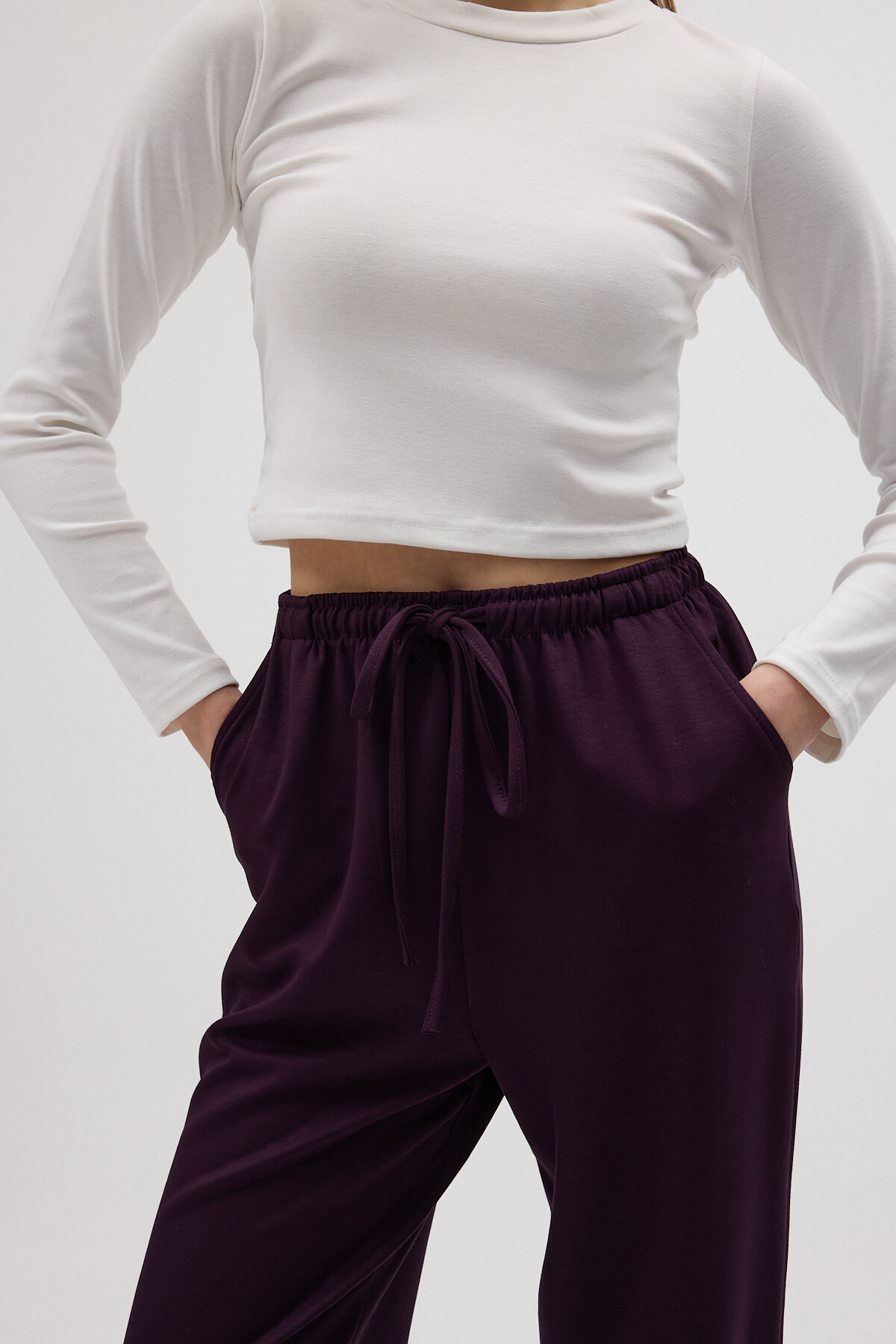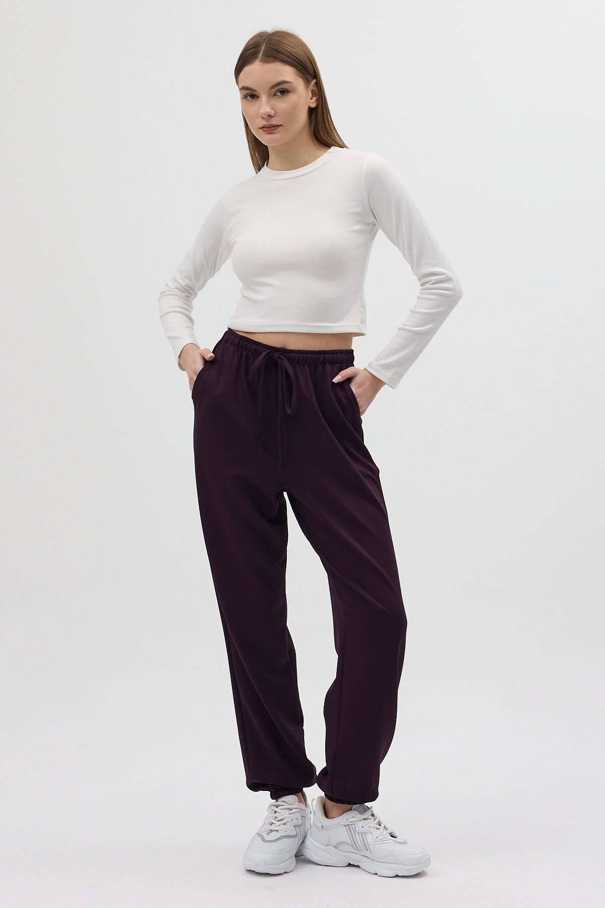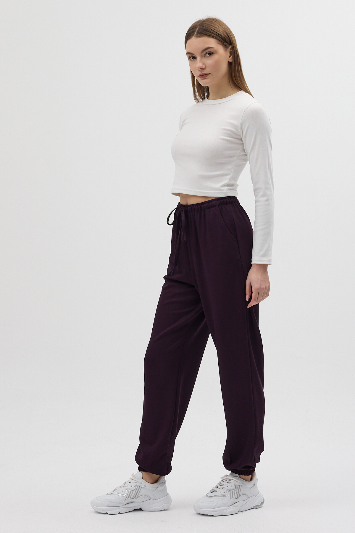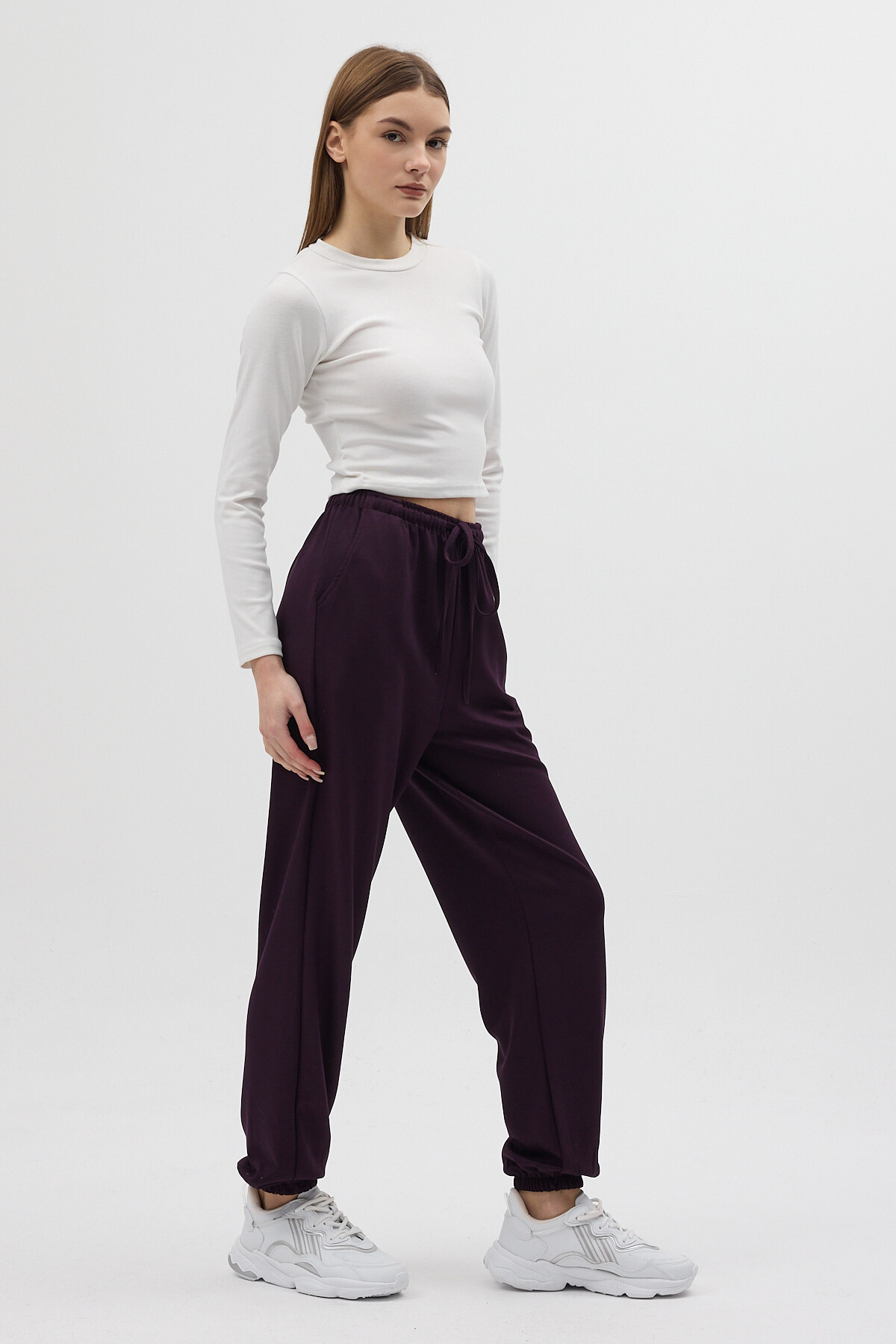 Mürdüm Paçası Lastikli Büzgülü Kadın Eşofman Altı 9213M