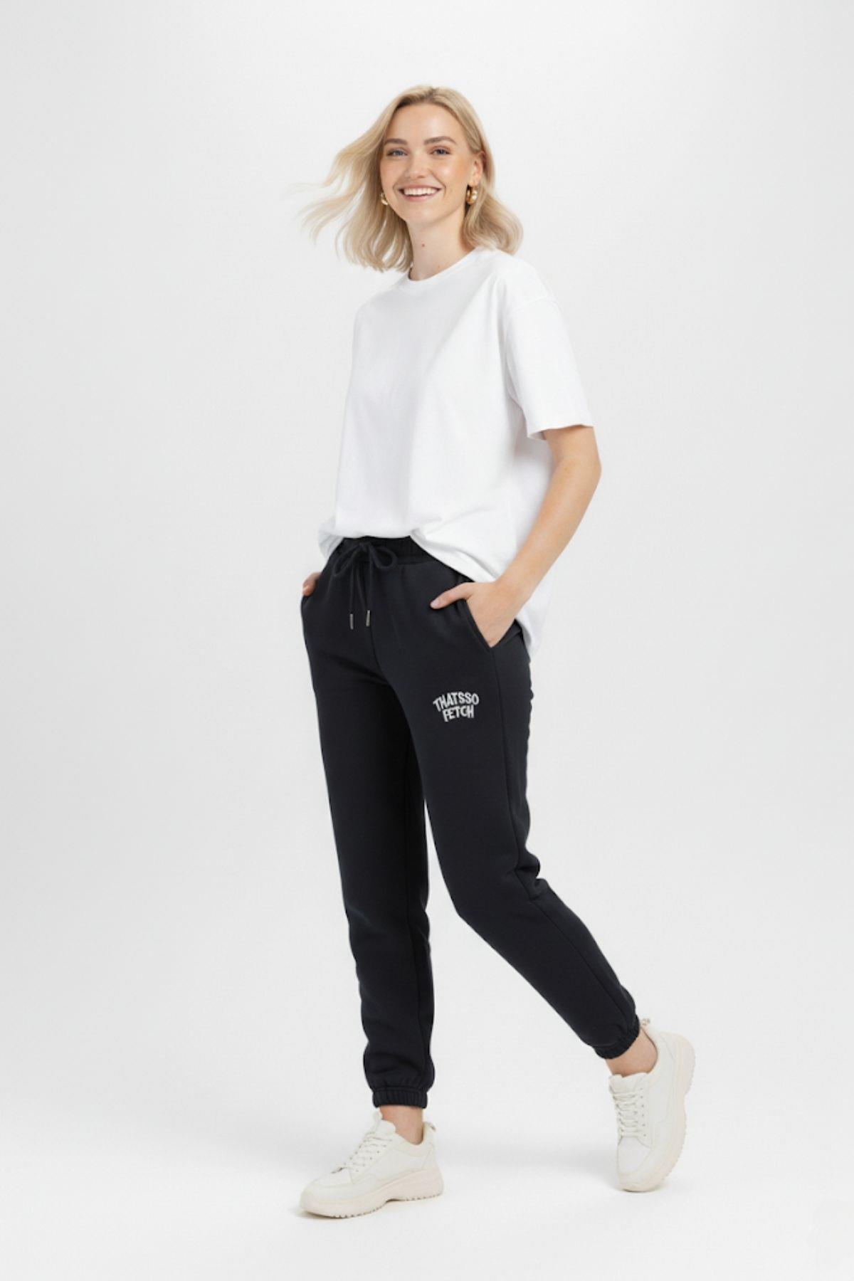 Siyah Yazı Nakışlı Kadın Jogger Eşofman Altı 9219M