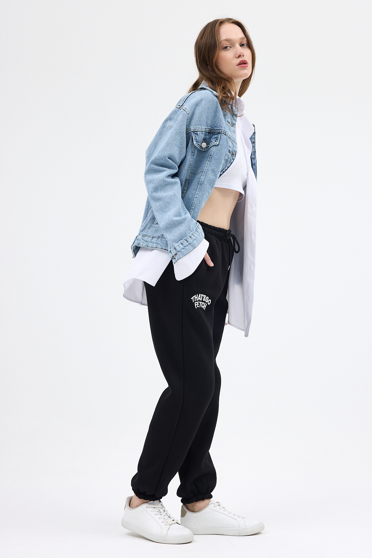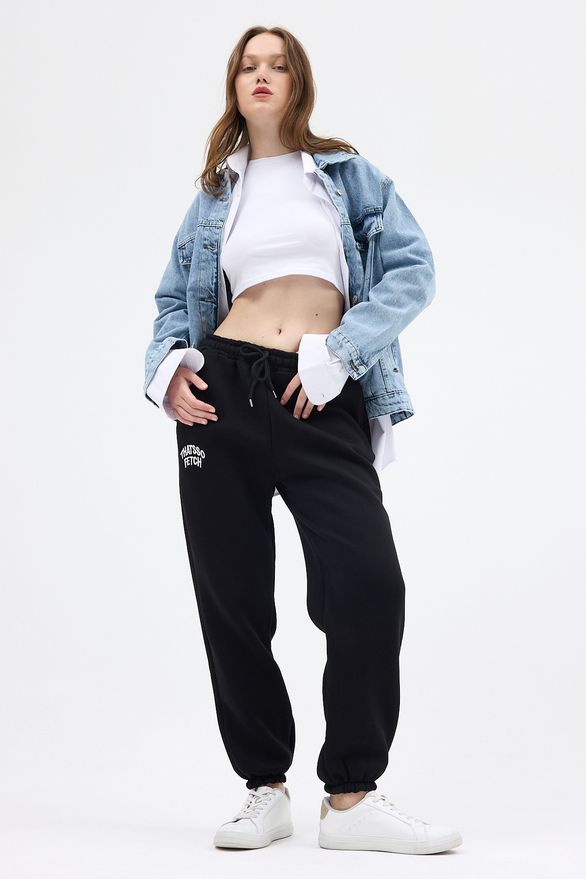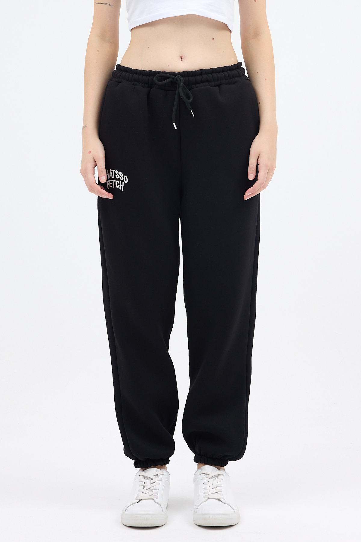 Siyah Yazı Nakışlı Kadın Jogger Eşofman Altı 9219M