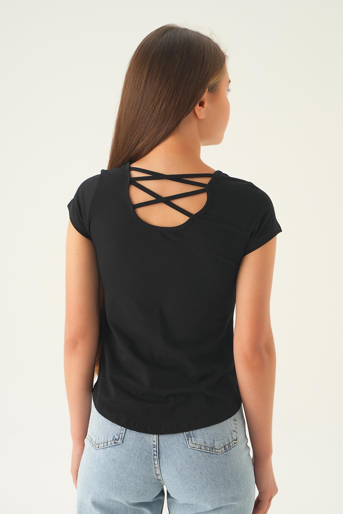 Siyah Arka Çapraz İp Tişört 922