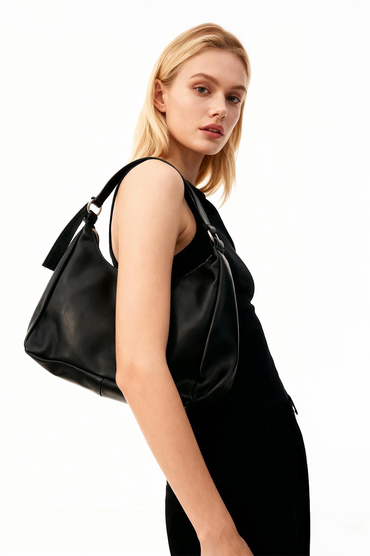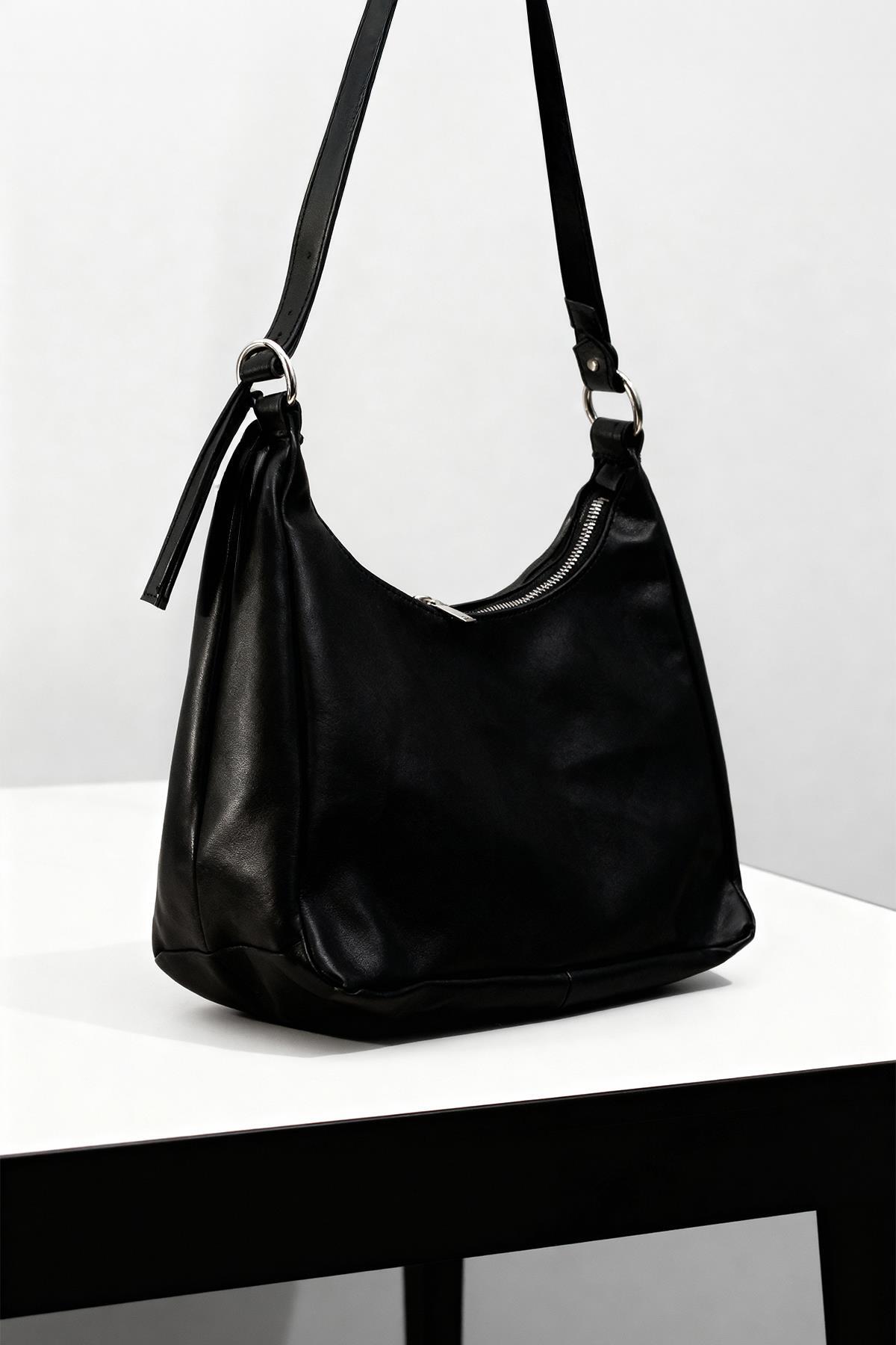 Siyah Dikiş Detaylı Omuz Çantası 9212