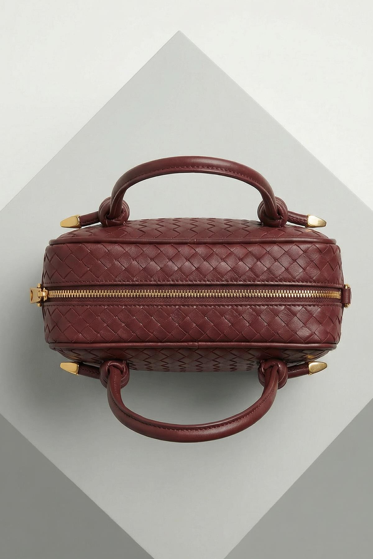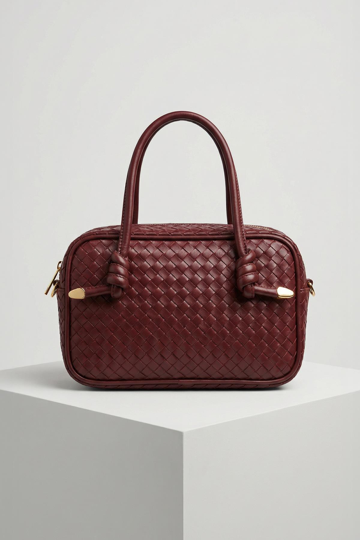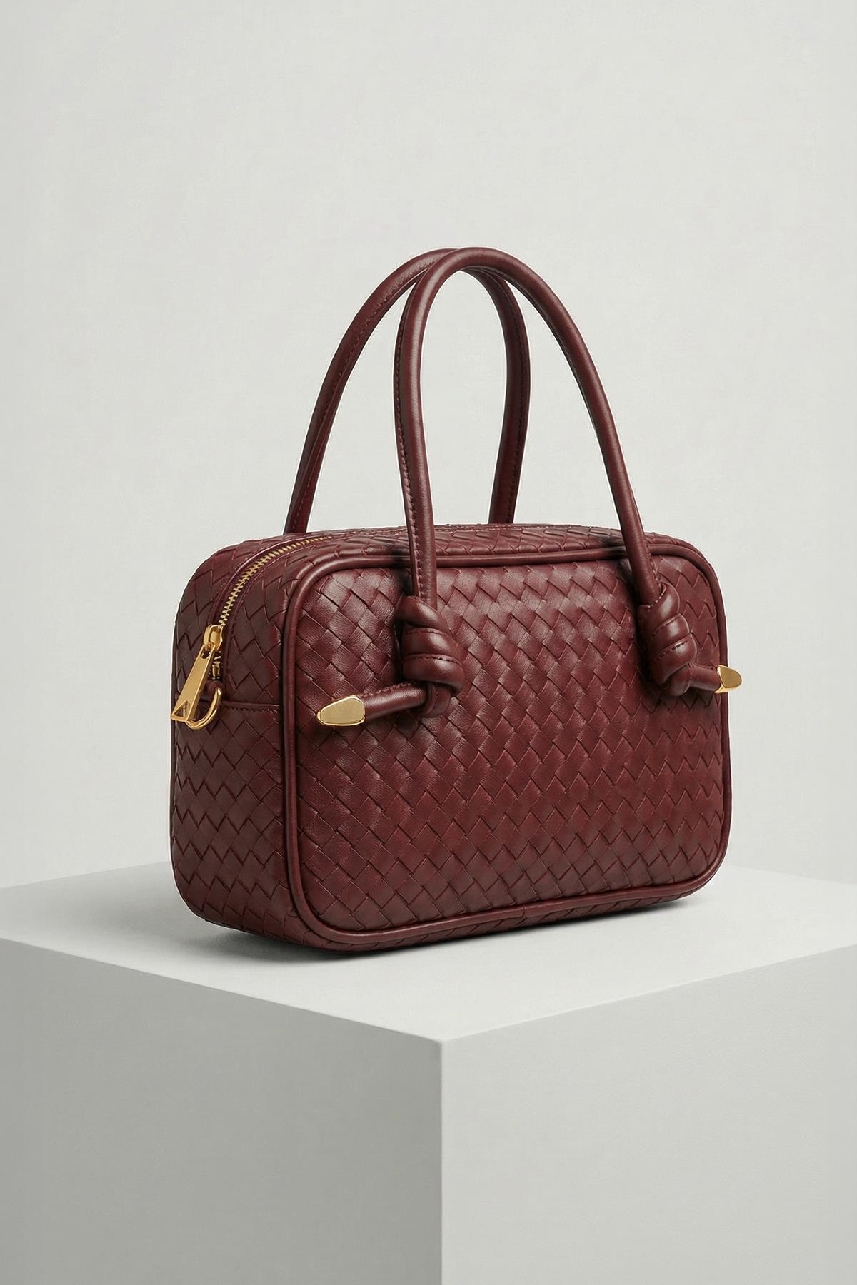 9230 Fermuarllı Örgülü Çanta Bordo - RAYS