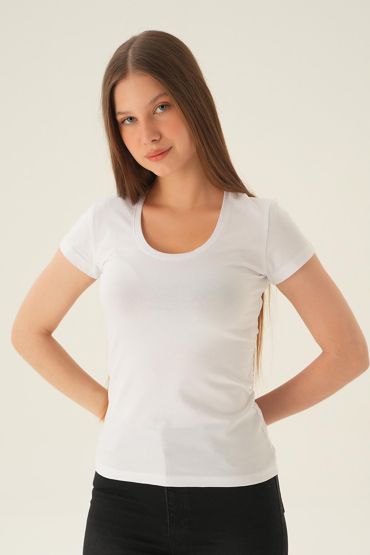 Beyaz U Yaka Tişört 923