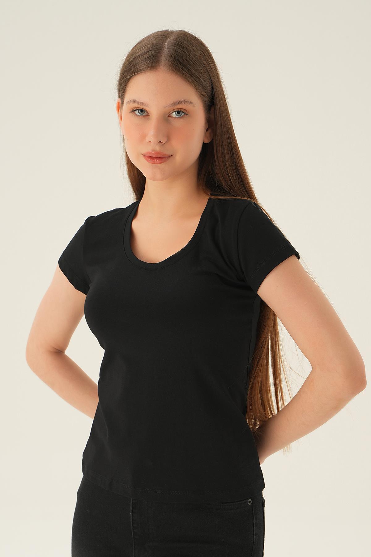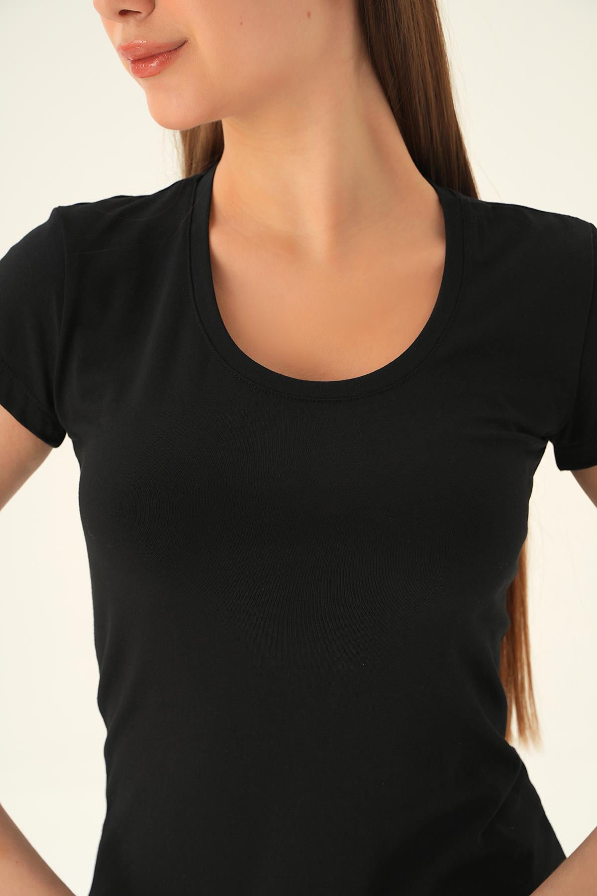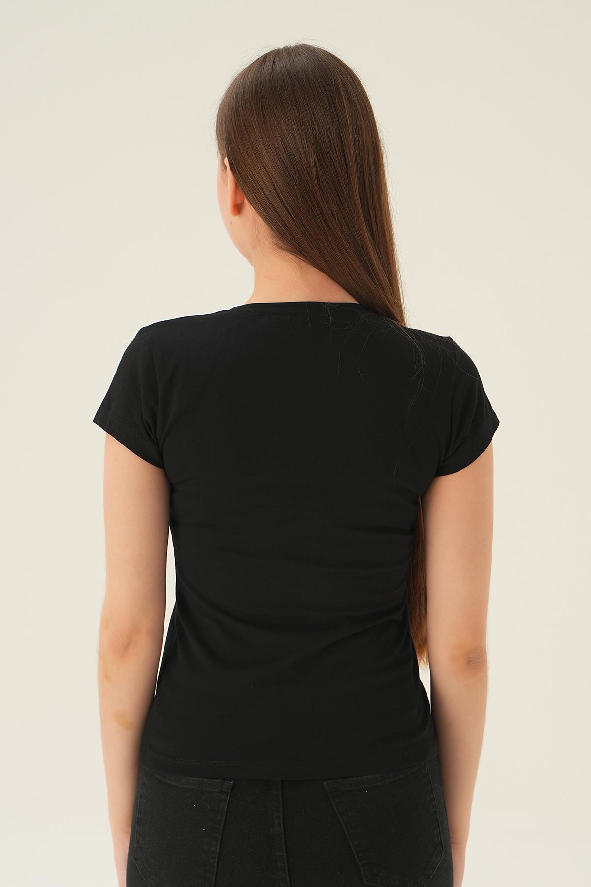 Siyah Taşlı V Yaka Kısa Kol Tişört 1761