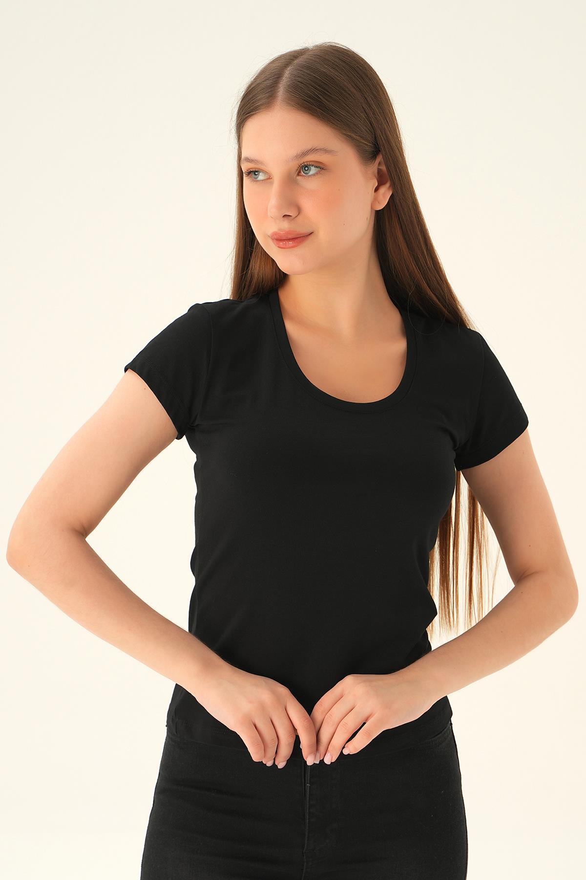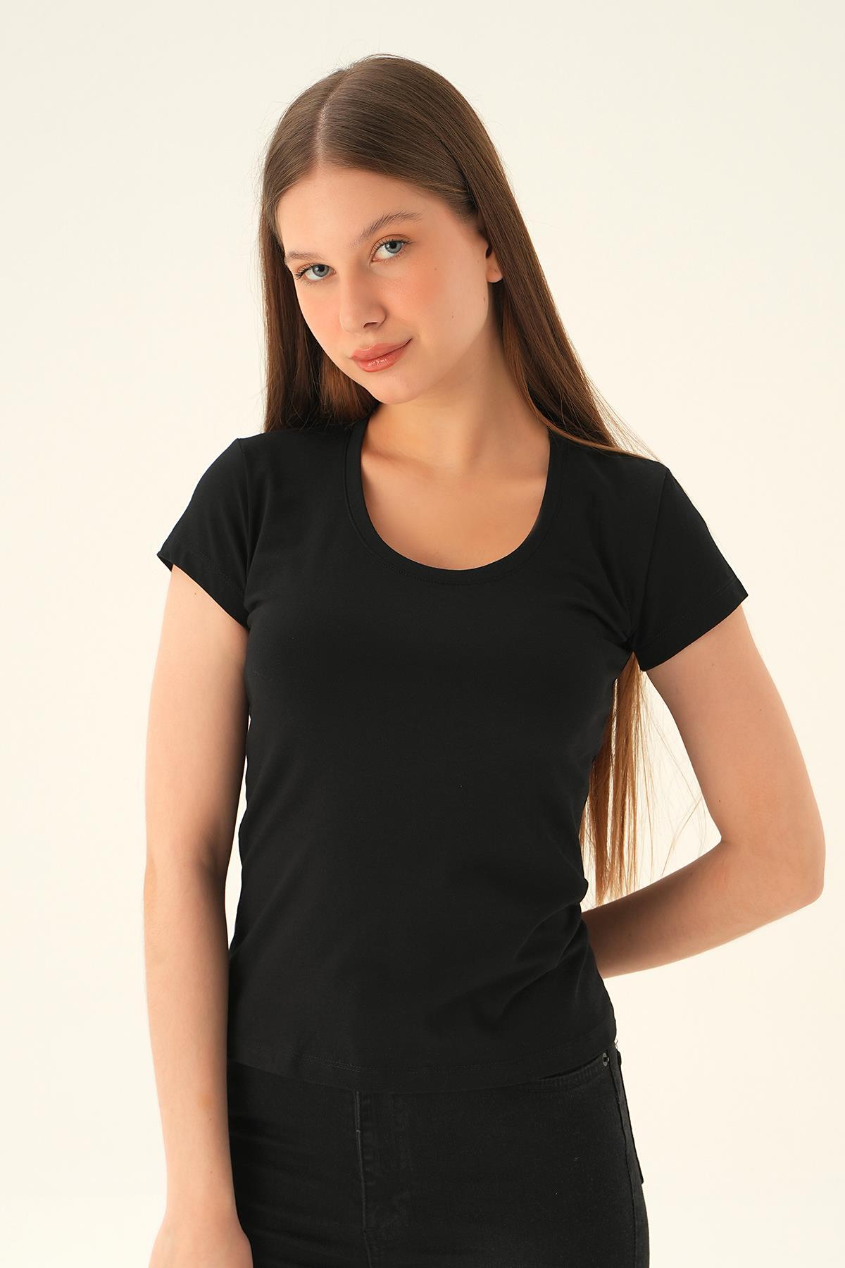 Siyah Yaka Taşlı Kısa Kollu Tişört 6294