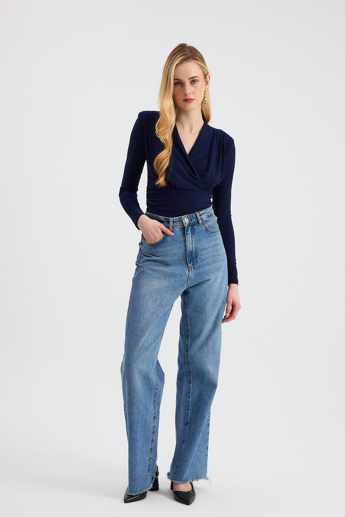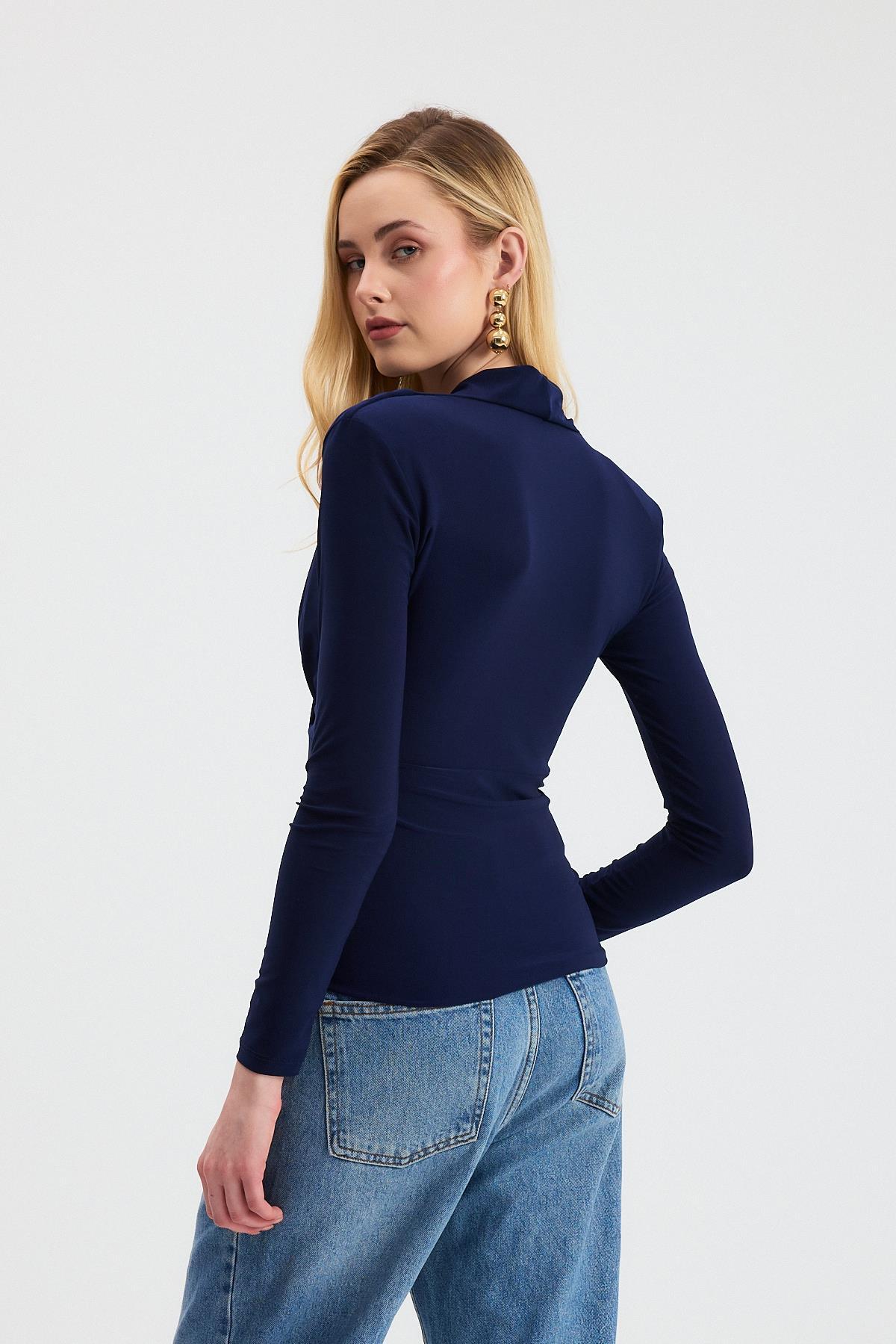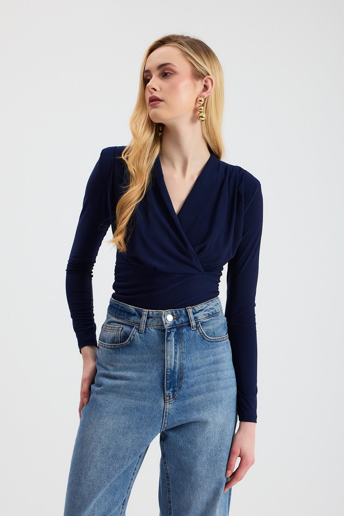 Laci Kruvaze Yaka Vatkalı Bluz 9256