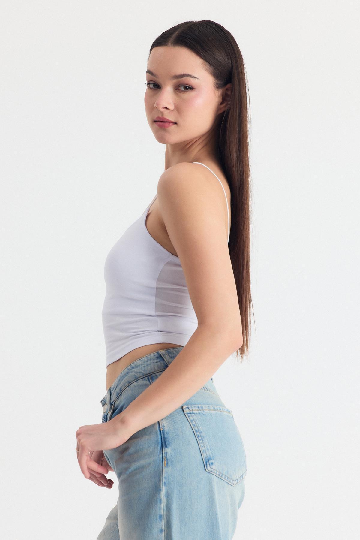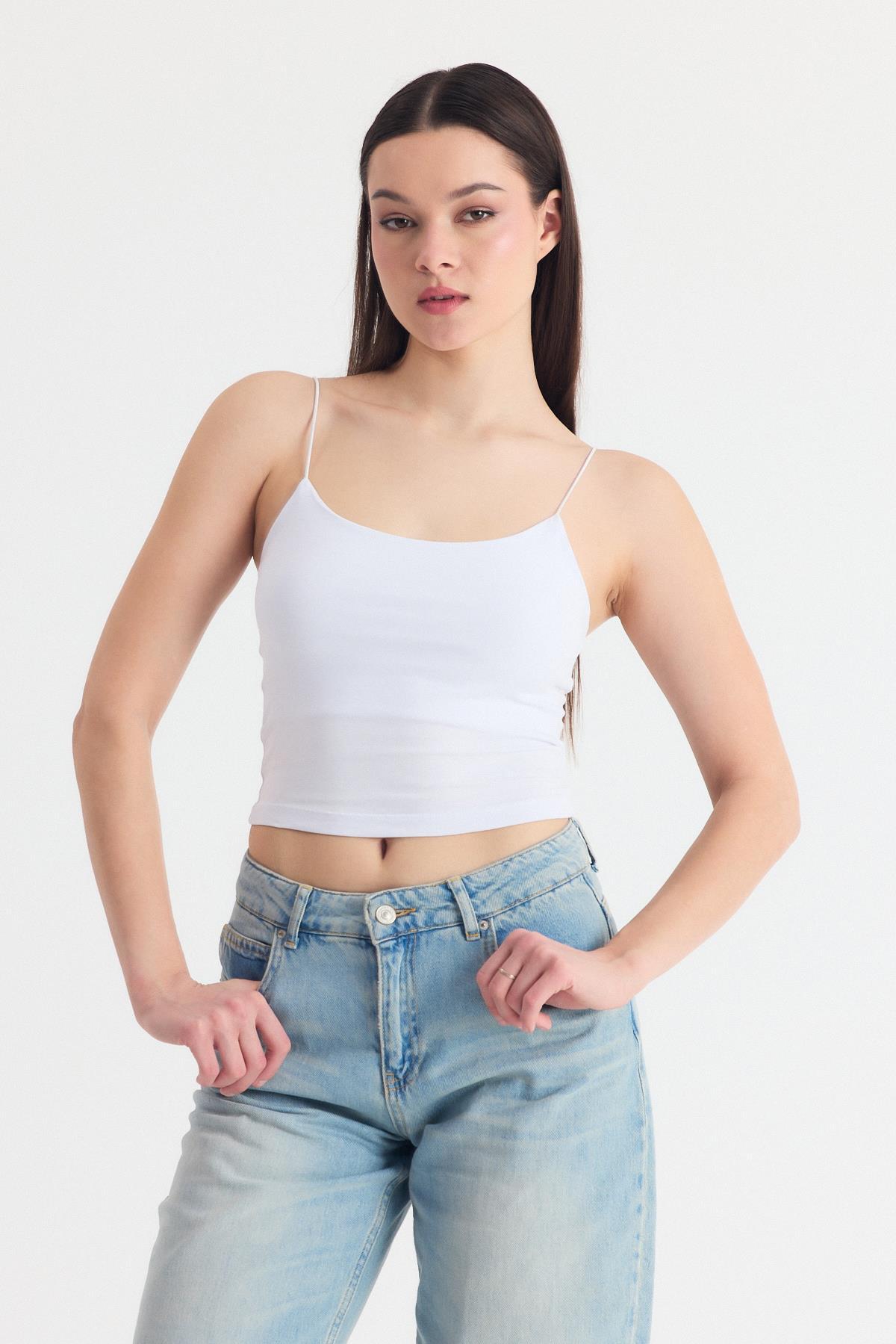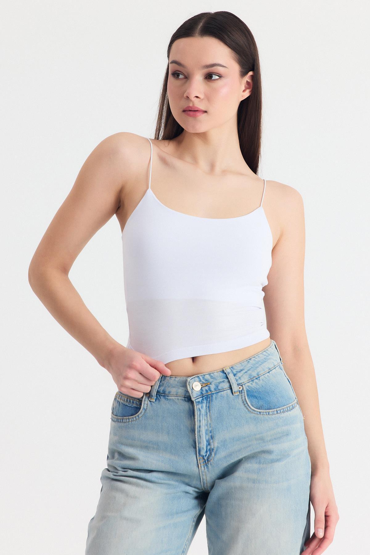 Beyaz İnce Askılı Fitted Basic Atlet 947