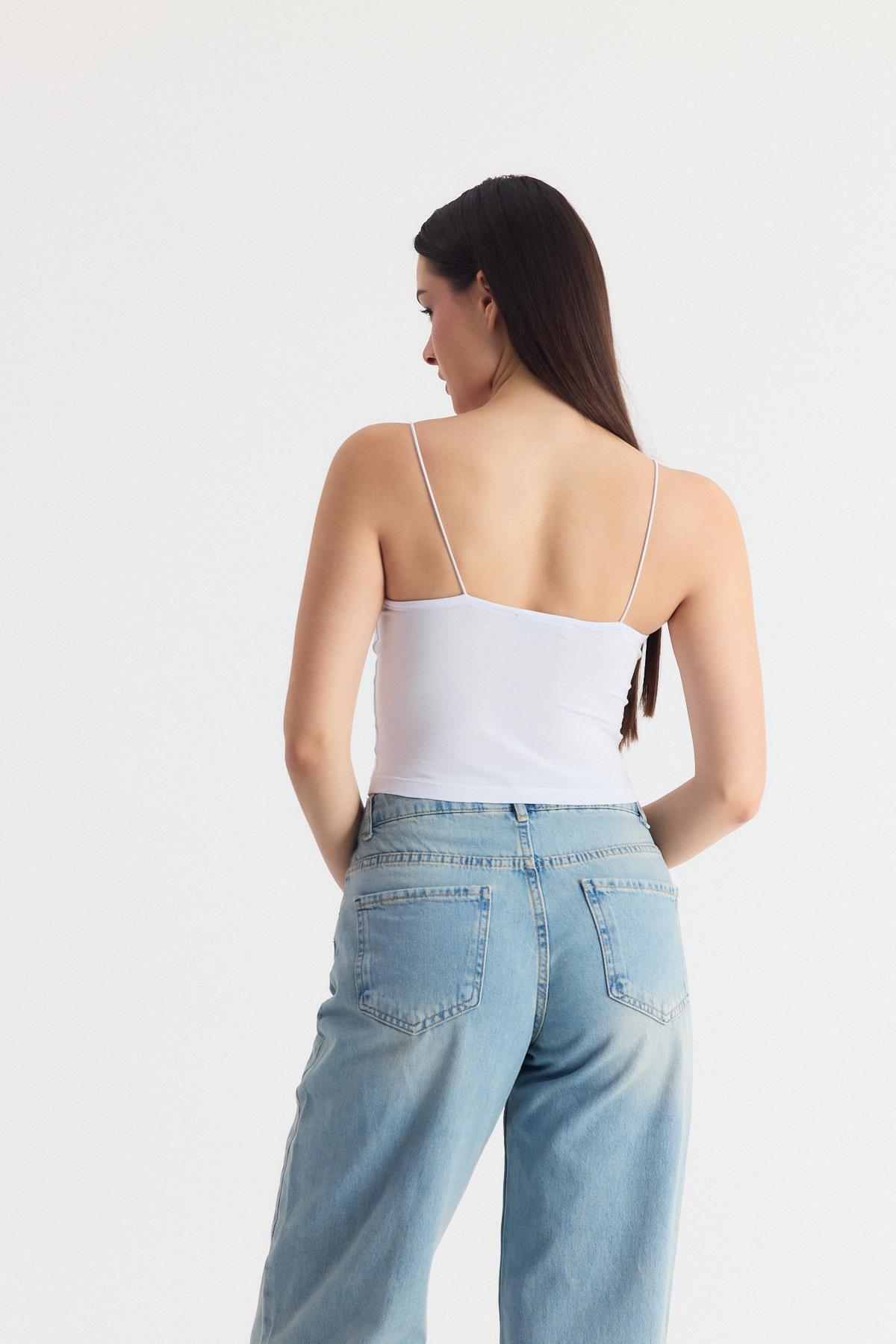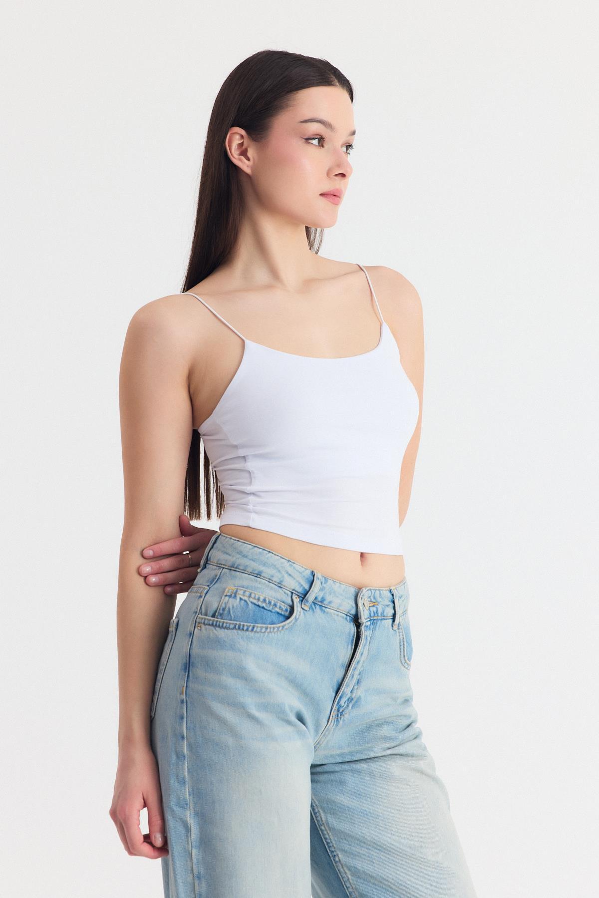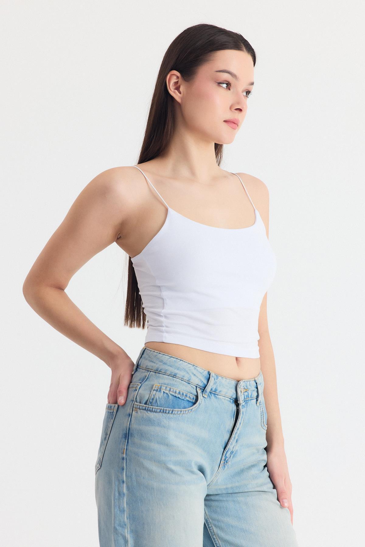 Beyaz İnce Askılı Fitted Basic Atlet 947