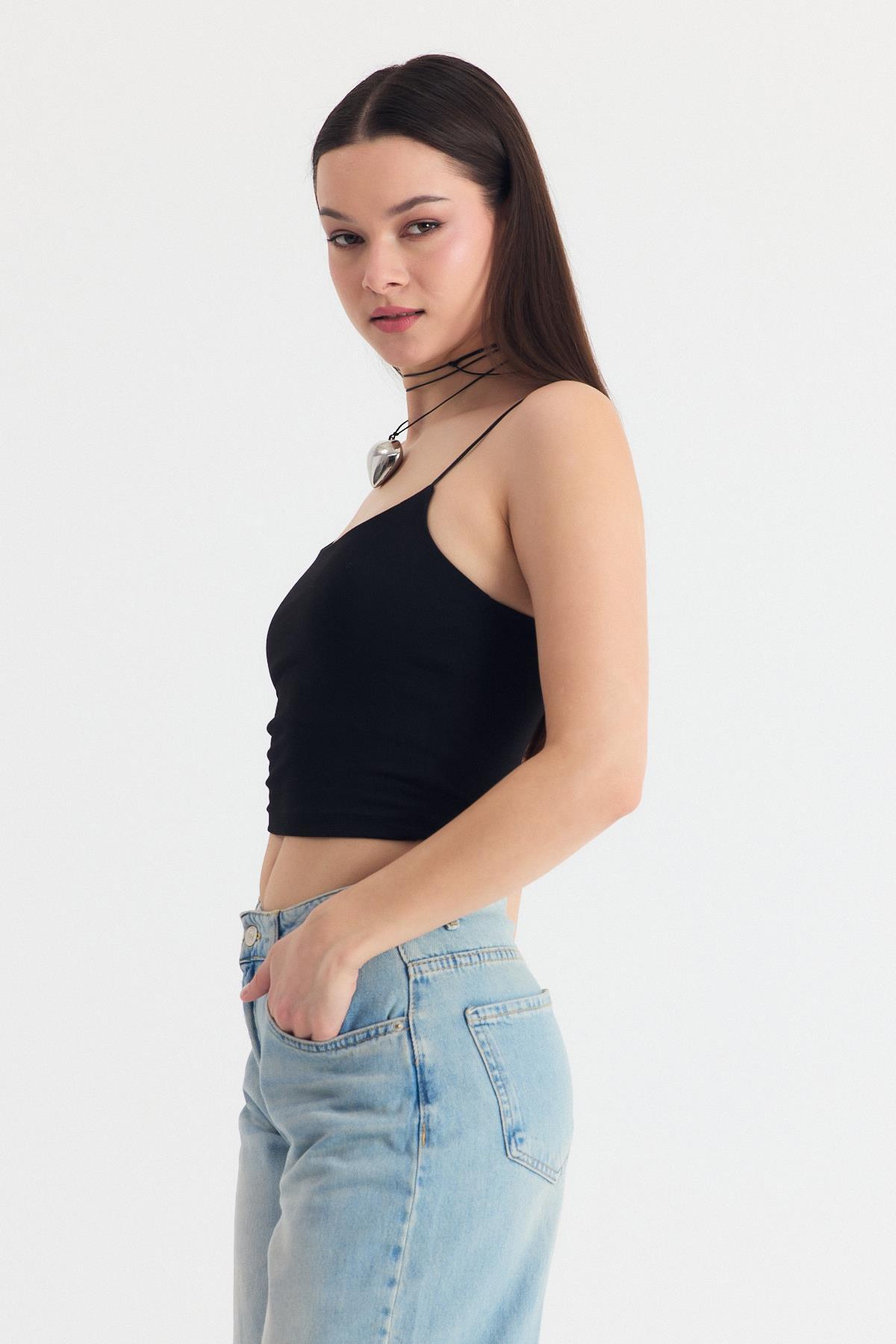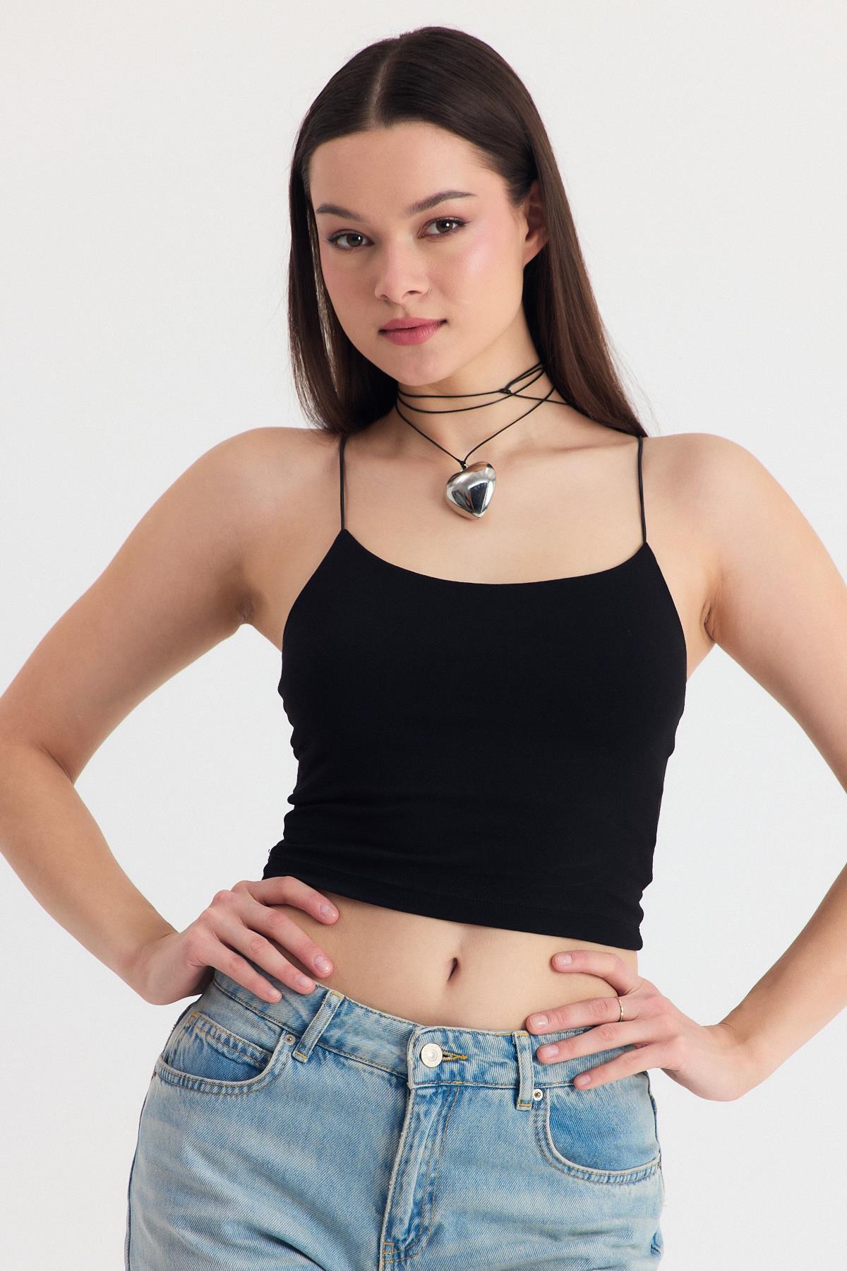 Siyah İnce Askılı Fitted Basic Atalet 947