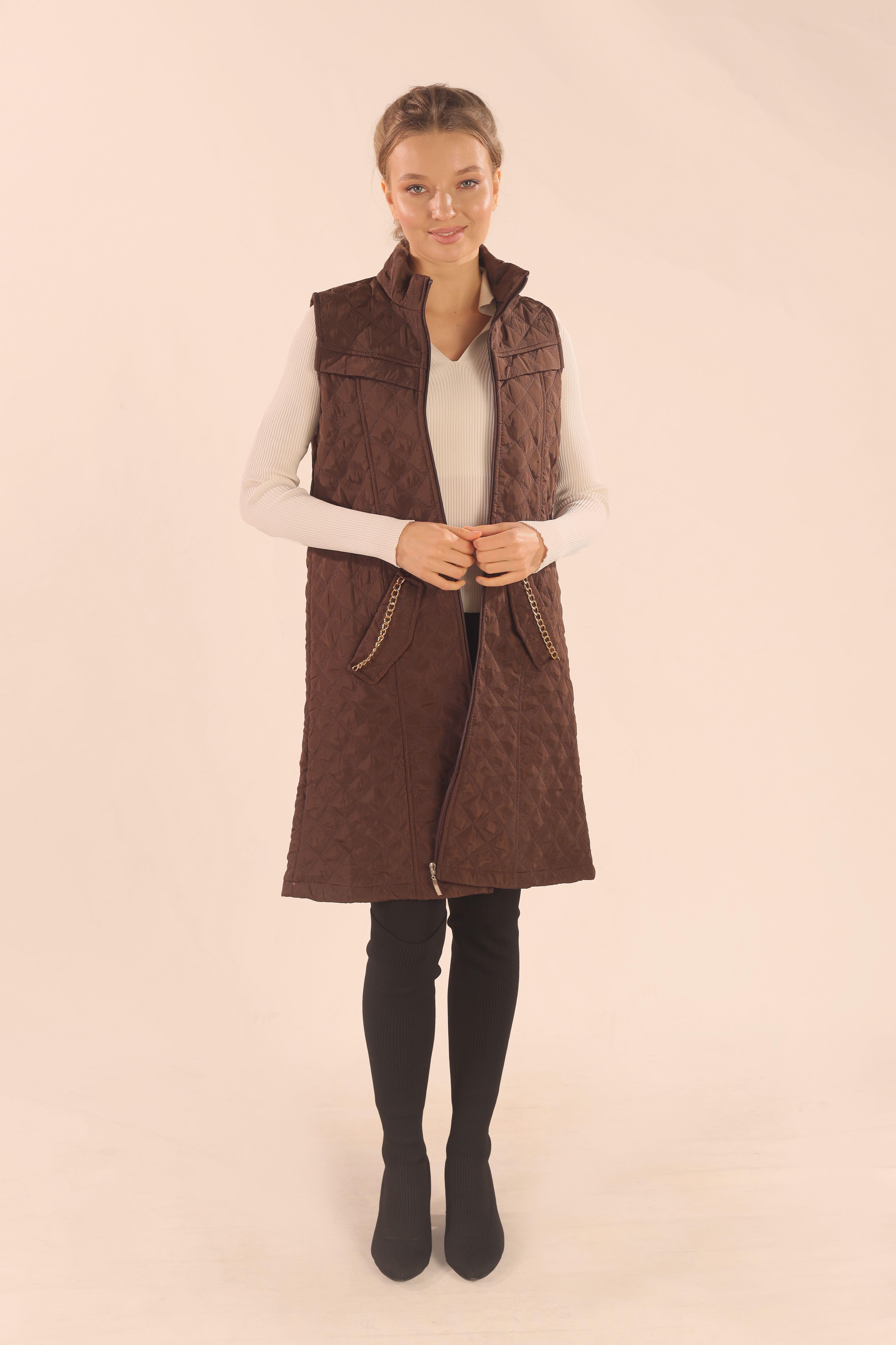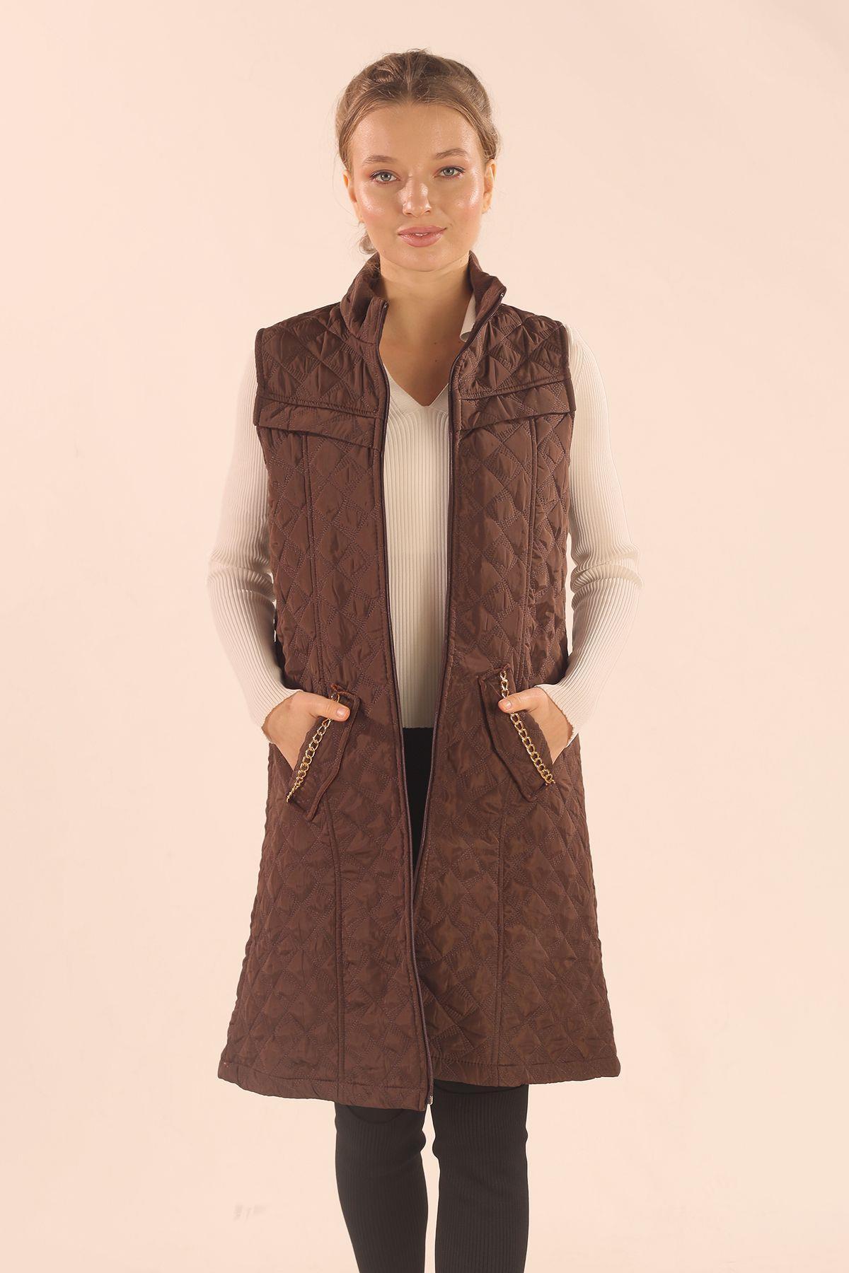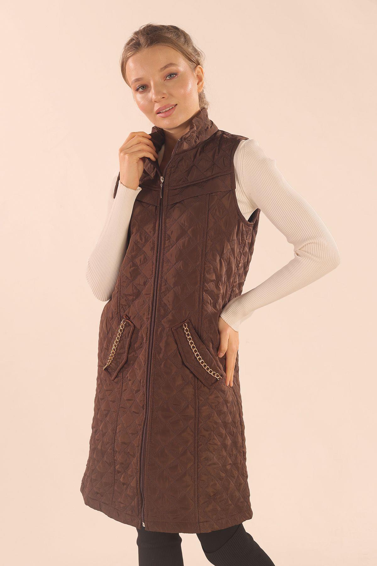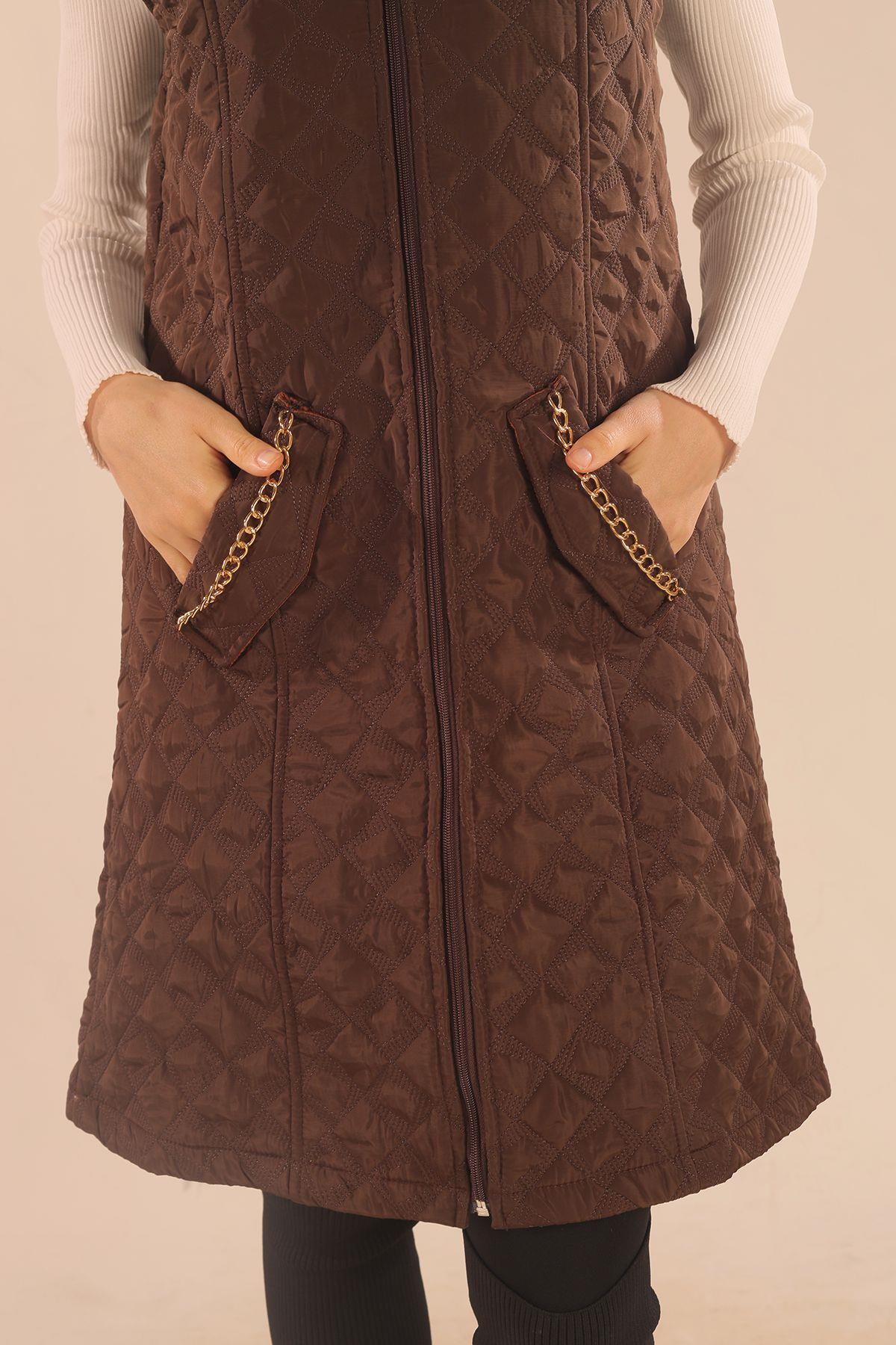 Kahve Cep Zincir Detay Yelek 9525