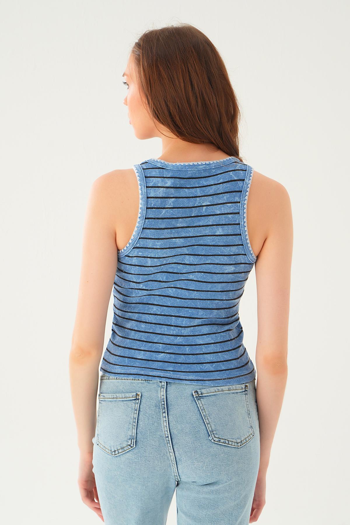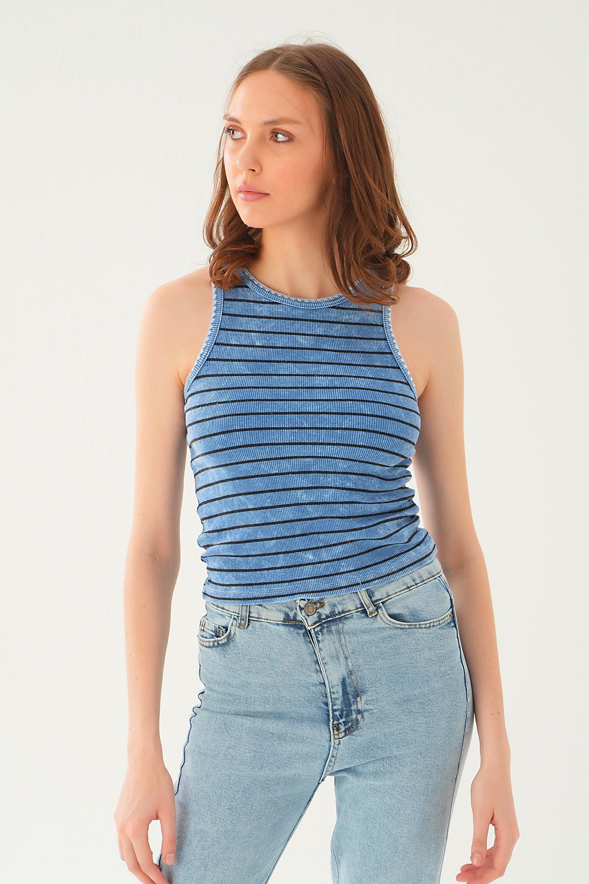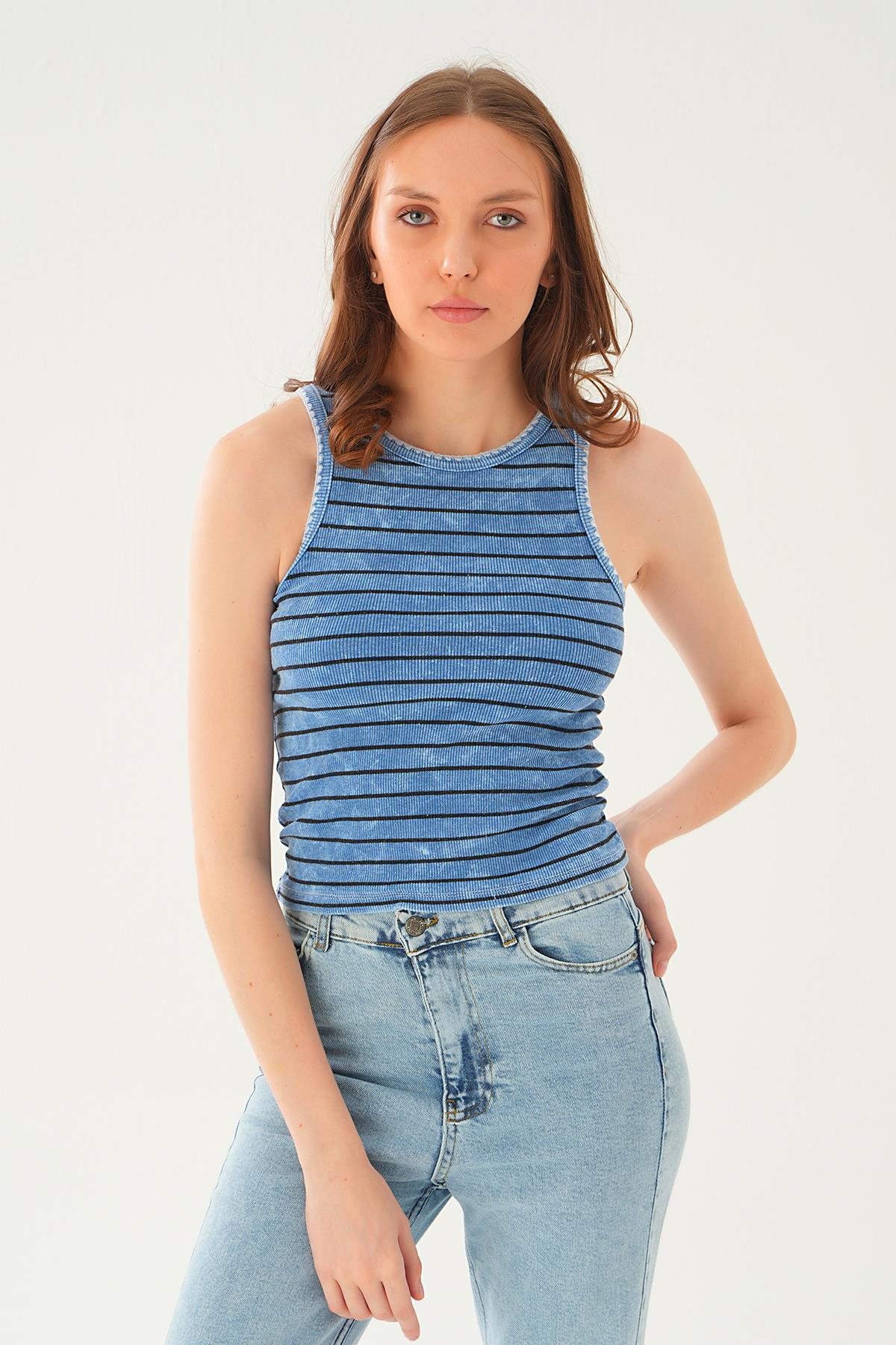 Mavi Çizgili Yıkamalı Atlet 966-1