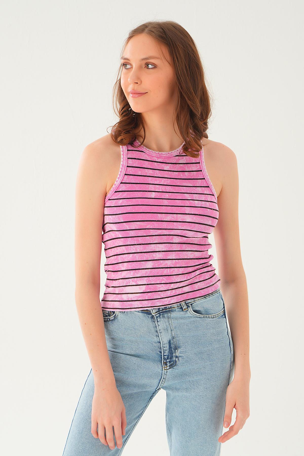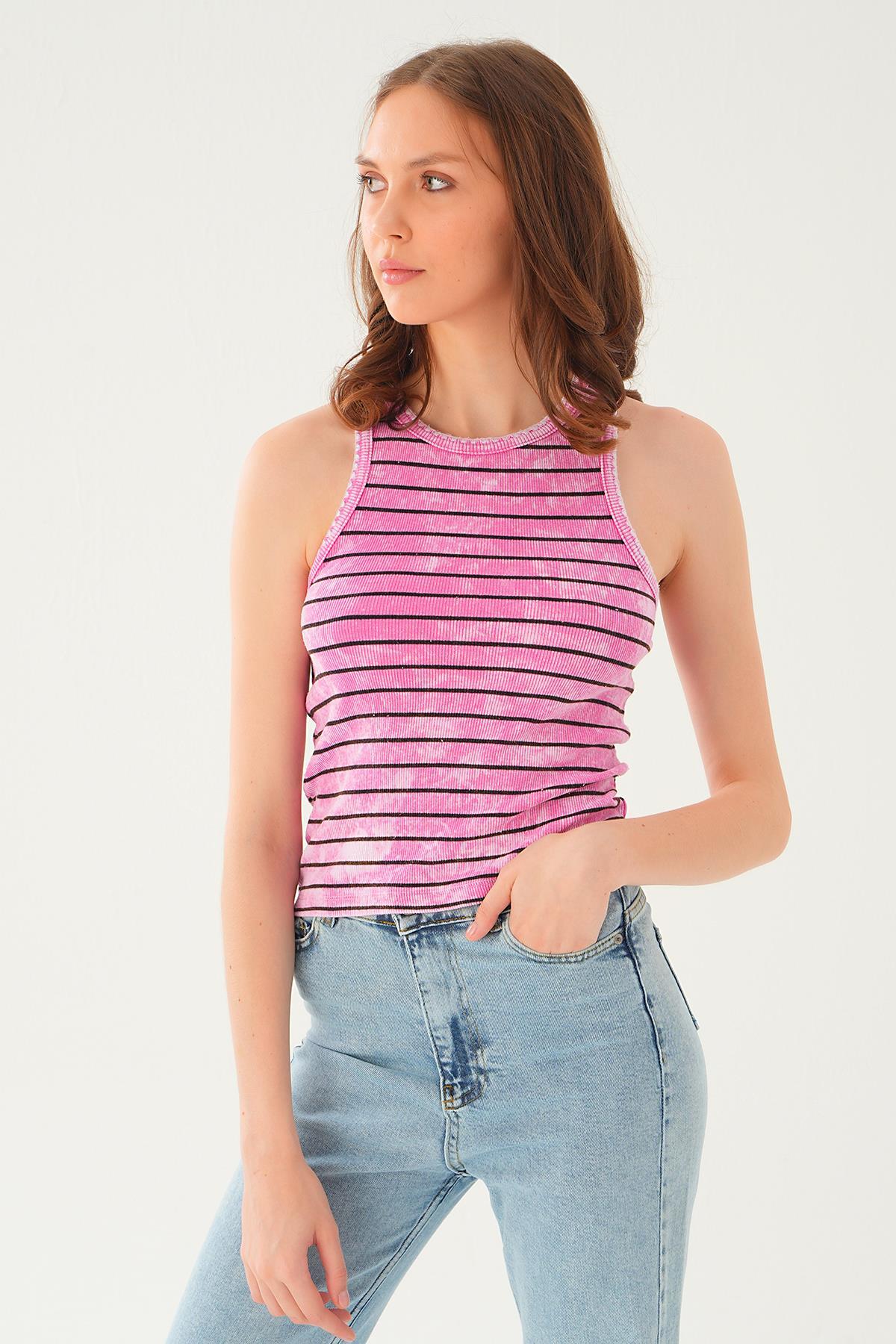 Pembe Çizgili Yıkamalı Atlet 966-1