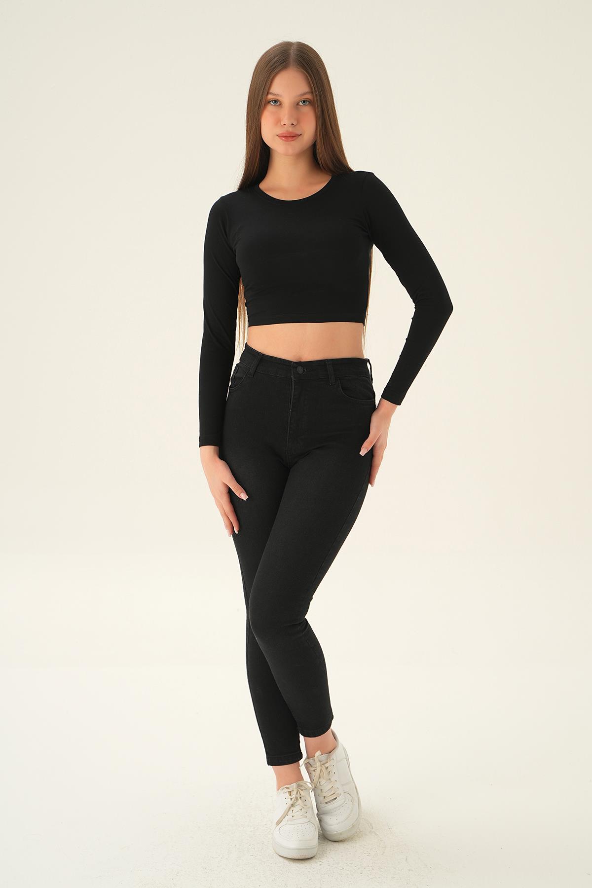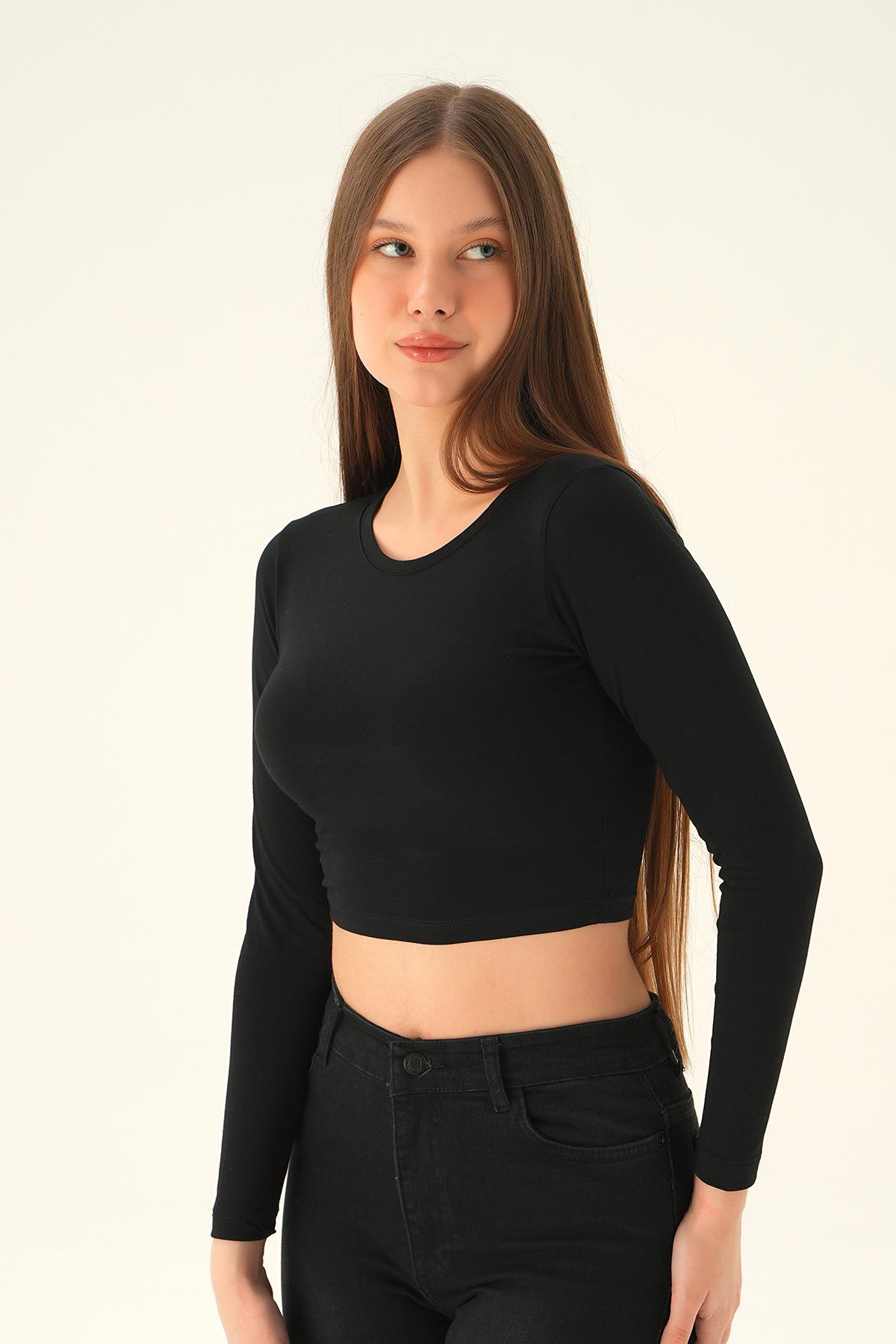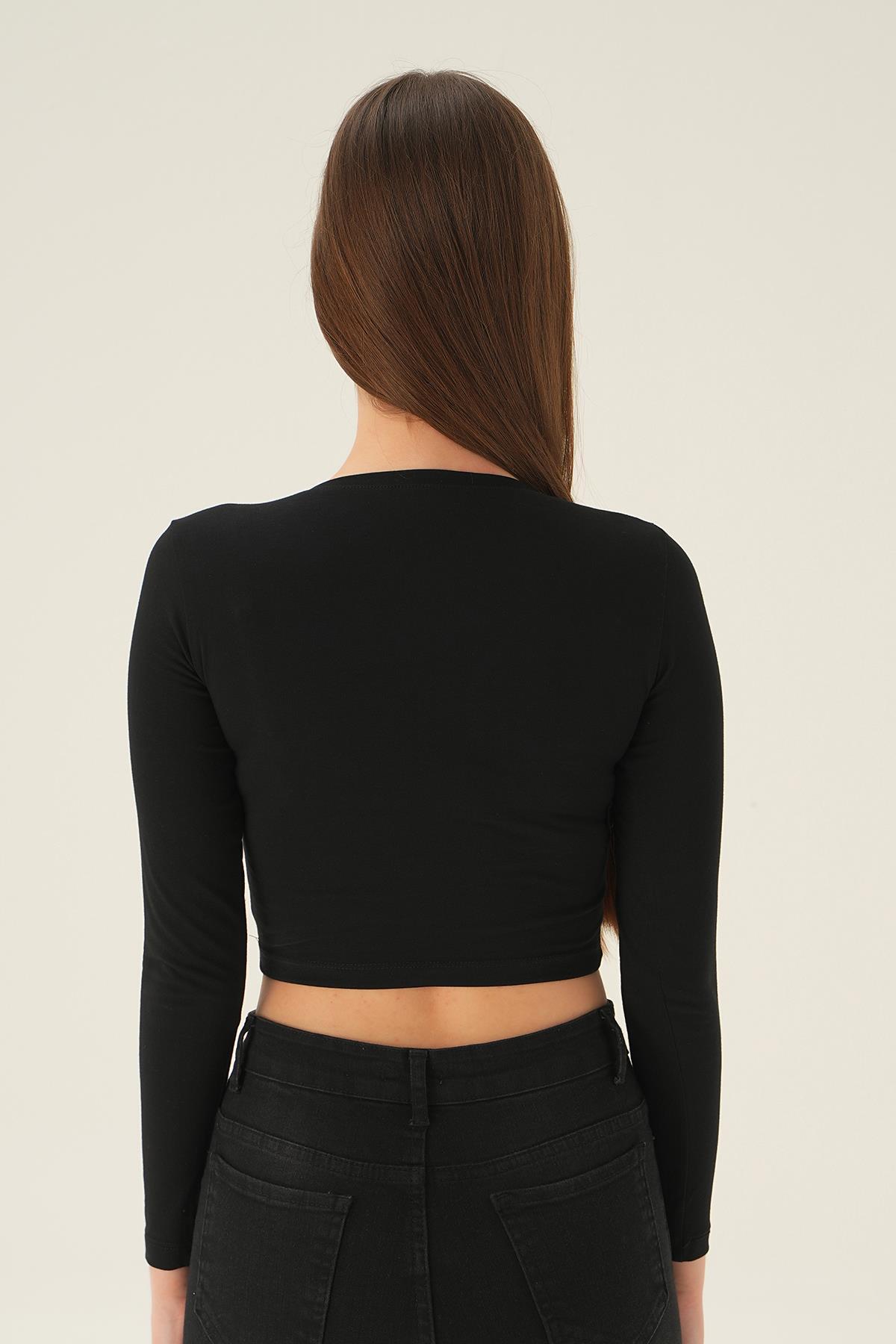 990 Uzun Kol Kısa Bluz Siyah