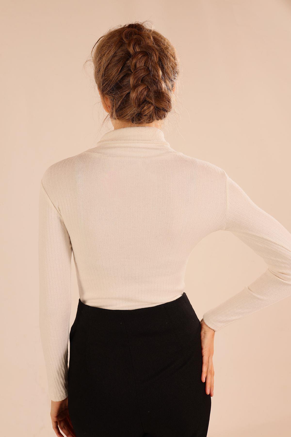 Ekru Balıkçı Yaka Bluz 9902