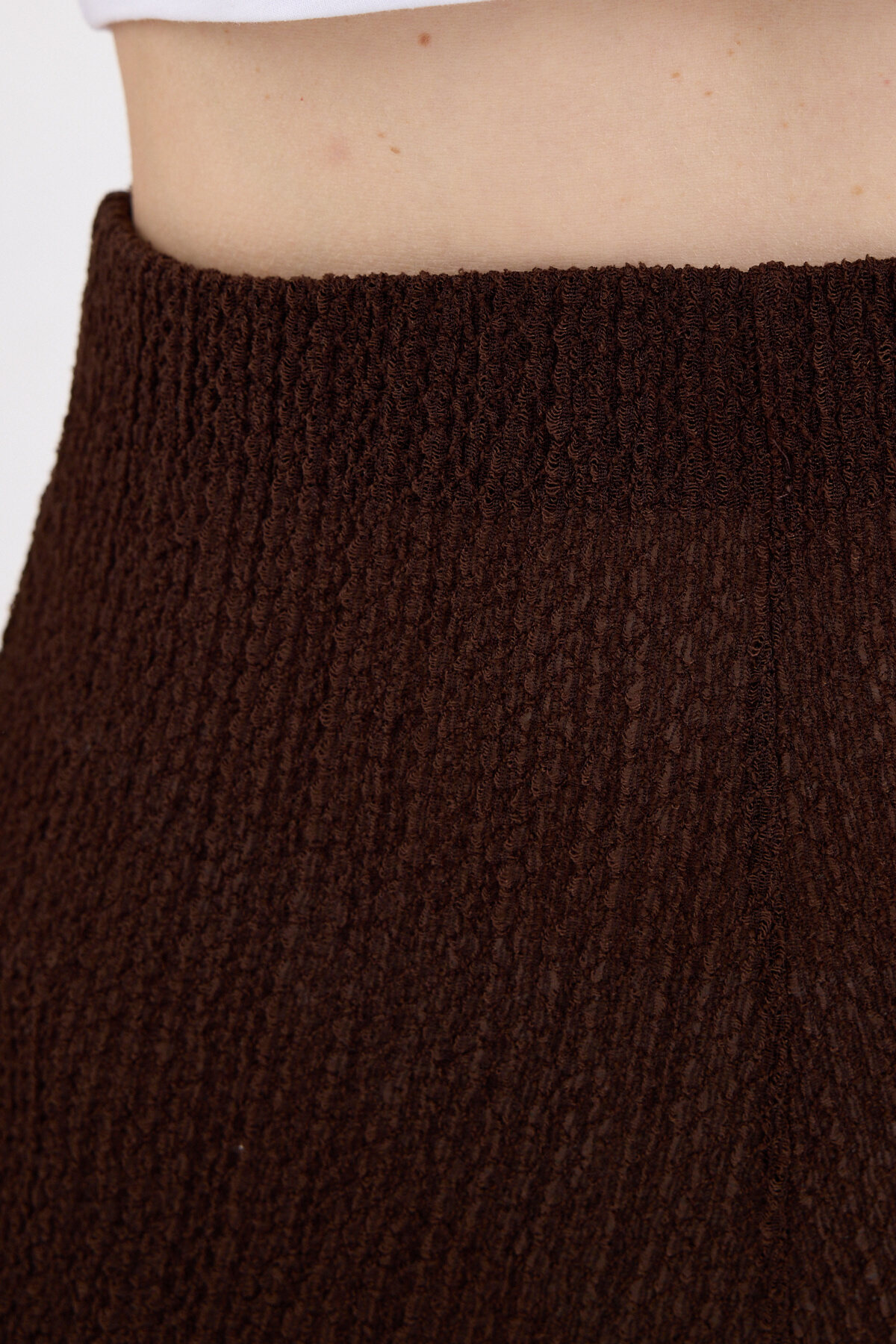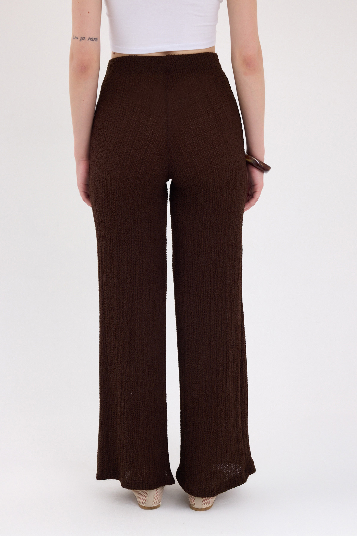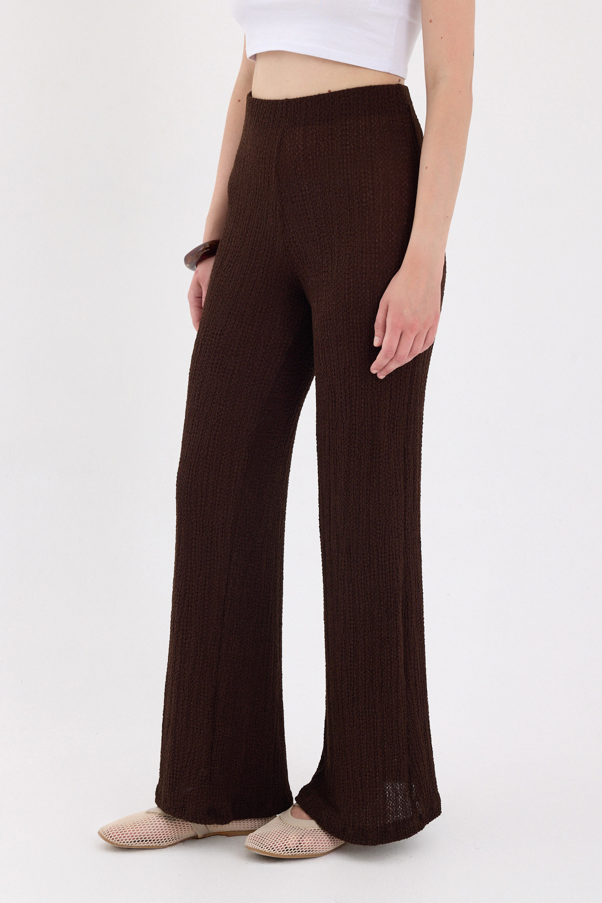 Acı Kahve Bol Paça Bel Lastikli Bürümcük Kumaş Pantolon 2466