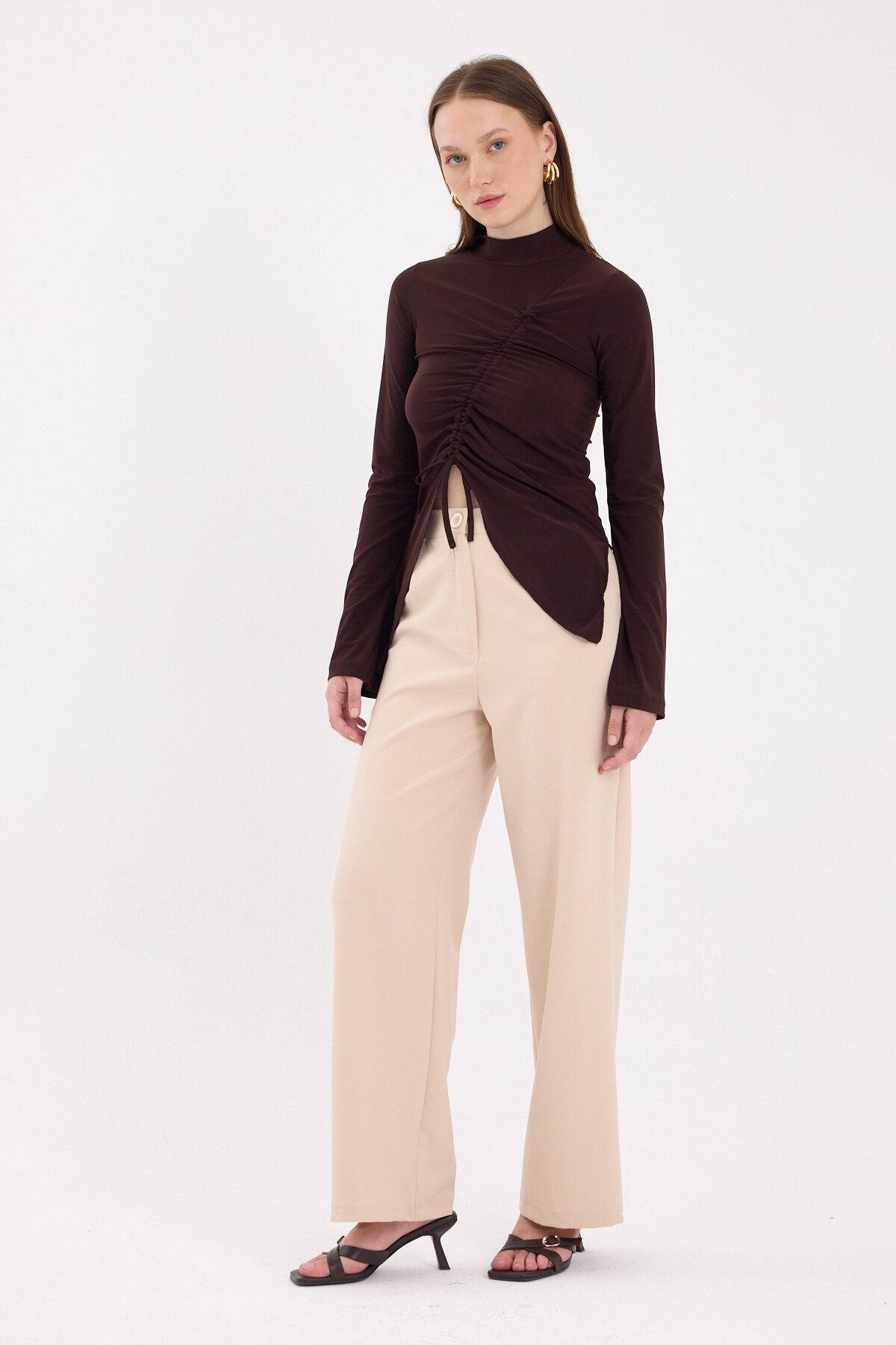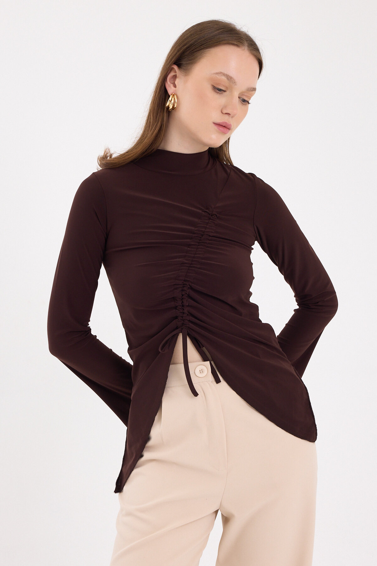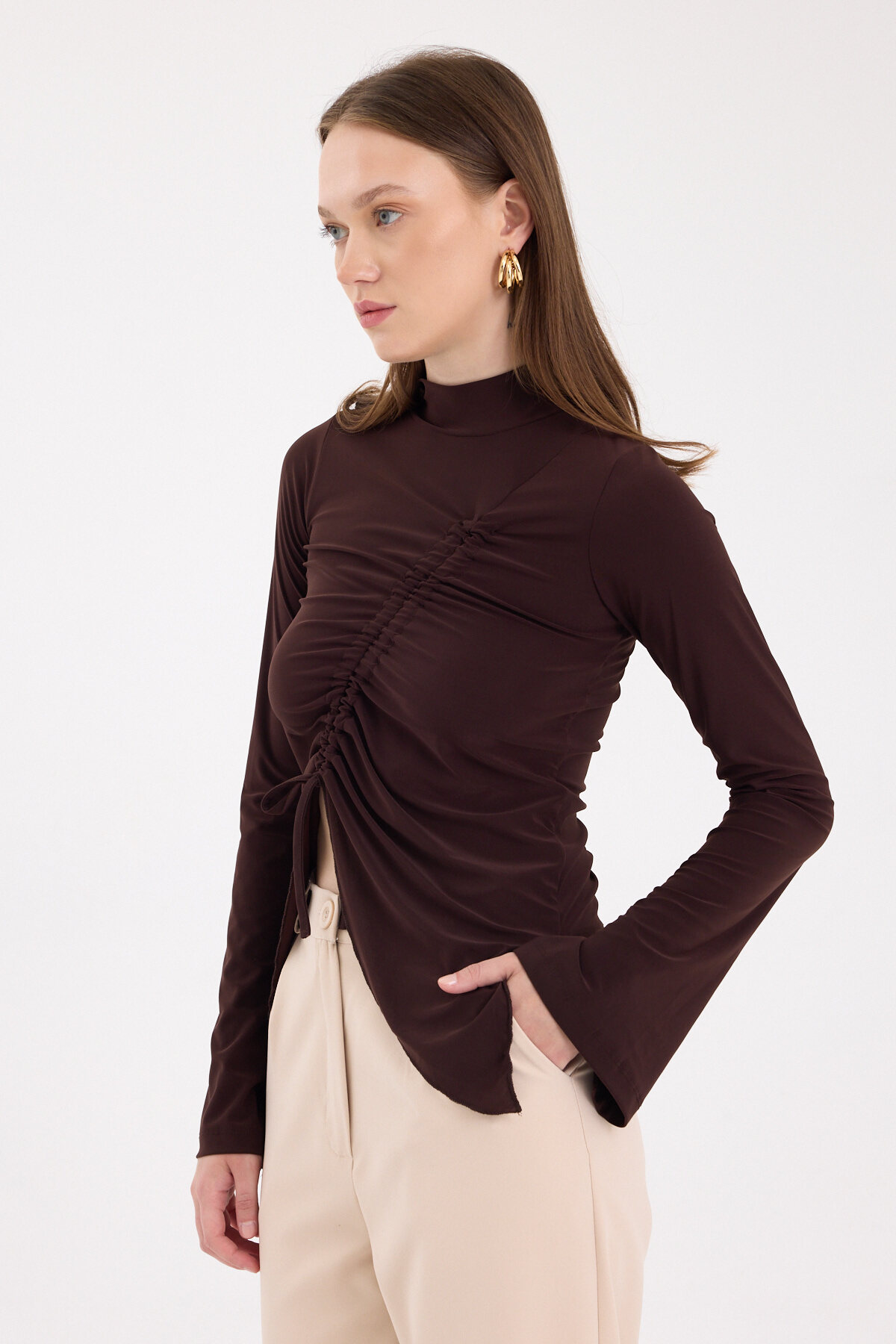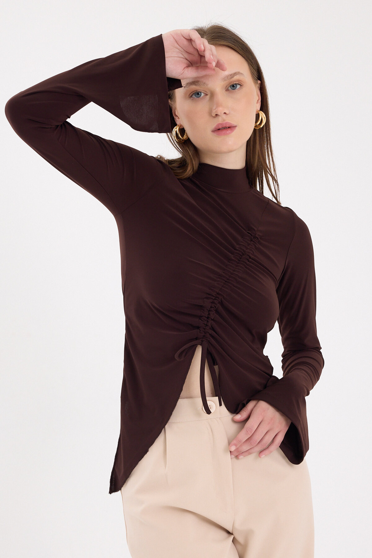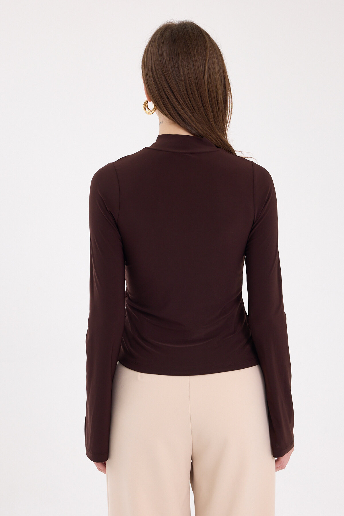 Acı Kahve Büzgü Detaylı Balıkçı Yaka Bluz 2458