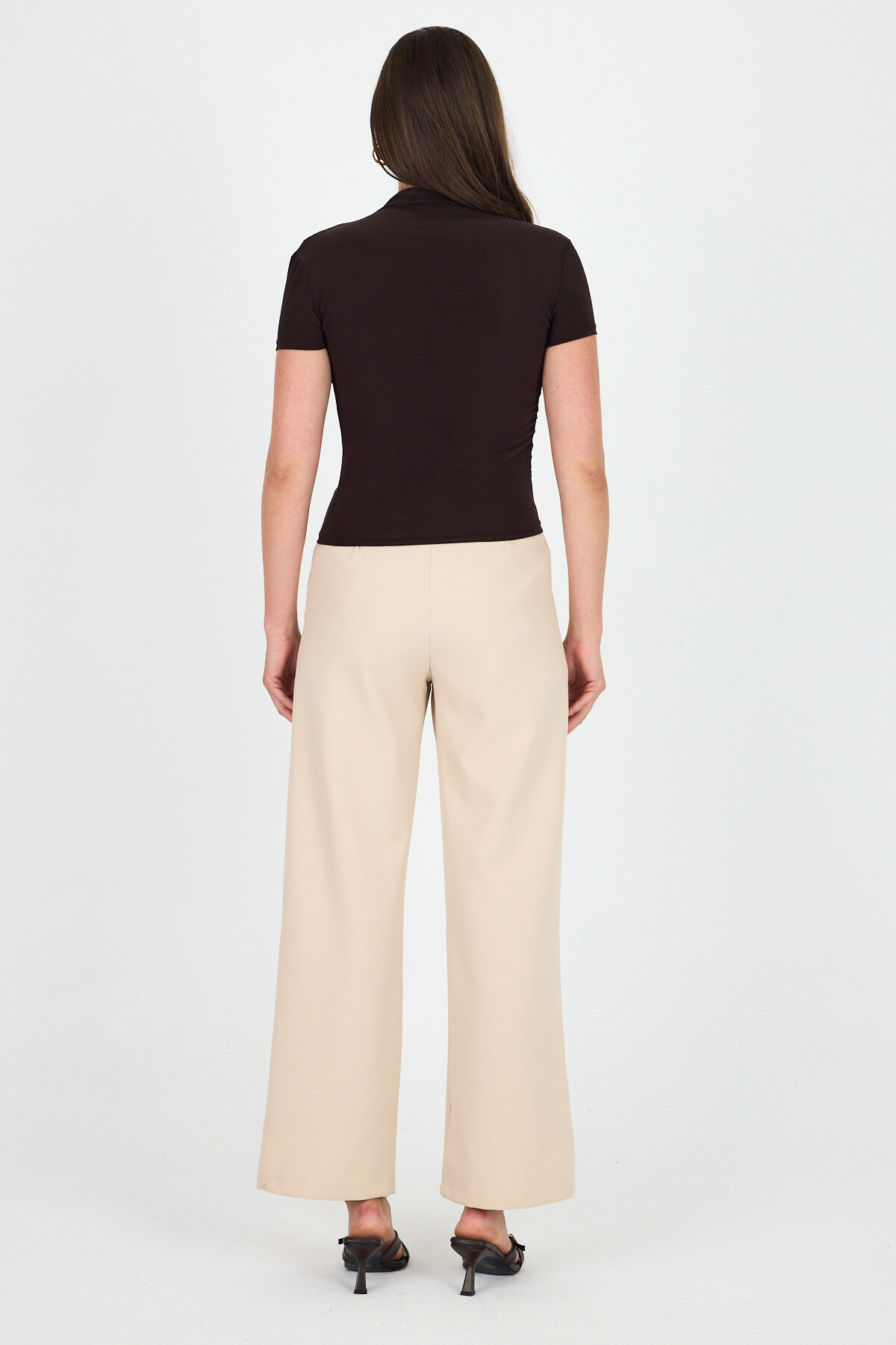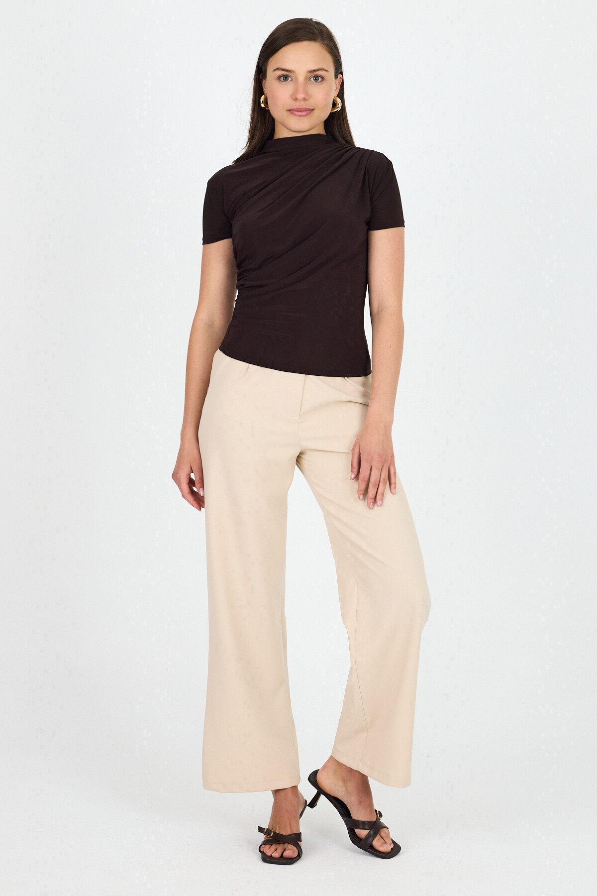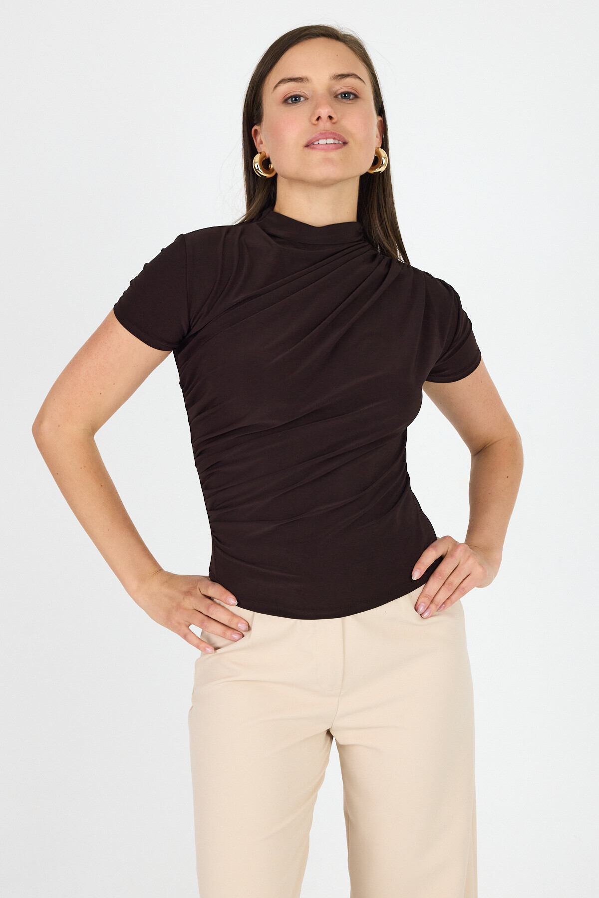 Acı Kahve Kısa Kol Büzgülü Sandy Bluz 2417