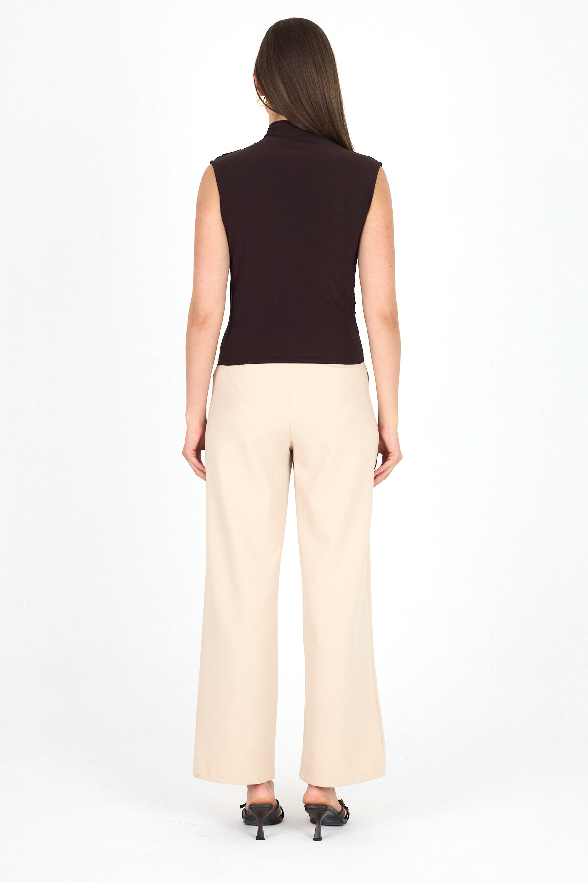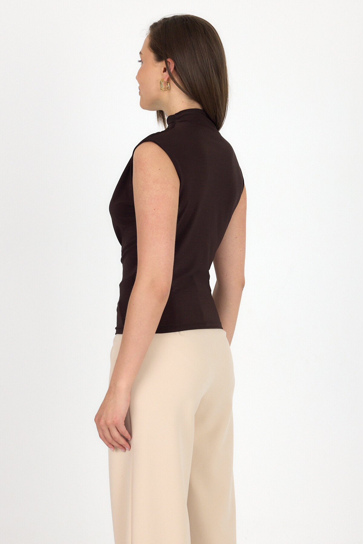 Acı Kahve Kolsuz Büzgülü Sandy Bluz 2430