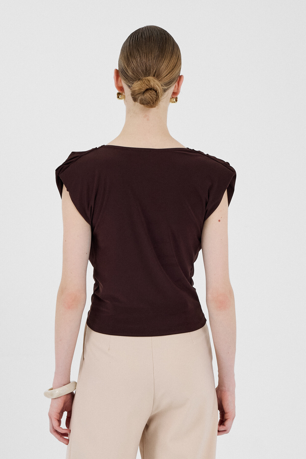 Acı Kahve Vatkalı Degaje Yaka Bluz 2509