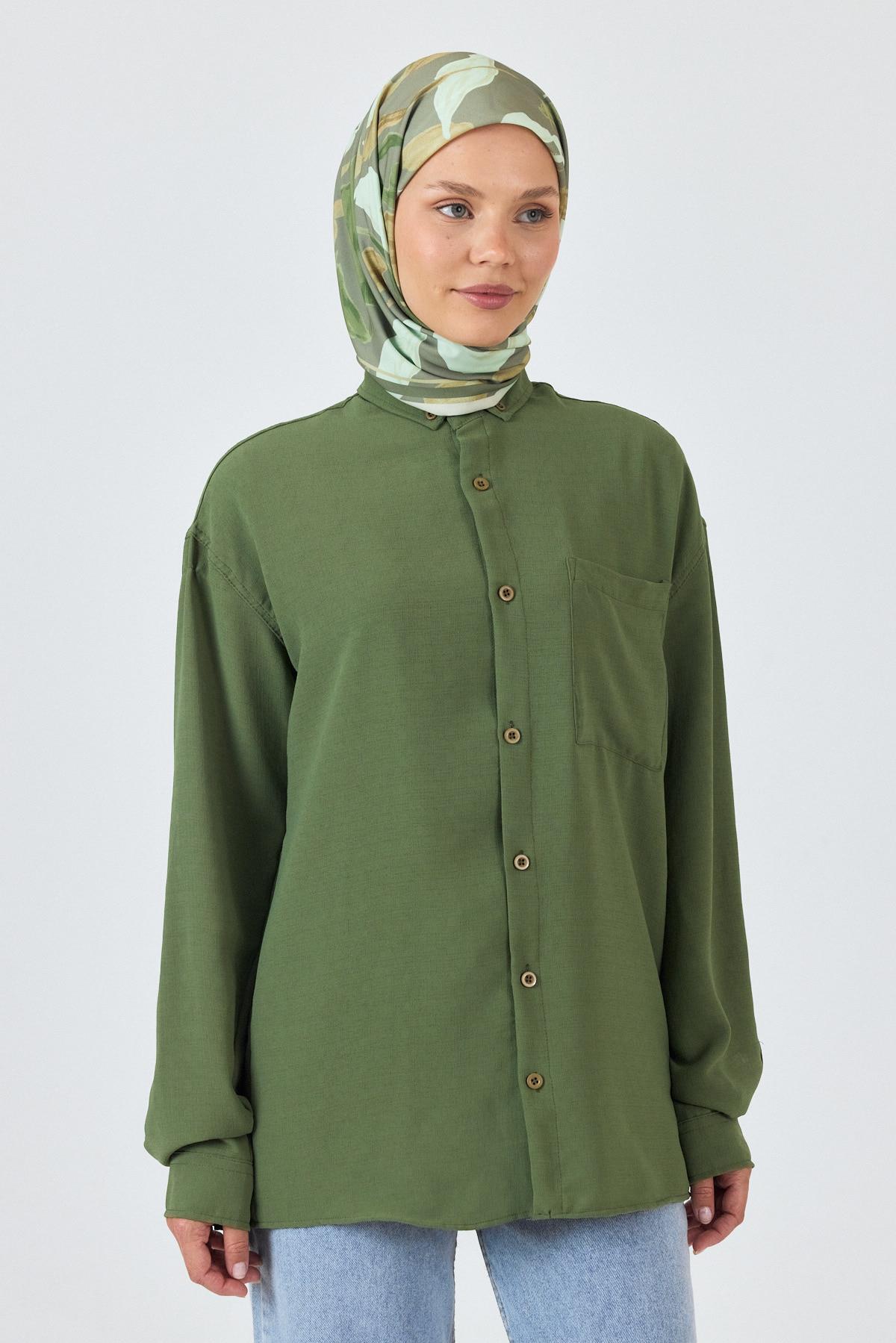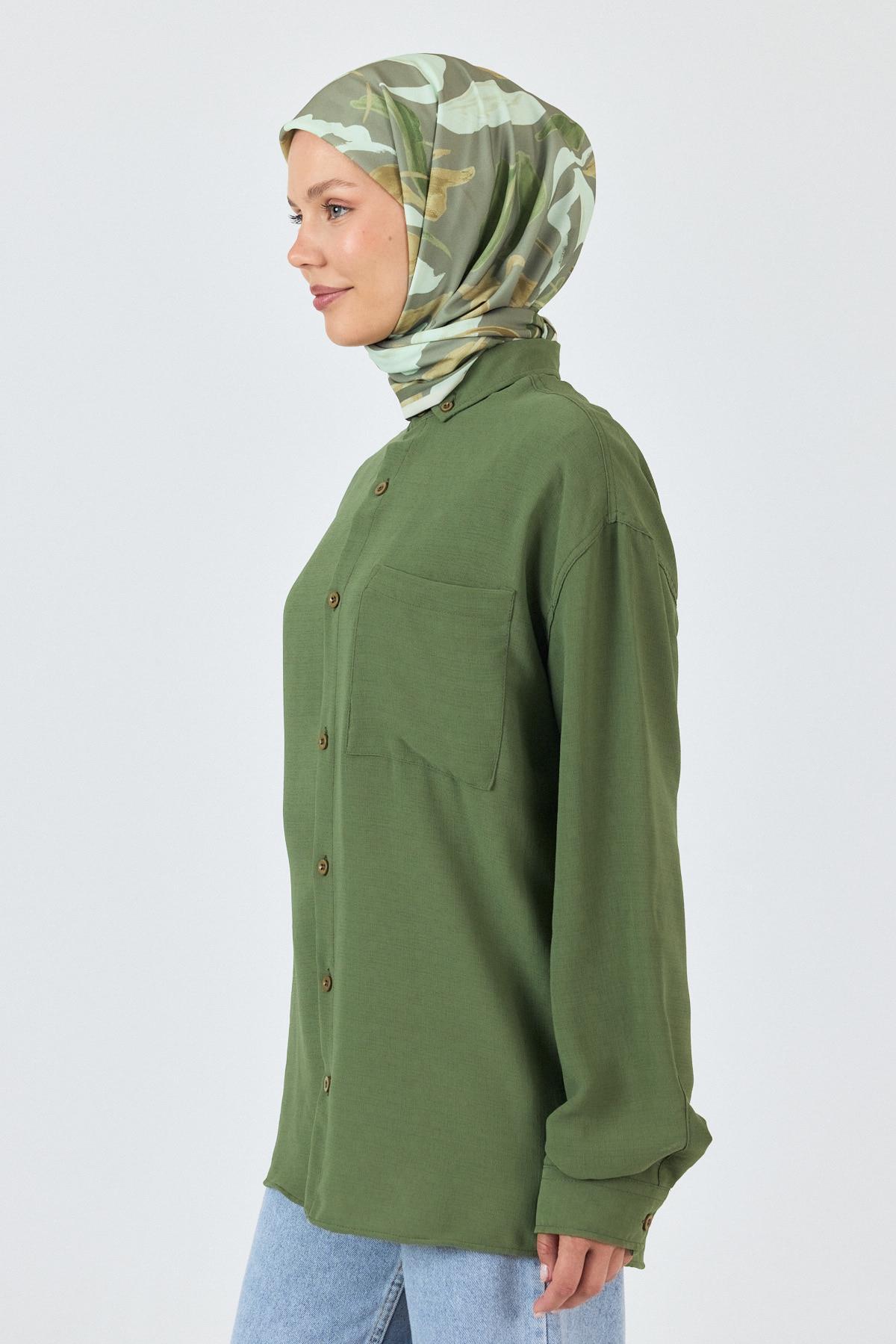 Açık Haki Yaprak Desenli Eşarp 3004