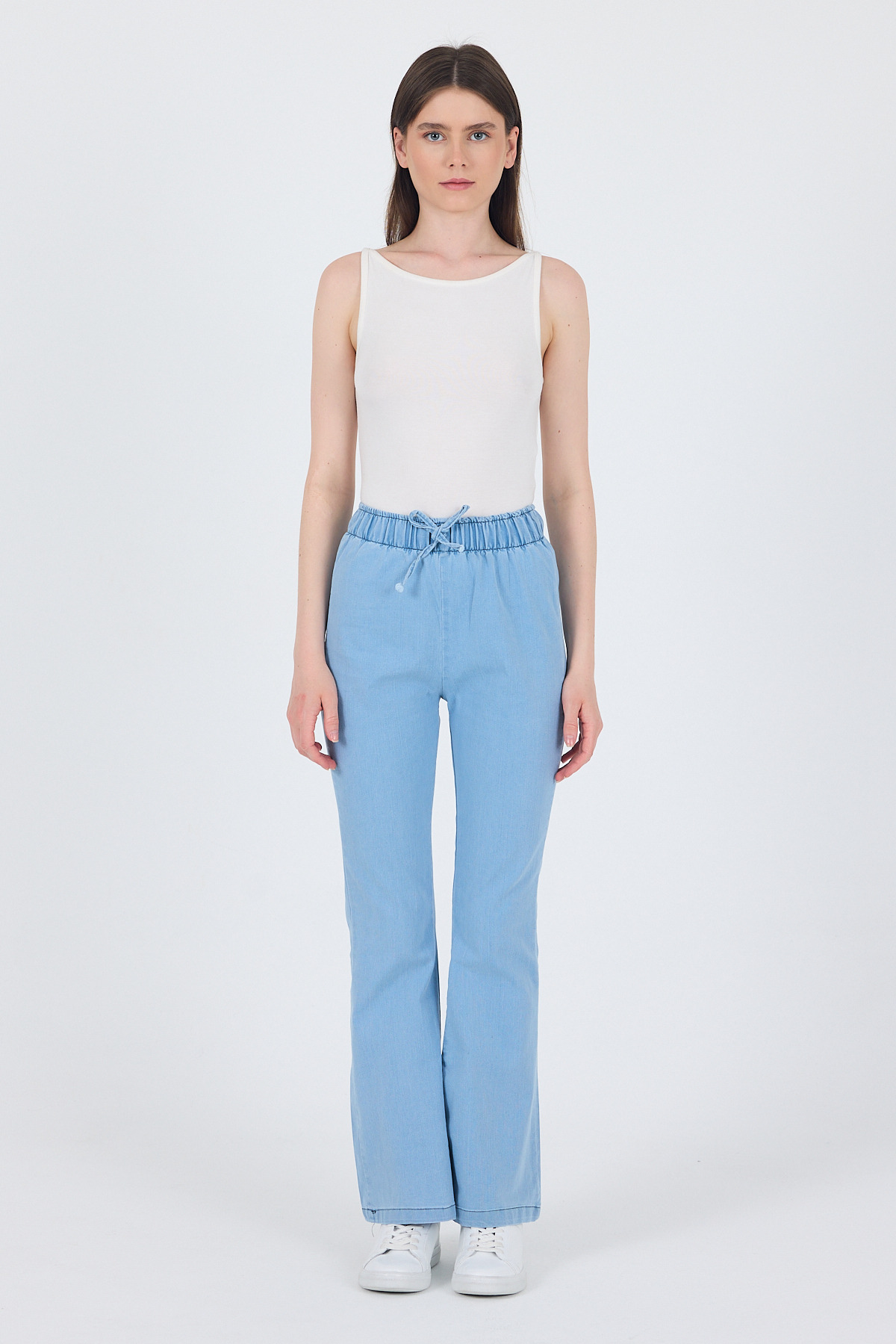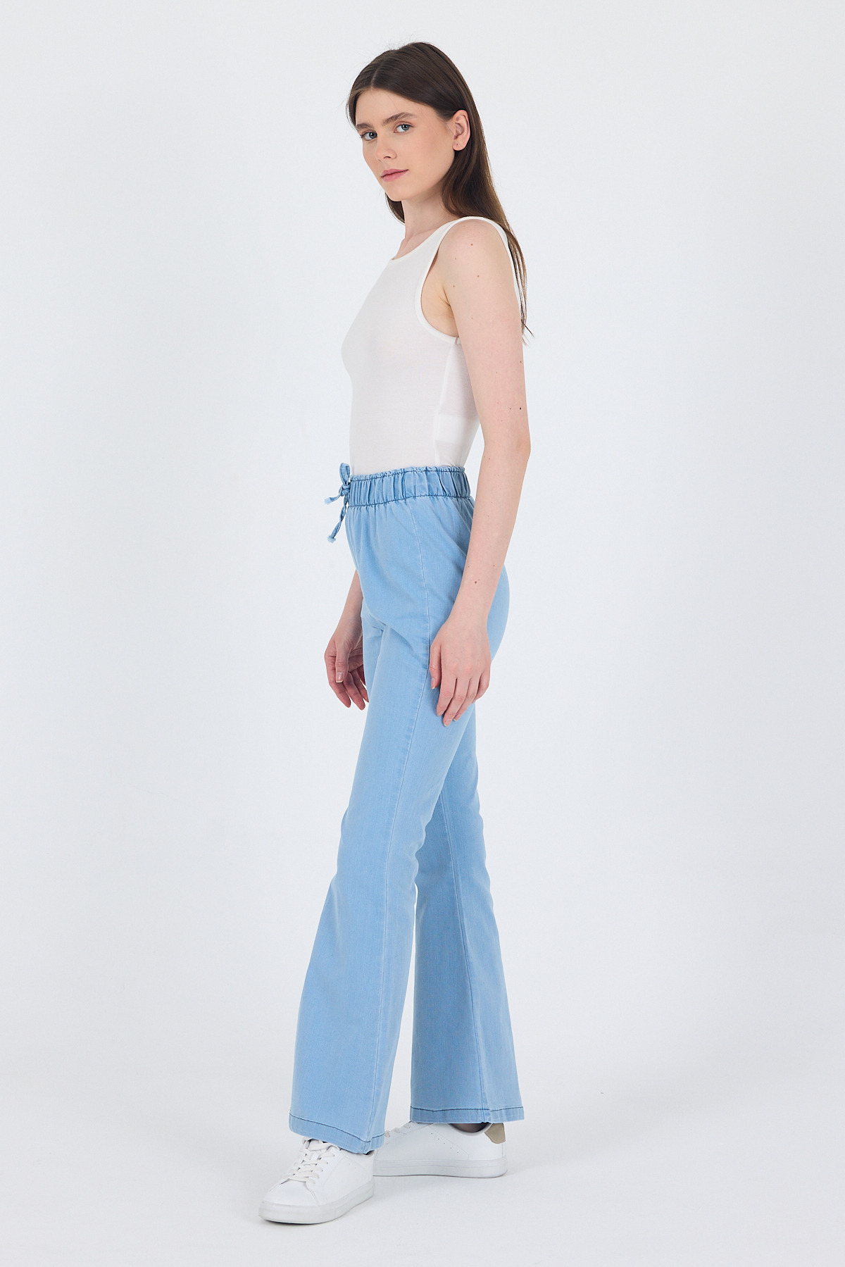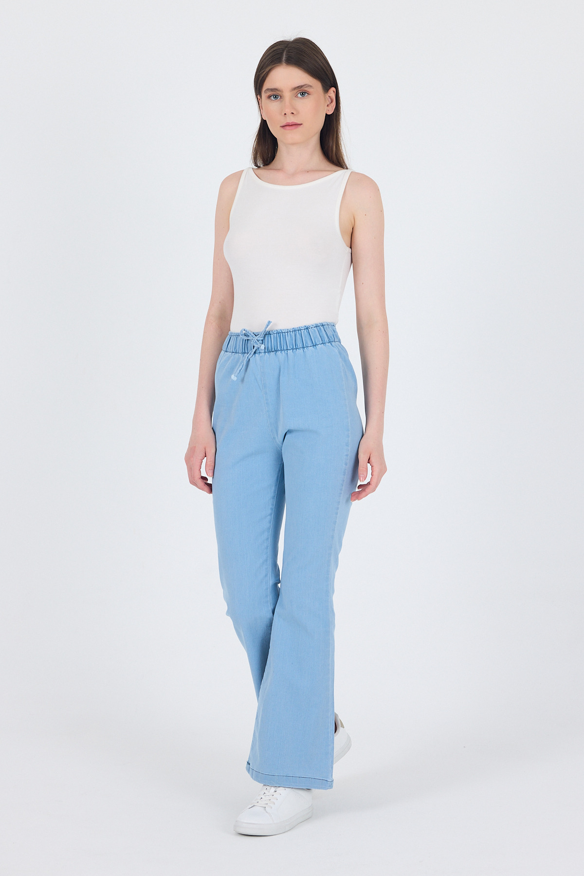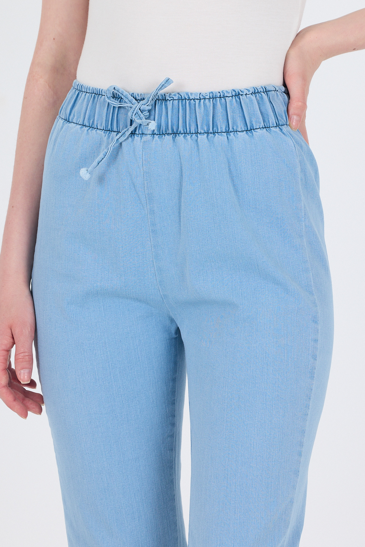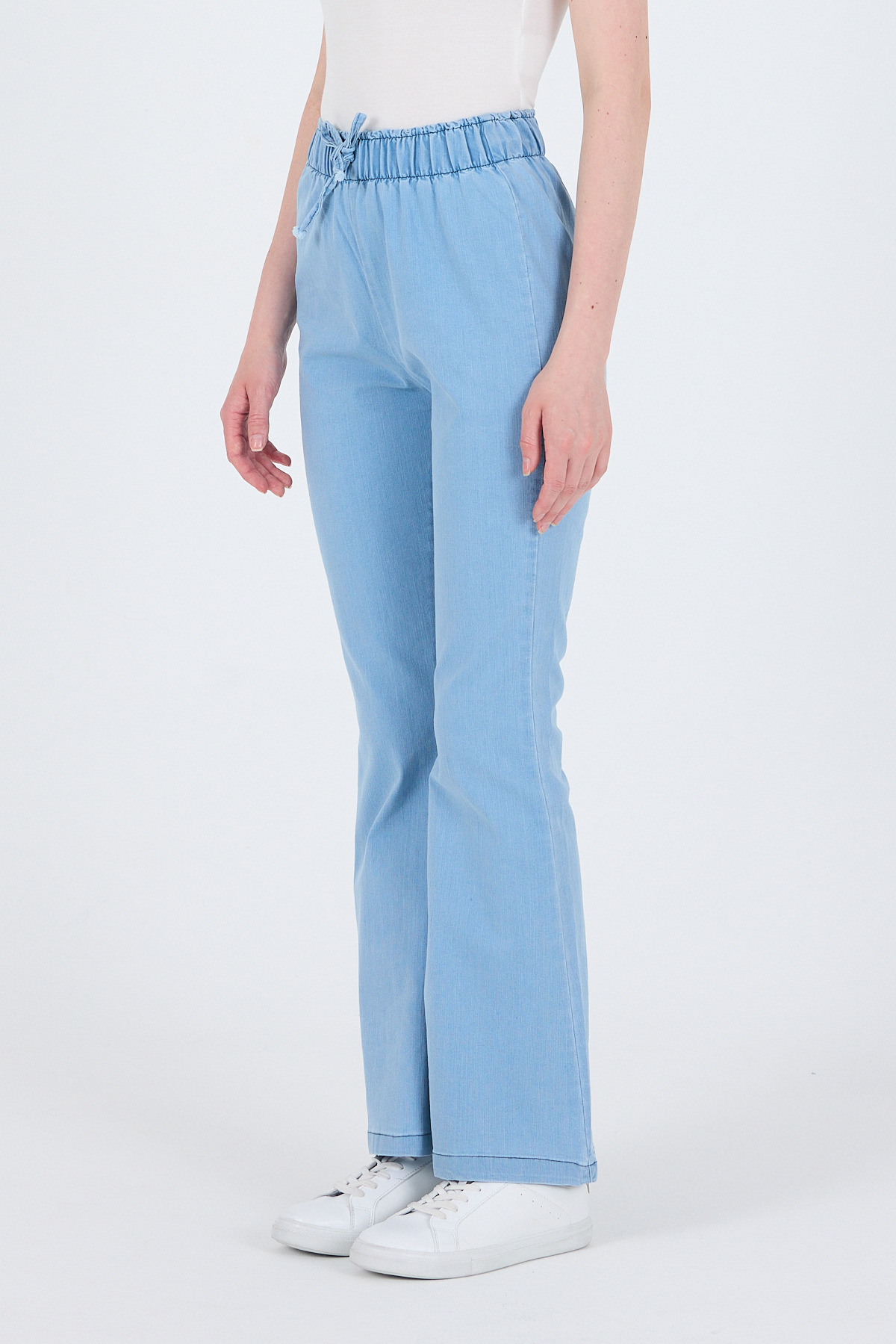 Açık Mavi Bel Lastikli İspanyol Paça Pantolon 3457