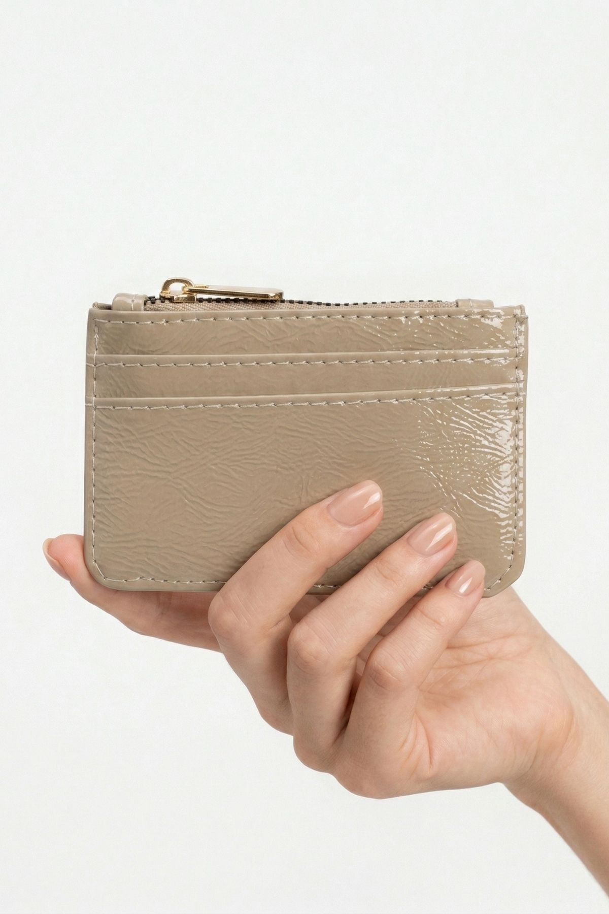 Açık Vizon Fermuar Detaylı Parlak Kartlık 231
