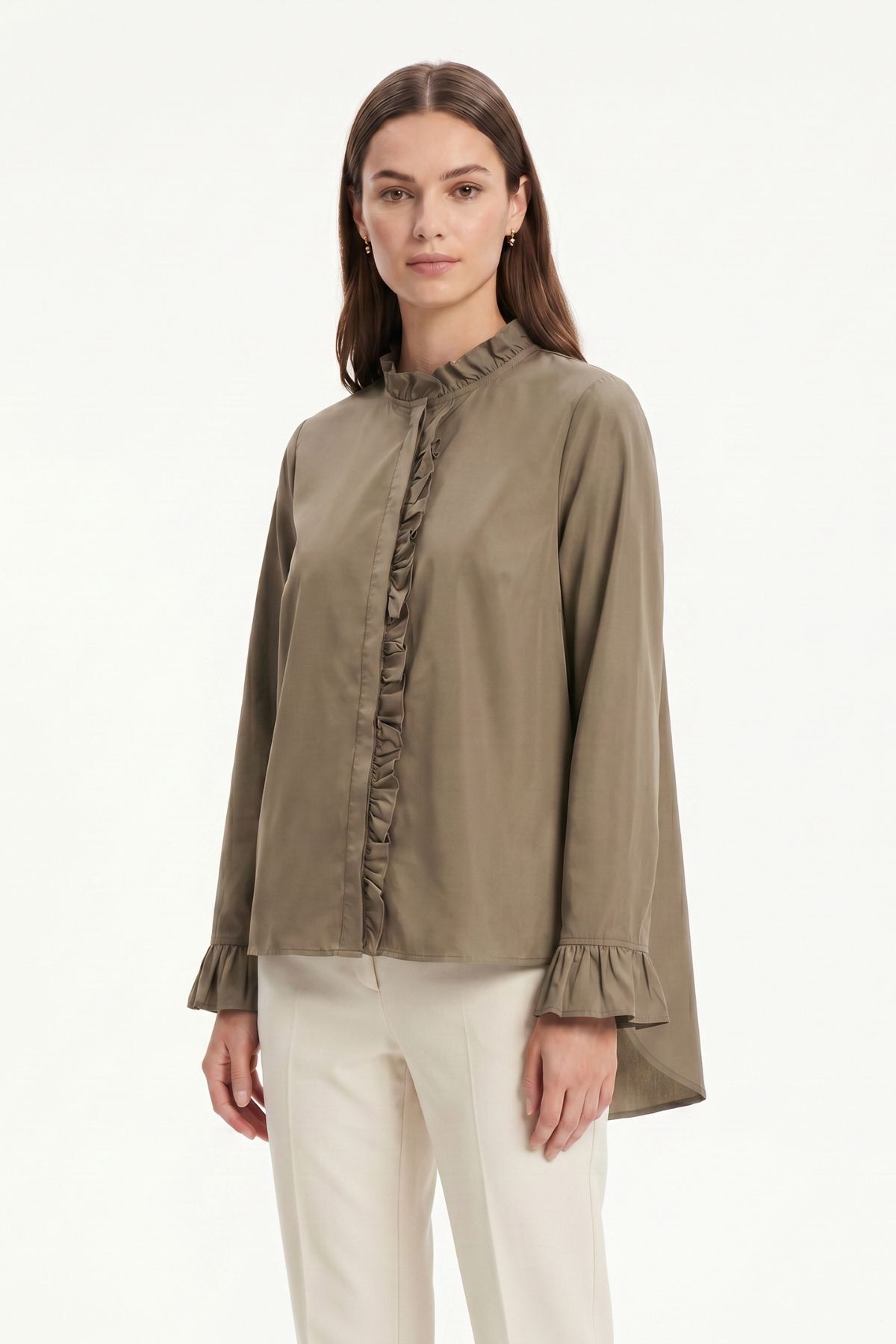 Ada Çayı İspanyol Kollu Pileli Gömlek 0057