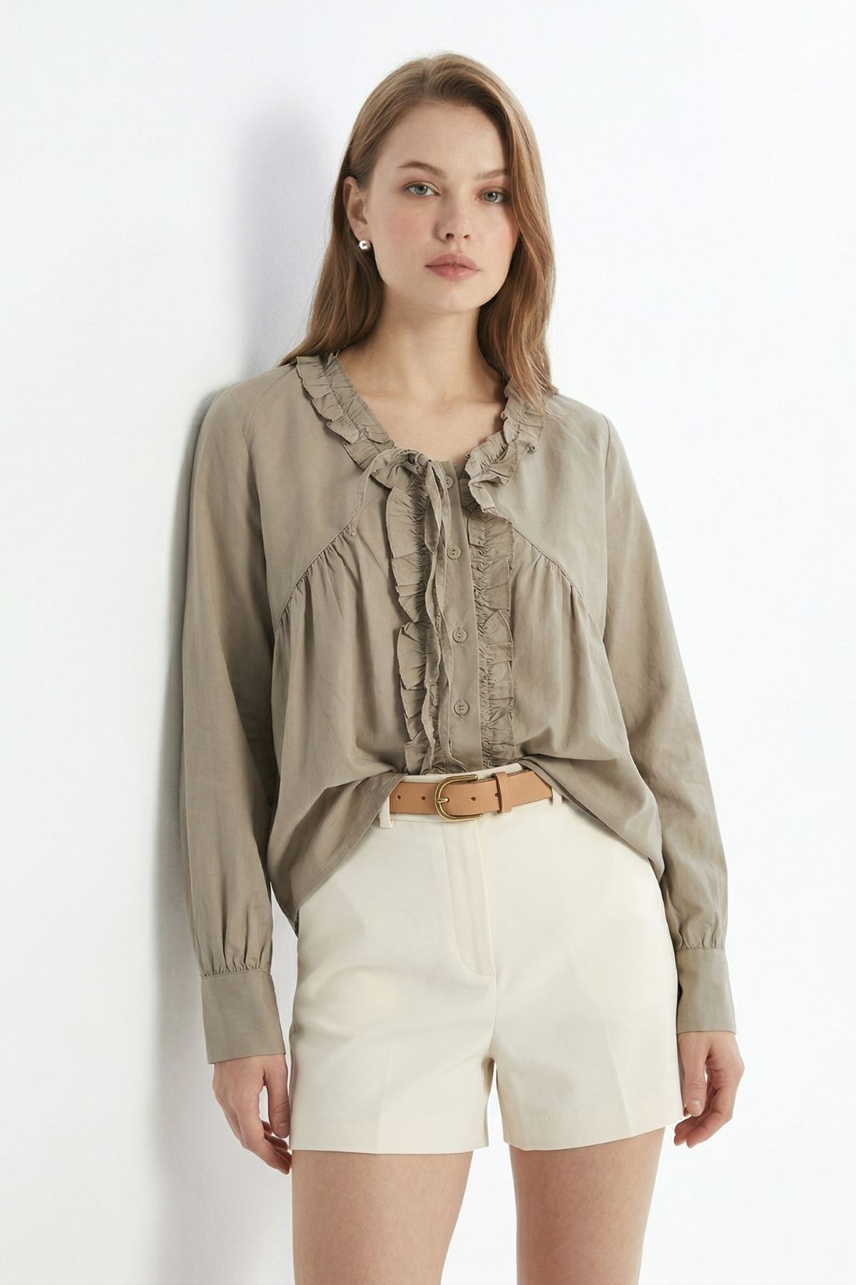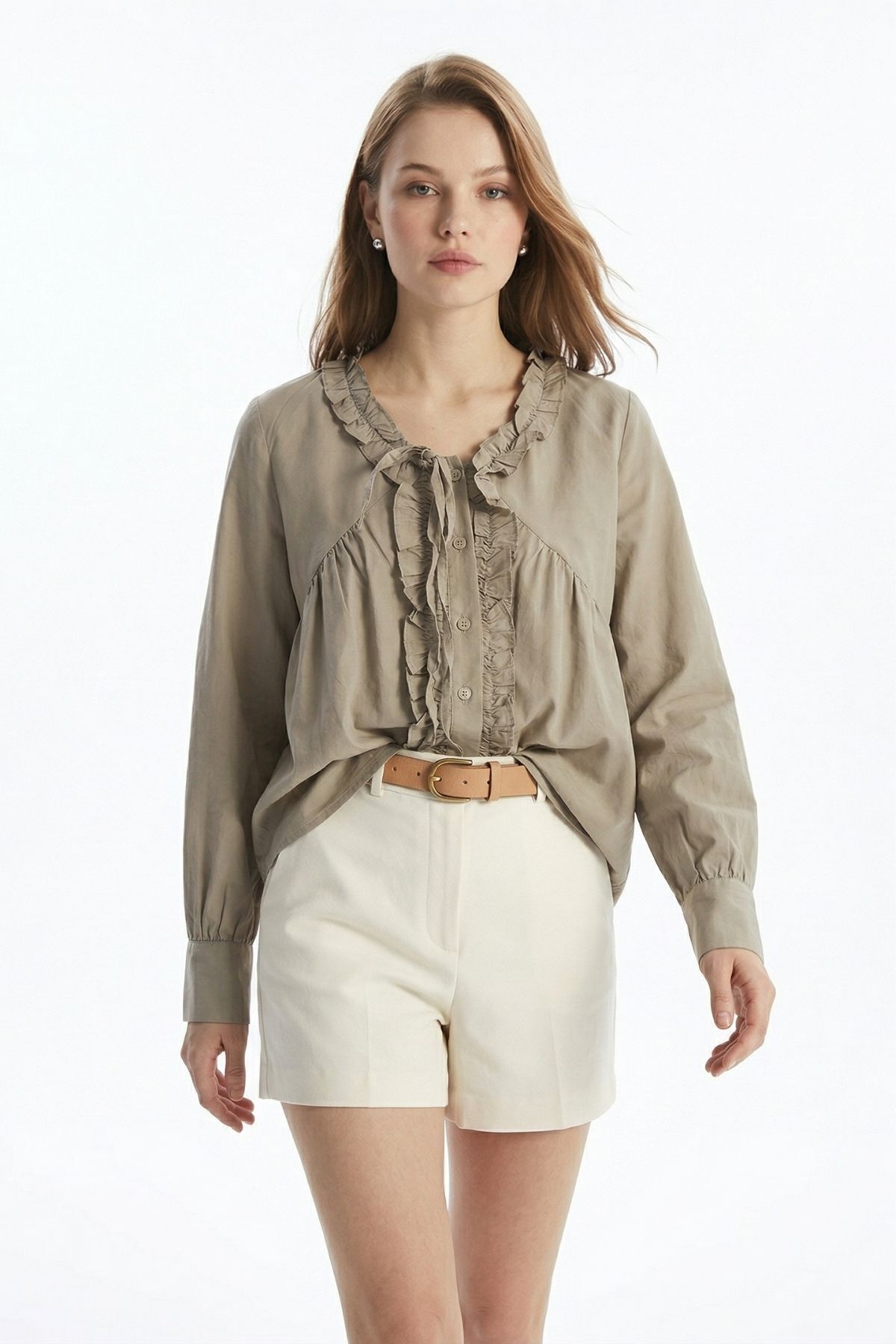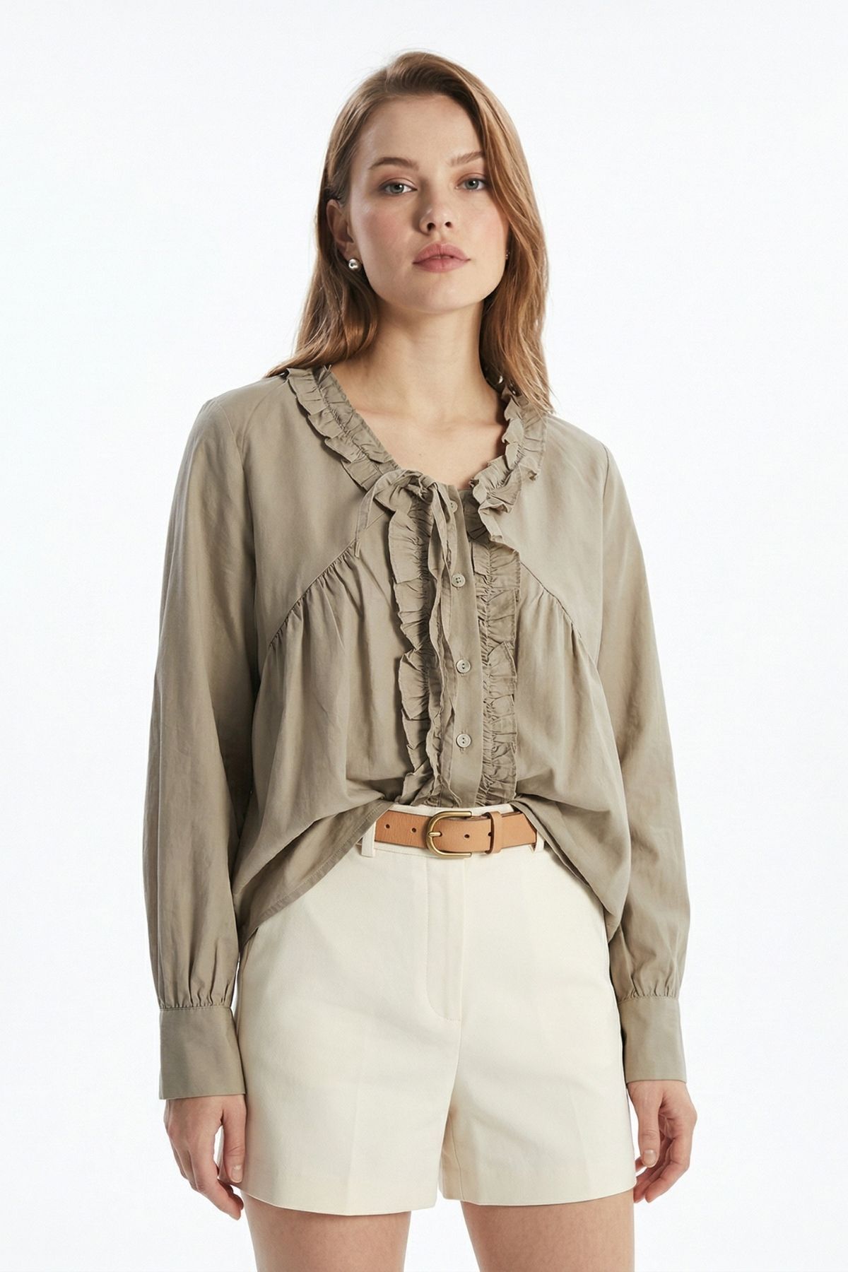 0108 V Yaka Fırfırlı Bağlama Detay Bluz