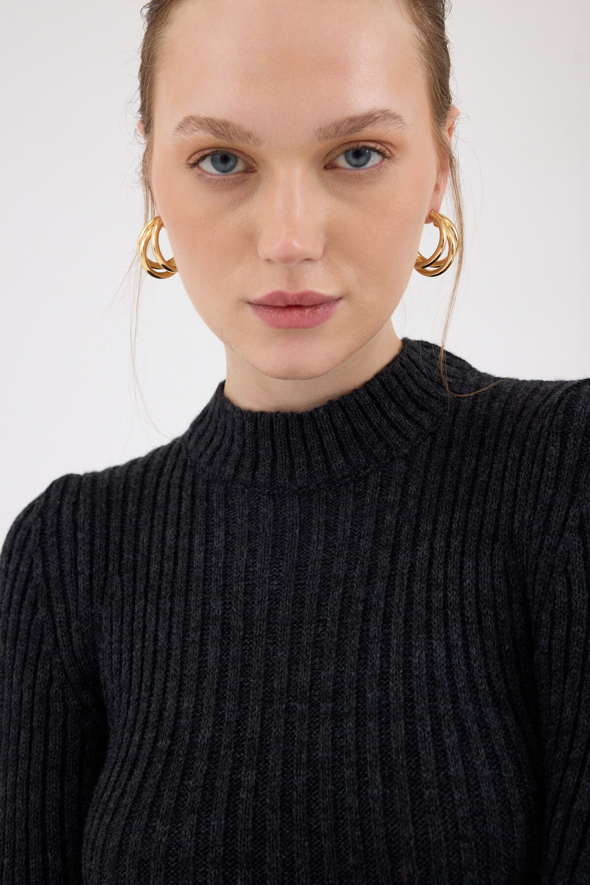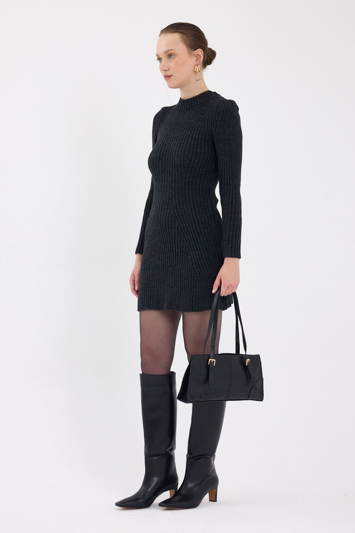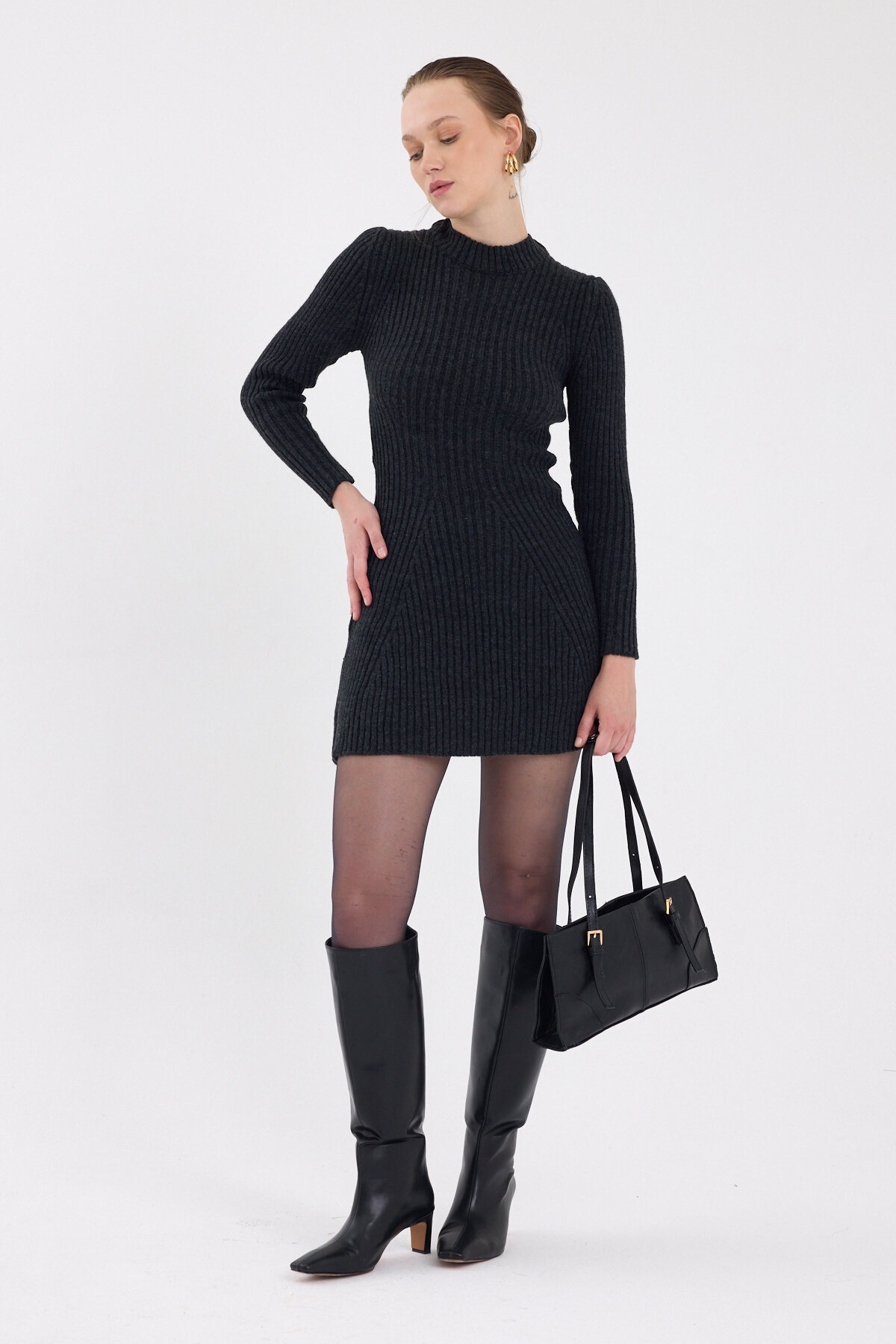 Antrasit Balıkçı Yaka Triko Mini Elbise 1907
