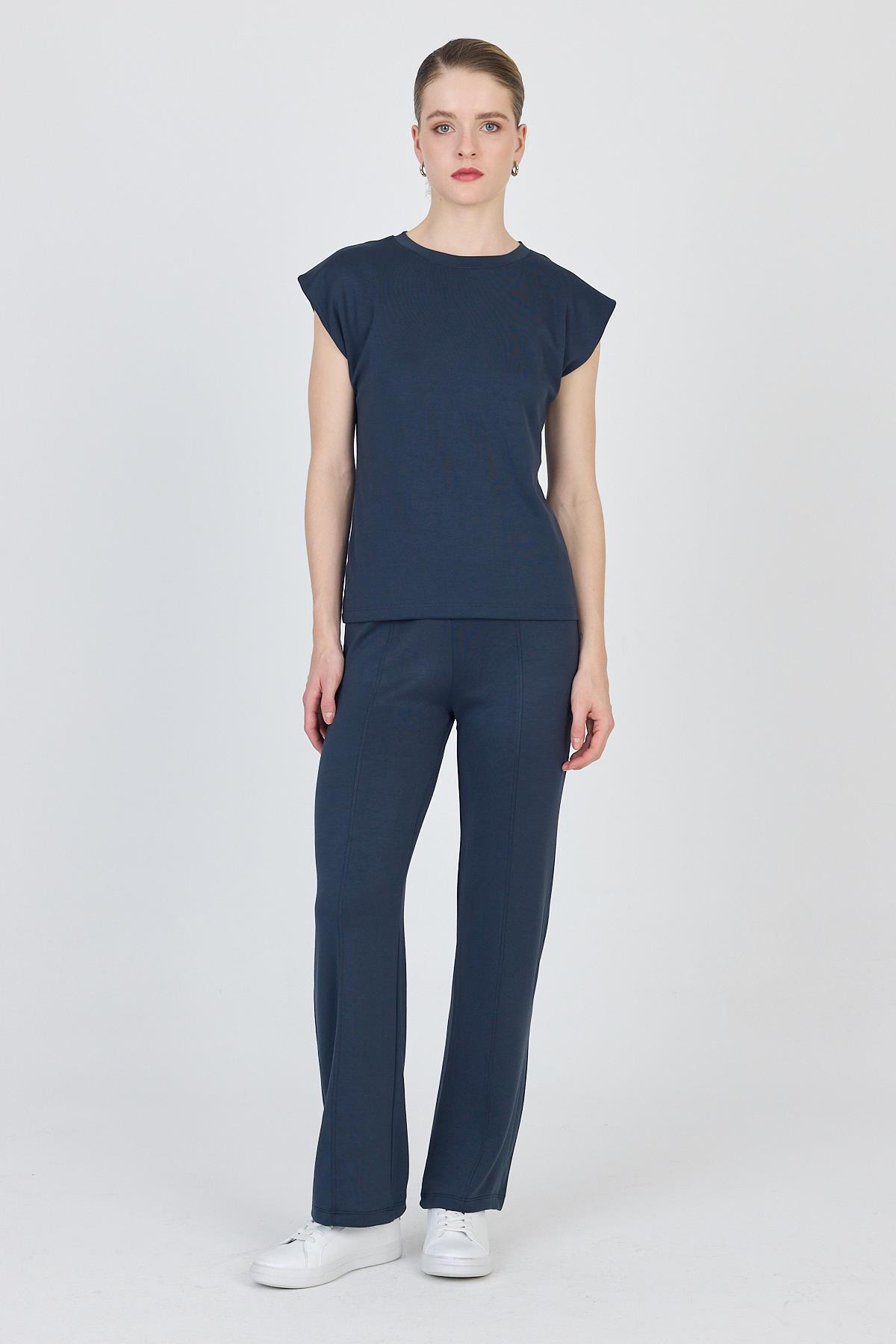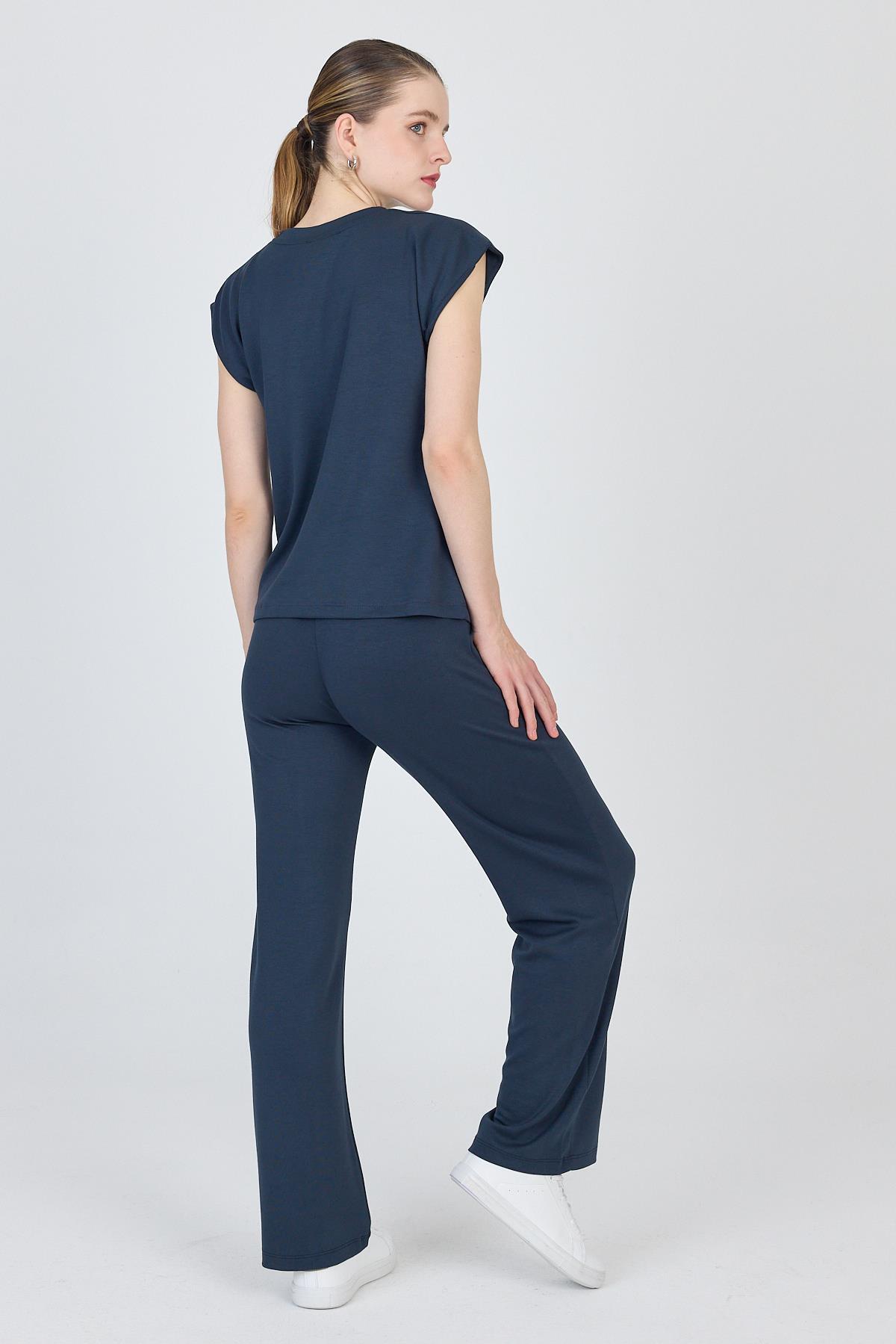 Antrasit Bisiklet Yaka İkili Tişört Pantolon Takım 1502